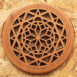 印象的なデザインが魅力のオシャレな木製サウンドホールカバー。自然な響きを残したまま、適確にフィードバックを抑制します。Made in U.S.A.