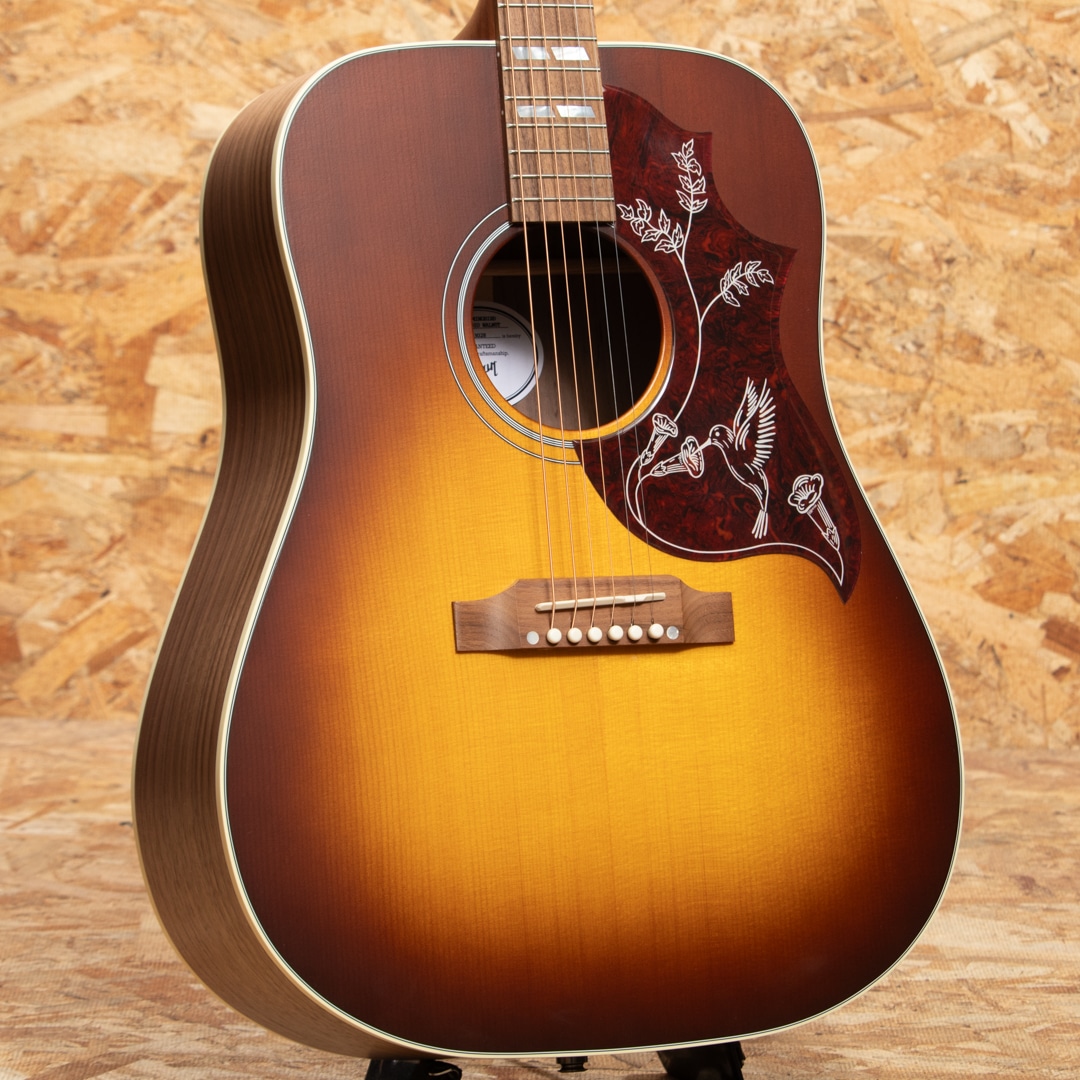 ハチドリでおなじみの人気モデル、ハミングバード。サイド&バックにRosewoodを使用したローズウッドバーストカラーモデル。