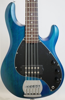 生産完了カラー!MUSICMAN直系、Sterling by Musicman SUB Series RAY5のTrans Blue Satinが入荷いたしました! うっすらと木目が見えるカラーです。