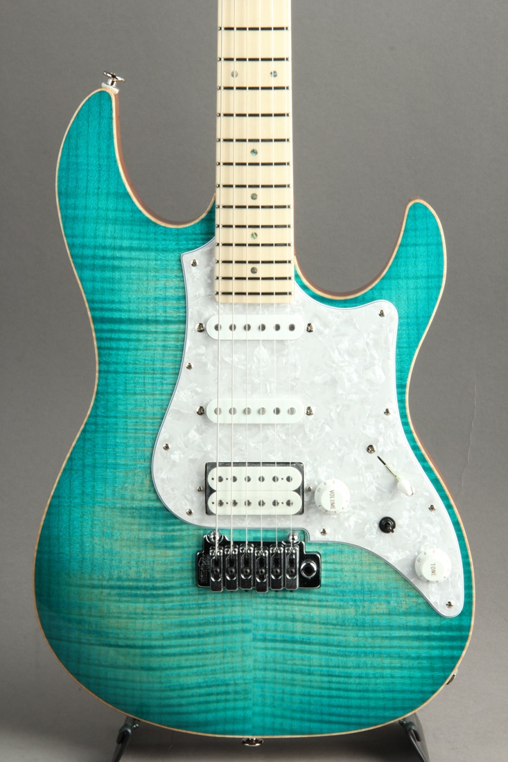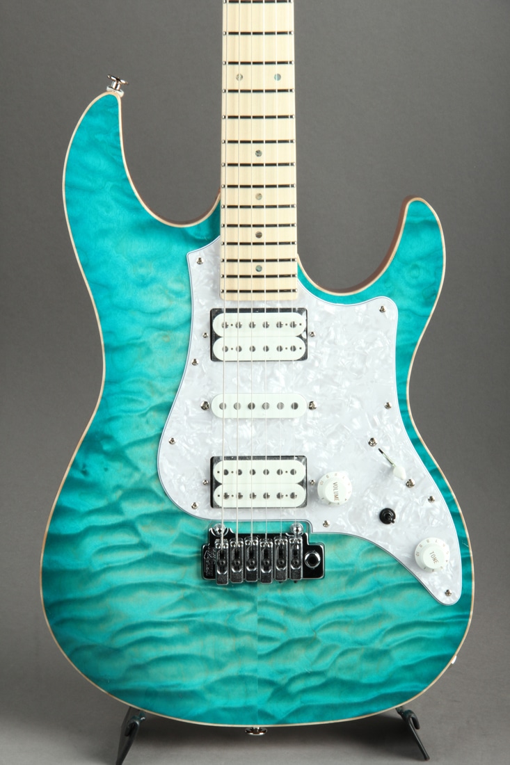自然に溶け込み輝く海の碧。極上のキルテッドメイプルと、職人さんが施す美しいバーストカラーのコンビネーションがとても美しく仕上がった弊店オーダーモデルです。