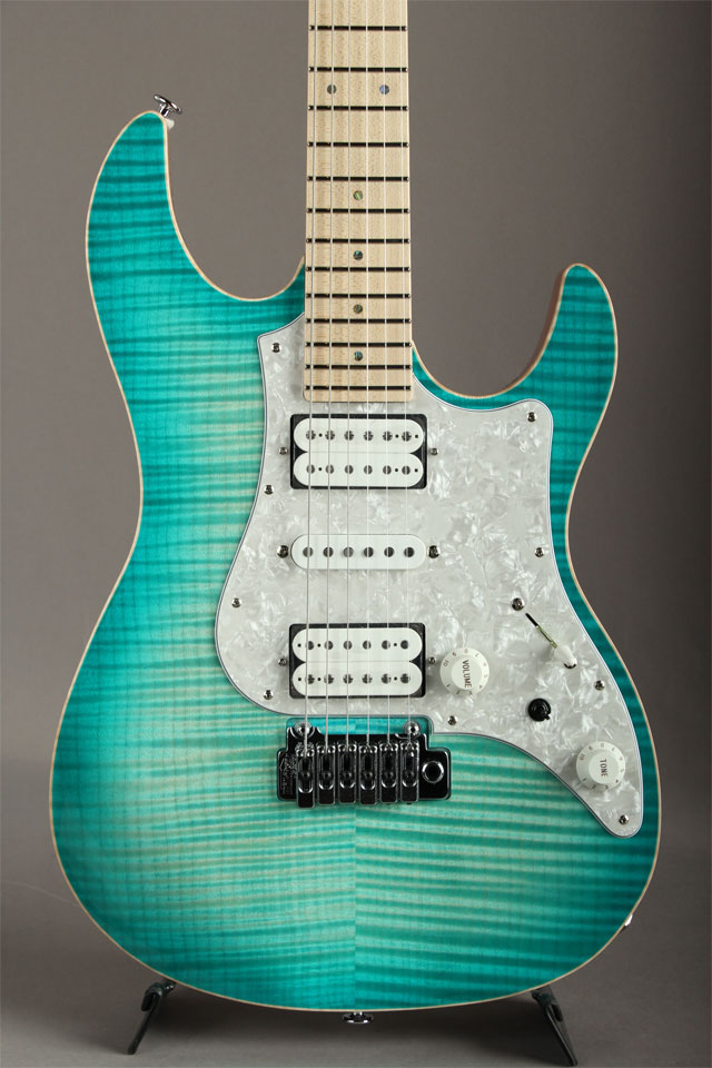 【実機写真!! / 重量4.13kg!!】フジゲンの人気カラーシースルーブルーバーストに身を包んだHSSピックアップレイアウトのモダンストラト!!