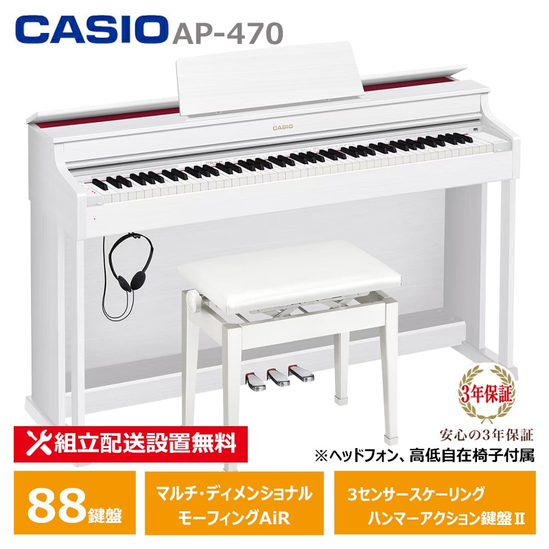CASIO AP-470WE カシオ 電子ピアノ ホワイトウッド調 (メーカー3年保証)【ヘッドフォン 高低椅子付属】【配送設置無料(沖縄・離島納品不可)】