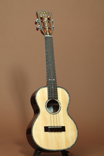 "増田明夫"が手掛ける"Water Road Guitars"。ベアクローシトカスプルーストップのテナーモデル。