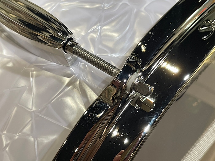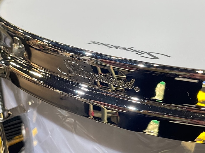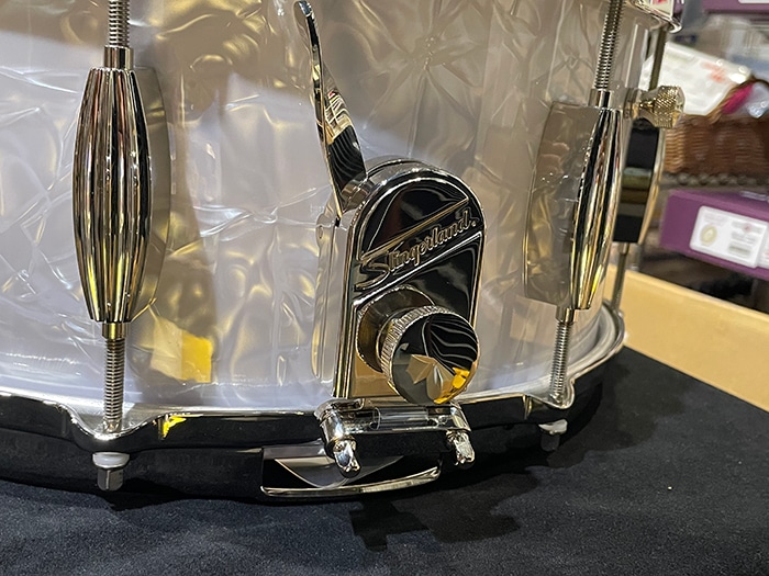 シェルはカリフォルニア州オックスナードで熟練の職人がひとつひとつを手作り。マホガニー / ポプラ / マホガニーの3ply シェルと、スチーム加工を施した単板メイプルのレインフォースメント・リングを、丸みを帯びた30度でカットし、ヘッドとの接点を大きくしています。なめらかな感触で温かみのある音色、パンチのあるアタック、豊かな響きが特徴です。ほぼ全てのハードウェア・パーツでニッケル・メッキを採用、Slingerland の初期を象徴する雲型バッジと相俟って、ヴィンテージの質感を醸し出しています。