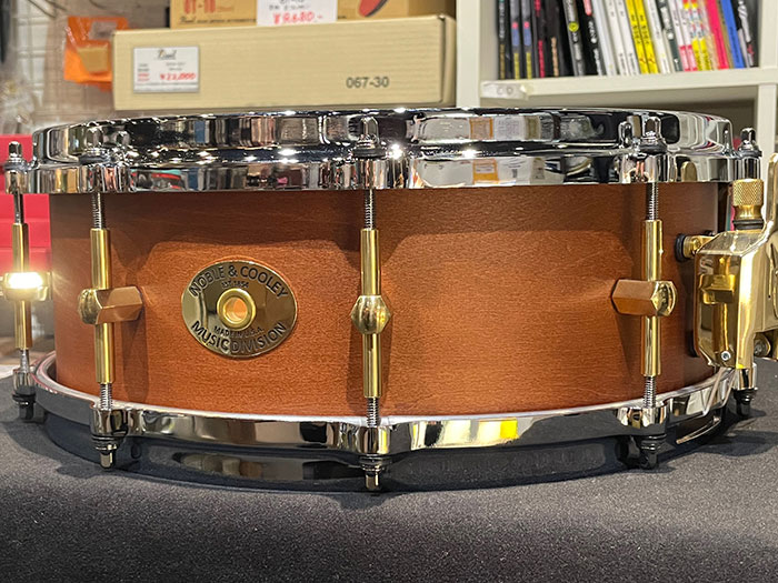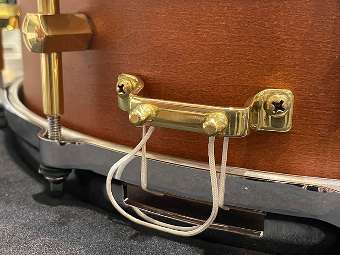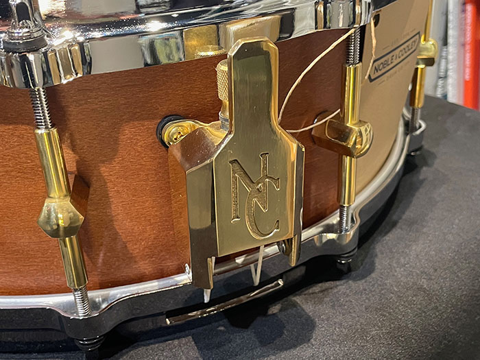 ノーブルスネアの良さを最大限に表現する為に”Nodal・Point”と呼ばれるシェル鳴りを一番損なわないポイントにブラス製のラグを取り付け、限界ギリギリまでシェルの共振を起こすシステムを搭載したハイエンドモデルです。音色の変化を大きく左右されるフープは亜鉛ダイキャストを採用しており単板の良さをさらに引き上げています。