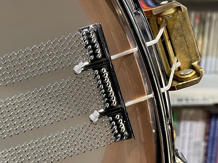 ワイヤーは6本-8本-6本と分かれており、通常取り付け面と逆に装着しています。ルーズ~タイトはどのレンジにも心地よく吸い付き、ストレイナーオン時のノイズレスさはクラシカルなユーザーにも好評となっています。