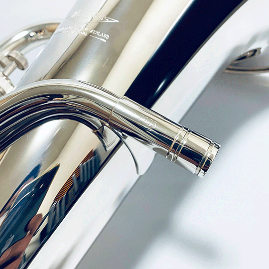 TA2900BSと楽器全体の形状もボアサイズも変わらないが、1番管のプロテクターを軽量化し、2番管のプロテクターを外しています。 U字管の接合部と、いくつかのパーツを軽量タイプに変更した以外は、基本的に従来のTA2900BSと全く同じパーツを使用しています。