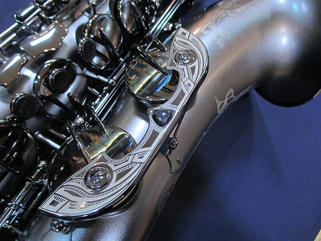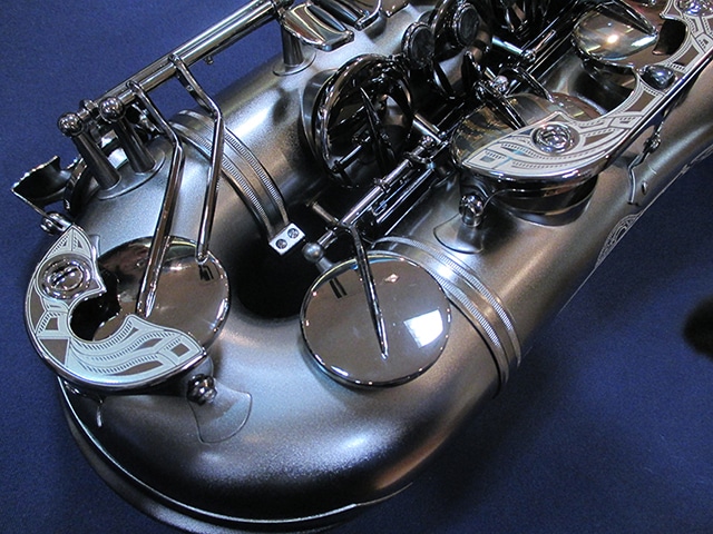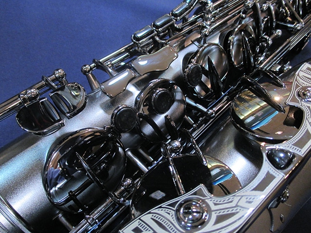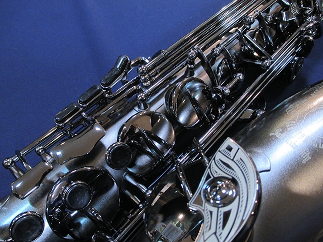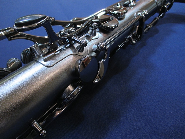 ただのブラックとは違いボディはマットなサテン仕上げ(キイ、ベル内部、キイガードは通常のブラック)のブラックニッケル仕上げのモデルとなっています。