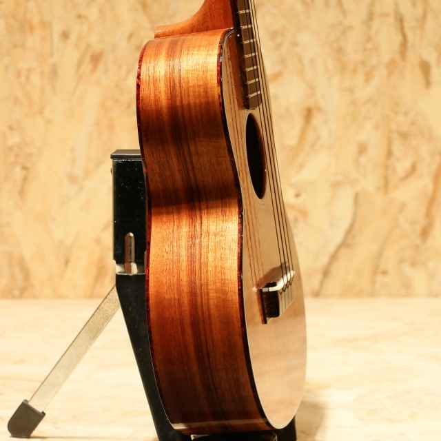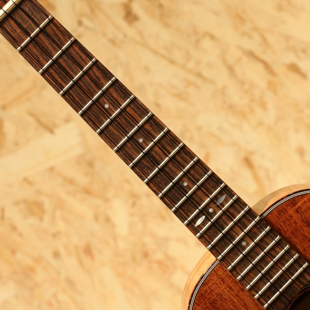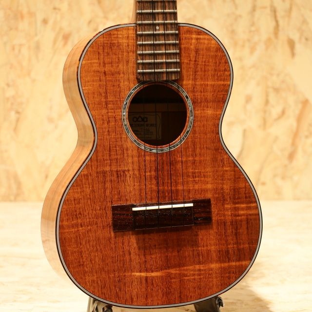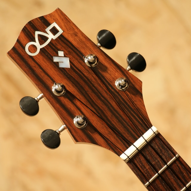 京都市の工房にて占部英明氏、息子の直宏氏によって製作されるハンドメイドウクレレ。本器は標準的なテナーモデルより僅かに大きく、スケールも長いサイズ”ビッグ・テナー”サイズの1本。ウクレレプレイヤー”名渡山遼”氏が愛用していることでも有名です。ハワイアンコアボディ、ホンジュラスマホガニーネック、ローズウッド指板&ブリッジ、アバロンロゼッタ、グローバー製ギヤペグ。やや薄めで握り易いネックシェイプ、0フレット仕様でローポジションの弾き易さはプレイヤーを魅了する占部ウクレレならではなポイント。14フレットジョイント仕様でハイポジションへの演奏性も抜群です。やや長めに設定されたスケールで大音量かつ安定性に優れ、ソロウクレレに最適な仕様の1本。ソロウクレレを始められる方、お持ちのウクレレのグレードアップをお考えの方はぜひお試しください。ギグケースが付属します。