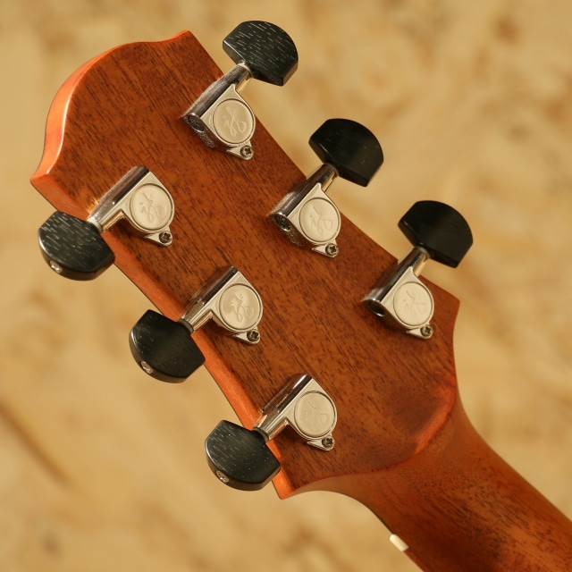 岸部眞明、押尾コータロー、チョン・スンハなどと共に、フィンガースタイル・ギター市場の発展に貢献し続けてきたプロのフィンガースタイル・プレイヤー”フアン・チア・ウェイ”。彼の理想とする『リーズナブルでプレイヤーがいつも最高のパフォーマンスを発揮できるクオリティと美しい音色を備えたギター』をつくるため、”品質と演奏性・音色の良し悪しを判断できるトップ・プレイヤー”、”高い品質のギターを製作する手工ブランドの製作家”、そして”彼らの高い要求を形にできる生産工場”と協力し、『Naga Guitars』を設立。現在Nagaの信念は高く評価され、今も多くのプレイヤーに支持されています。本器は日本が世界に誇るフィンガースタイル・プレイヤー”岸部眞明”氏と、世界有数のギター製作家”増田明夫”氏(Water Road Guitar)が監修するHANA SERIES。岸部氏の高い要求を増田氏が『Naga Guitars』の為に、一から設計・デザインし現地にて製品チェックから検品まで行った特別なシリーズです。オリジナルのスモールジャンボボディ、シトカスプルーストップ、マホガニーサイド&バック、マホガニーネック、エボニー指板&ブリッジ、スキャロップドナット、WaterRoadデザインドXXブレーシング、カッタウェイ仕様。岸部氏がメインで使用している"Water Road Guitar"。個人製作ブランド故の製作本数の少なさや価格の高さから、憧れながらも手に取ることが難しいブランドの一つです。その製作を行う増田氏の設計やデザインをメーカー製として落とし込み、比較的リーズナブルな価格で本シリーズは製作されています。シリーズ名にもなっている「花」は岸部氏を代表する曲名を基としています。オリジナルの指板インレイ、HANA Inlayは桜からインスピレーションを得た独創的なデザイン。高級感を感じられる華やかな印象のルックスです。サウンドホールロゼッタにはアバロンが使用されており高級感が際立ちます。ネック自体やや薄めに成形されており、細やかなフレーズでの演奏をサポート。ソロギターを演奏する際に滑らかな運指をすることが出来ます。ジャンボボディを若干小ぶりなサイズにし、バランスや立ち上がりを整えたスモールジャンボボディシェイプ。低音成分が出やすく音が広がりやすいのが特徴です。内部構造のXXブレーシングは増田氏監修の設計。トップ面の強度を上げ、音のバランスや音の立ち上がり速度を向上させるとともに繊細なトーンを作りだしています。その特性から深く響きながら前に出すぎない低音成分、華やかで繊細な高音成分、粒立ちの良い芯のある実音成分とが合わさって出てきます。倍音も多く含まれており、音に包まれながら心地よく演奏が出来ます。やはり拘りの詰まっているところからソロギターで活躍、演奏したい1本。岸部氏の曲を演奏したくなります。弾いた際の響き方も含め一級手工ギターの感覚やエッセンスを随所に感じさせてくれます。ソロギター界の重鎮とタッグを組むルシアーのこだわりを詰め込まれた1本。そのクオリティの高さを是非ご体感下さい。岸部氏のサインがプリントされたオリジナルのハードケースが付属します。