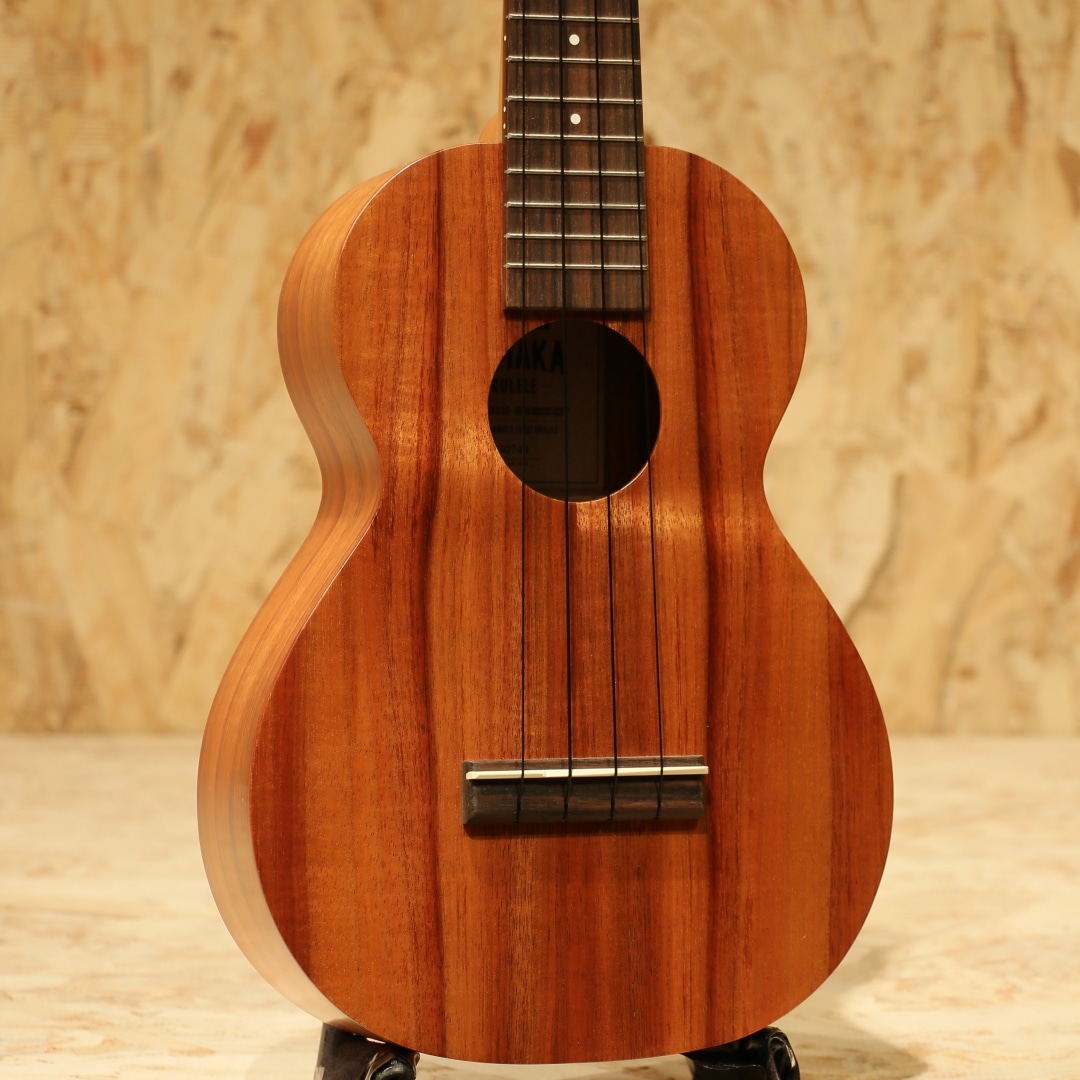 1916年にサミュエル・K・カマカが創業して以来、ハワイアンウクレレメーカーのトップブランドとして地位を君臨し続ける「カマカウクレレ」。「If you make instruments and use the family name, don't make junk.(もし楽器を作って、家系の名前を付けるなら、ジャンク品は作るな)」という創業者の言葉通り、ハワイの文化の中で培われた職人達の技術と精神、徹底した品質管理より変わらない音を作り続け、100年以上経った現在も失われることなく受け継がれ多くのプレイヤーに愛されています。本器はスタンダードコンサートモデル"HF-2"。ハワイアンコアボディー、マホガニーネック、ローズウッド指板&ブリッジ、ゴトー製プラネタリーペグ、セミグロス塗装仕上げ。2015年までのスタンダードモデルとは異なり、落ち着きのあるセミグロスフィニッシュで仕上げられた1本。ハワイアンと言えばの老舗ブランドカマカ。様々なアーティストに使用され、ウクレレの音と言えばこのサウンド、という方も多いのではないでしょうか。本器は定番のコンサートサイズモデル。中間的なサイズ感、ソプラノの取り回しの良い部分とフルサイズの良さを掛け合わせた万能なタイプ。艶消しの塗装は風合いも良く、サラっとした心地よい手触り。サウンドにも影響し、ややドライでカラッとした響きが特徴です。カマカ独特の太く甘いサウンドも健在で、柔らかく響く音色に心癒されます。ふくよかに、軽やかに、耳に優しいサウンドを奏でることが出来ます。このトーンは他のブランドでは体感できない格別の音色です。甘く優しく、南国のゆったりとした時間を感じられるサウンド。プライベートな時間を彩る1本として、また本格的な1本を持つに至っても文句のつけようもない老舗ブランドのコンサートウクレレ。世界が認める貫禄のサウンド、是非お手元でご堪能下さいませ。