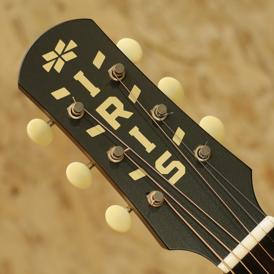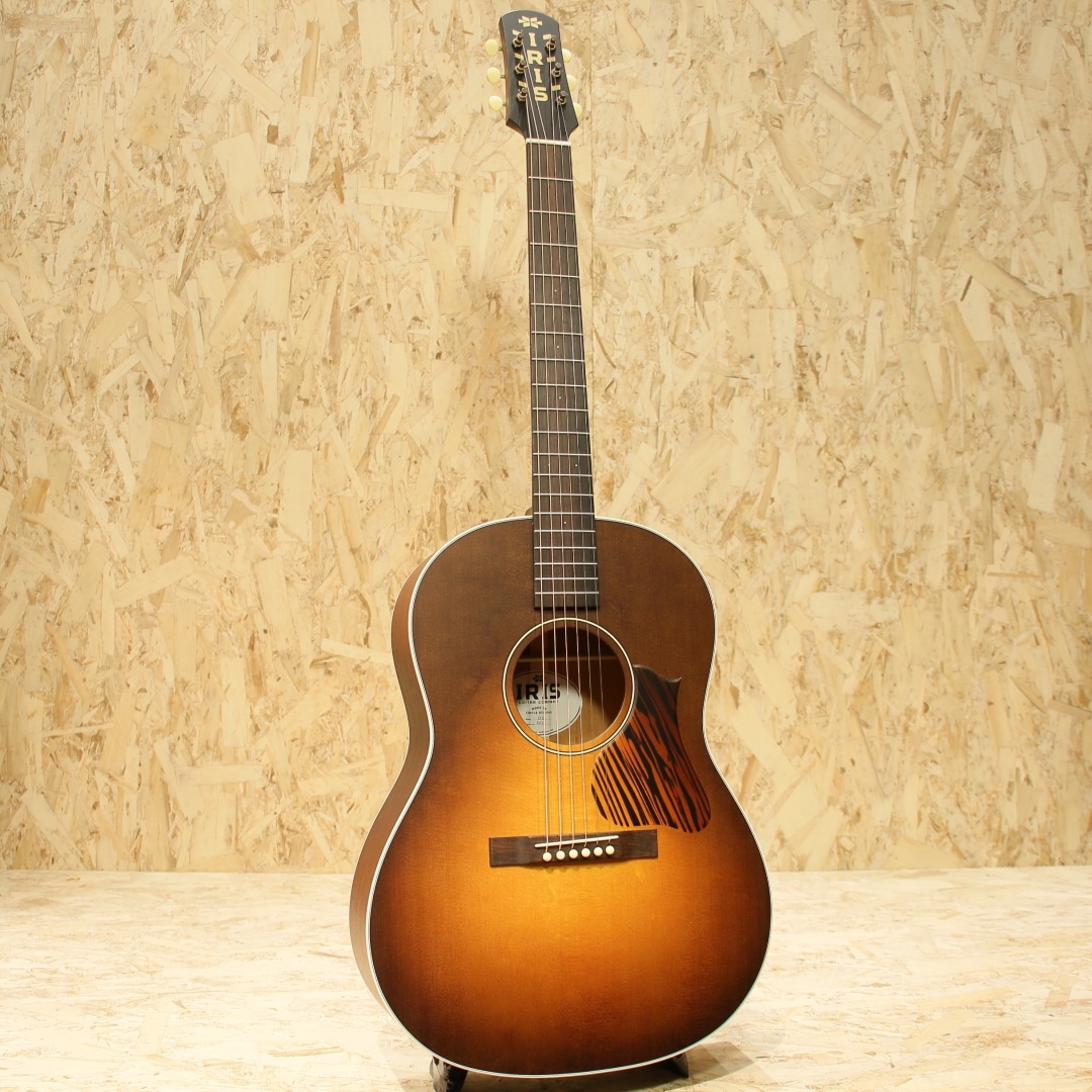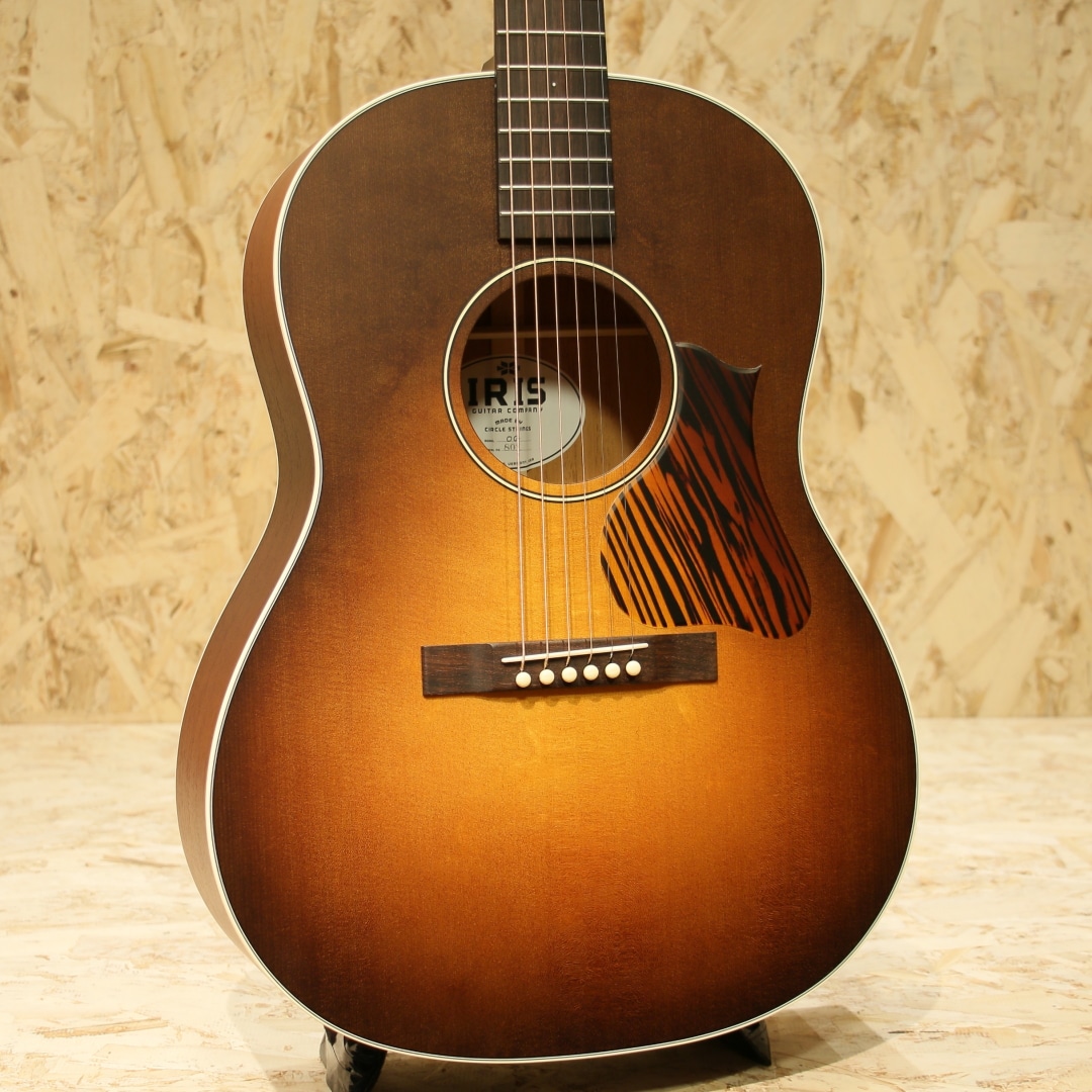 バーモント州バーリントンにて2018年に設立された”IRIS GUITAR COMPANY(アイリス・ギター・カンパニー)”。ヴィンテージにインスパイアされたトーンと美学を捉えたモダンな楽器の製作をする高い技術と経験を持つ少数精鋭のルシアー達によるチーム。Froggy Bottom出身で現サークルストリングスの設立者Adam BuchwaldとFairbanks GuitarsのDale Fairbanksが共同設立し、スタッフには元コリングス、サンタクルーズ、Pava、Ellis、など名だたるアメリカンブランドで活躍したエキスパートなスタッフが揃う要注目のブランドです。Made in U.S.Aのハイクオリティーを実現しながら入手しやすい価格でプレーヤーに使えるギターを提供する事を考えられています。本器は、ロウワバウト14.5インチ幅、ラウンドショルダーボディをサイズダウンさせたような同社を代表するオリジナルシェイプ”OG Model”。シトカスプルーストップ、マホガニーサイド&バック、マホガニーネック、ローズウッド指板、ローズウッドレクタングルブリッジ、べっ甲柄ピックガード、Golden Ageレリックブラスペグ、ブレーシングはアディロンダックスプルースを採用したスキャロップドXブレイシング、ボルトオンネックジョイント、木の導管が浮かぶ極薄のオープンポアサテンニトロセルロースラッカーフィニッシュにて仕上げれらています。テーパードヘッドやピックガードデザインなど随所に拘りを感じるディティール、どこか懐かしいようなレトロな雰囲気を醸し出しています。サイズを活かしたまとまりのあるサウンドバランス。極薄ラッカーフィニッシュからなるウォームかつドライなトーンながらミドルレンジも豊か、ジャンルの垣根を超え活躍する頼もしいモデル。驚くはその小振りなボディからなる大音量、程よく艶のある甘く太いトーンとの相性も抜群で、ストロークはもちろん、ラグタイムやオープンチューニング併用などのフィンガースタイルにもしっかりとはまります。ハイクオリティのオリジナルミドルボディモデル。古き良きオーセンティックなアメリカンギターの存在感を持ちながらも現代的で確かな技術で造られるアイリスギター。現在アメリカでも話題のブランドです。オリジナルハードケースが付属します。