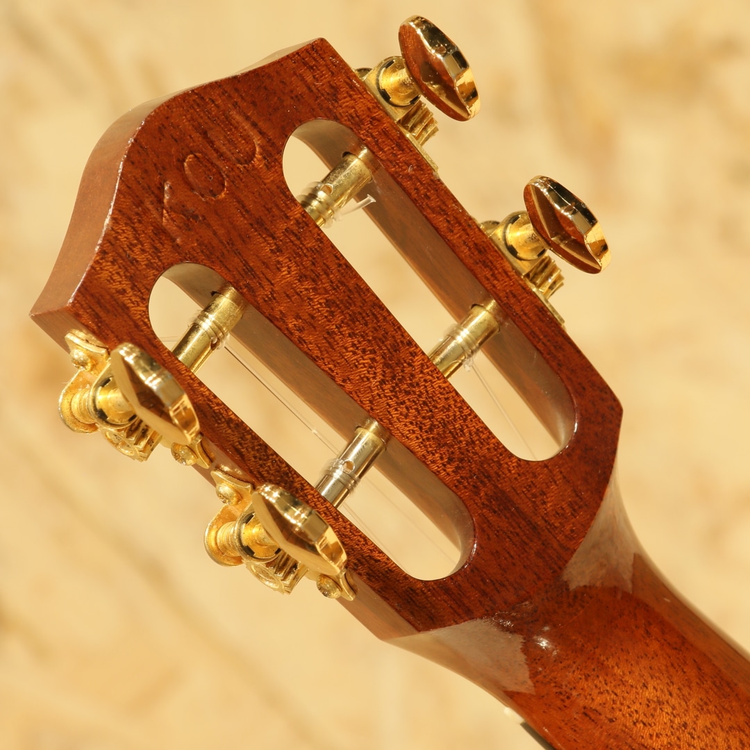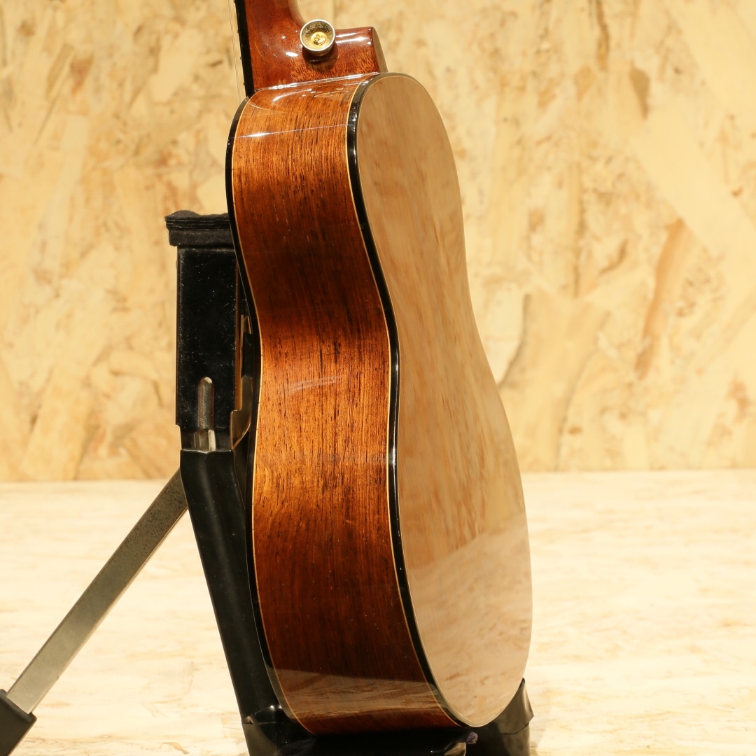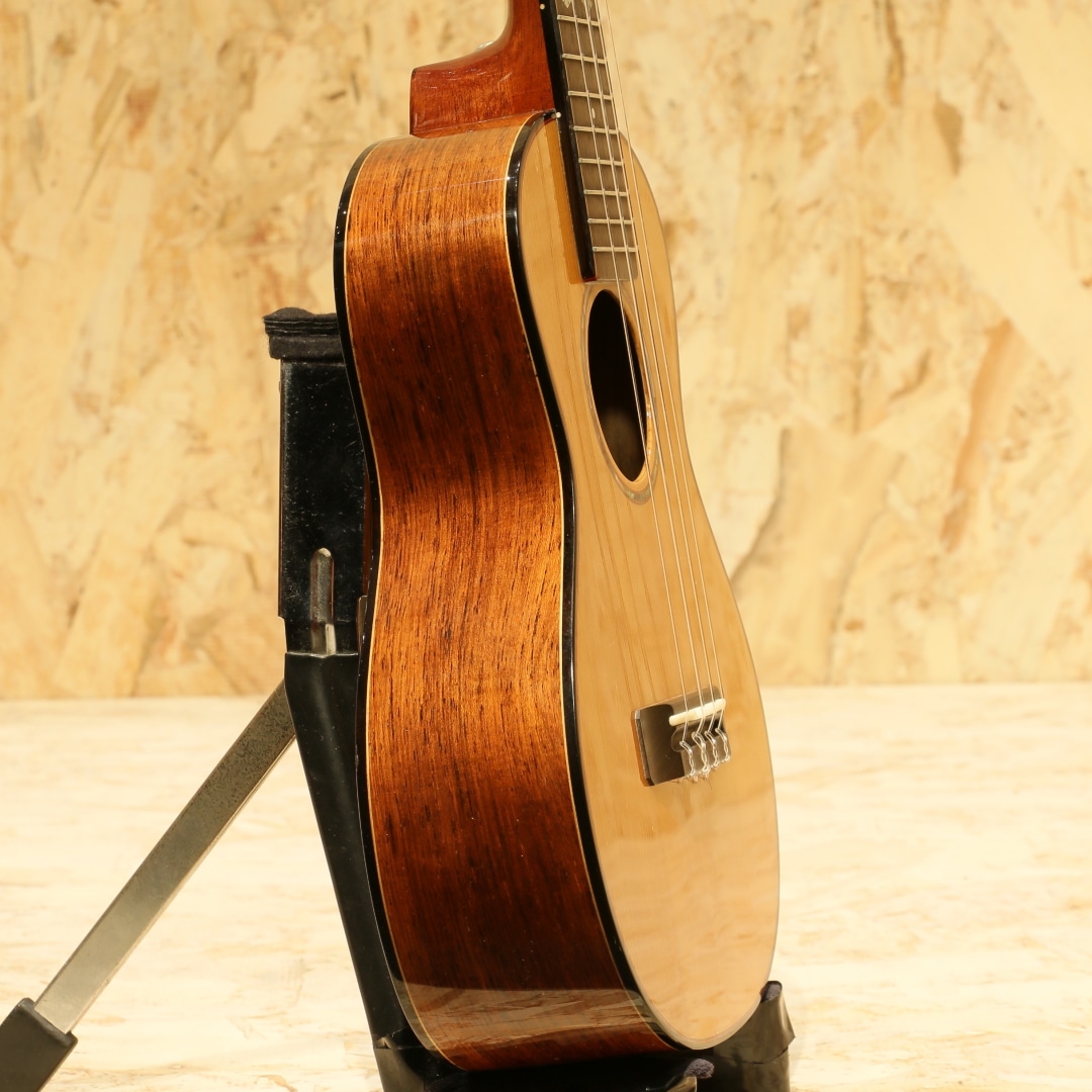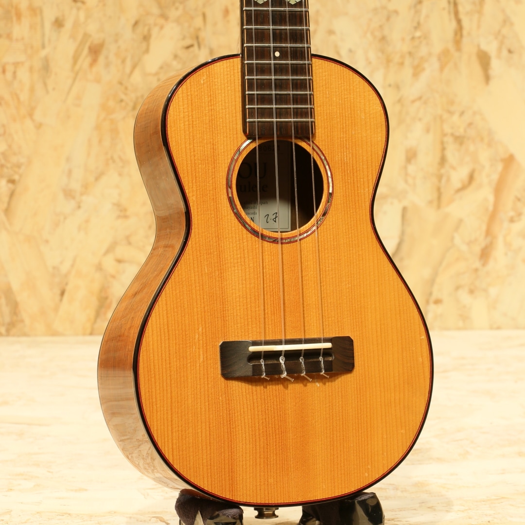 1998年茶位幸信氏に師事し、工房にて12年の修行を積み、ギター、ウクレレの製作技術を習得。2010年満を持して独立を果たす。クラシックギターの原点といえるトーレスの製作方法などを研究し、ウクレレに活かした構造はこれまでのウクレレのイメージを払拭した音色で、コアなウクレレファンを唸らせています。これまで”Furubayashi”、”F’s uke”というブランド名にて多数のウクレレを製作されてきましたが、また新たなコンセプトのもと誕生した話題のブランド”KOU”。デザイン性、使用される材等に更なるこだわりが感じられ、コストパフォーマンス性にも優れたウクレレ。”KOU”というブランド名は持っていただいた方に「幸せ」な気分になってほしい、という思いで名付けられたとのこと。本器はシダートップ、マダガスカルローズウッドサイド&バックのコンサートサイズボディセミロングネック仕様"CEDCMR-LN"状態良好のUSED品。マホガニーネック、ローズウッド指板&ブリッジ、ゴトー製ゴールドペグ、アバロンロゼッタ、ドット&ダイアモンドパターン指板インレイ、ネックストラップピン、2ndファクターコンタクトピエゾAPU-2s搭載。豊潤で豊かな響きと心地よい柔らかなトーンを持つシダー、そこに重厚なマダガスカルローズウッド材を合わせることでレスポンスの良い芯のあるサウンドが生まれます。存在感のある音色はウクレレ1本でも安定したサウンドをもたらします。パッシブタイプのコンタクトピエゾ、APU-2sが搭載。小楽器用に改良された軽量で耐久性のあるピックアップ、生鳴りの自然なラインサウンドをアウトプットします。1弦側サイド面に割れ補修跡がございますが、よく見てわかる程度でさほど目立ちません。しっかりと扱われてきたことがうかがえる使用感ですが、プレイコンディションは良くまだまだ現役でお使いいただけるポテンシャルを秘めています。グロスフィニッシュ、ゴールドパーツ、アバロンロゼッタなどシンプルながら高級感の味わえるルックス。ピックアップ搭載の使い勝手の良い国産ウクレレです。汎用ハードケースが付属します。