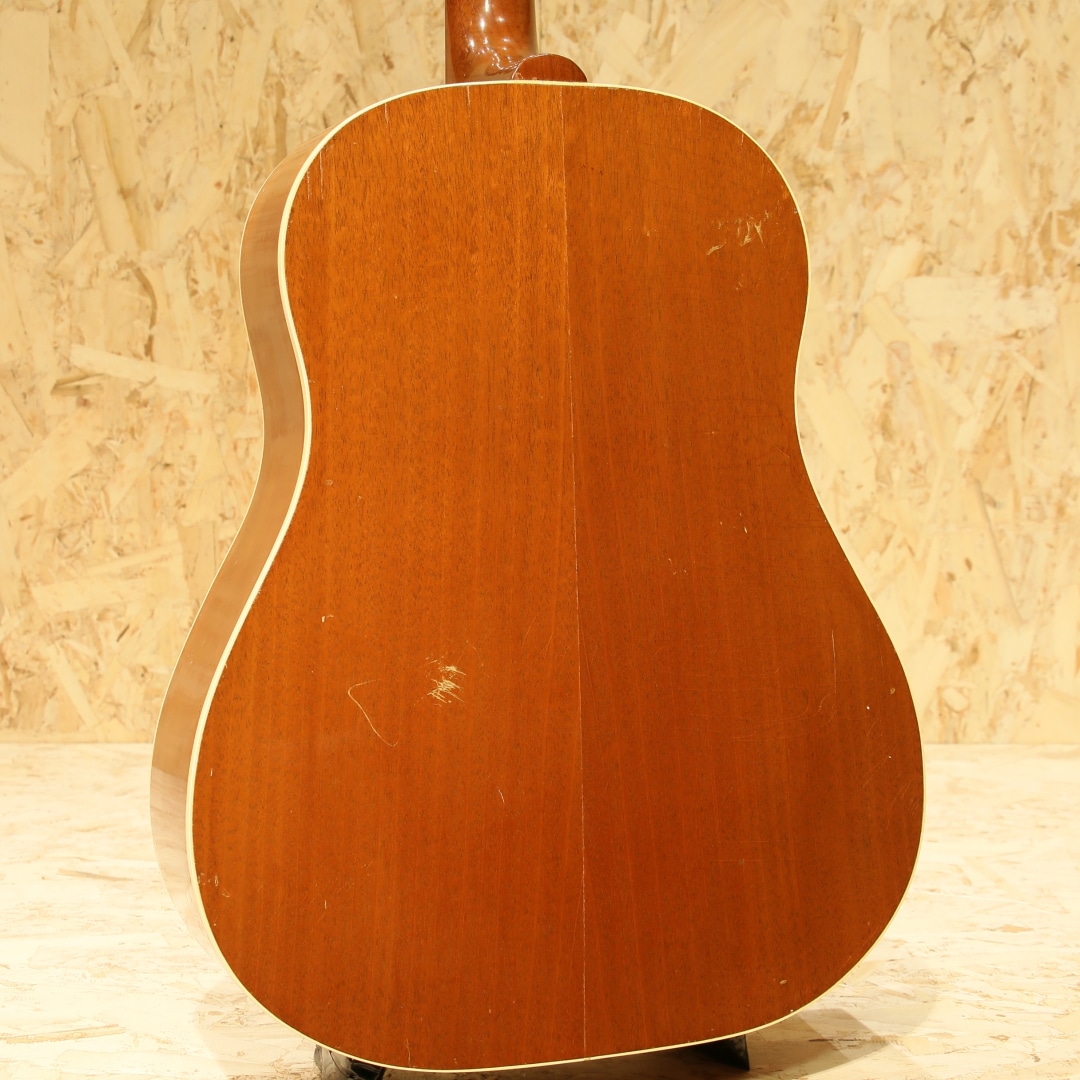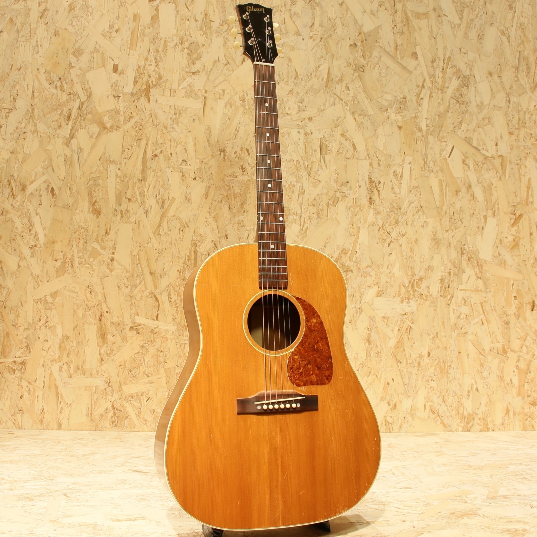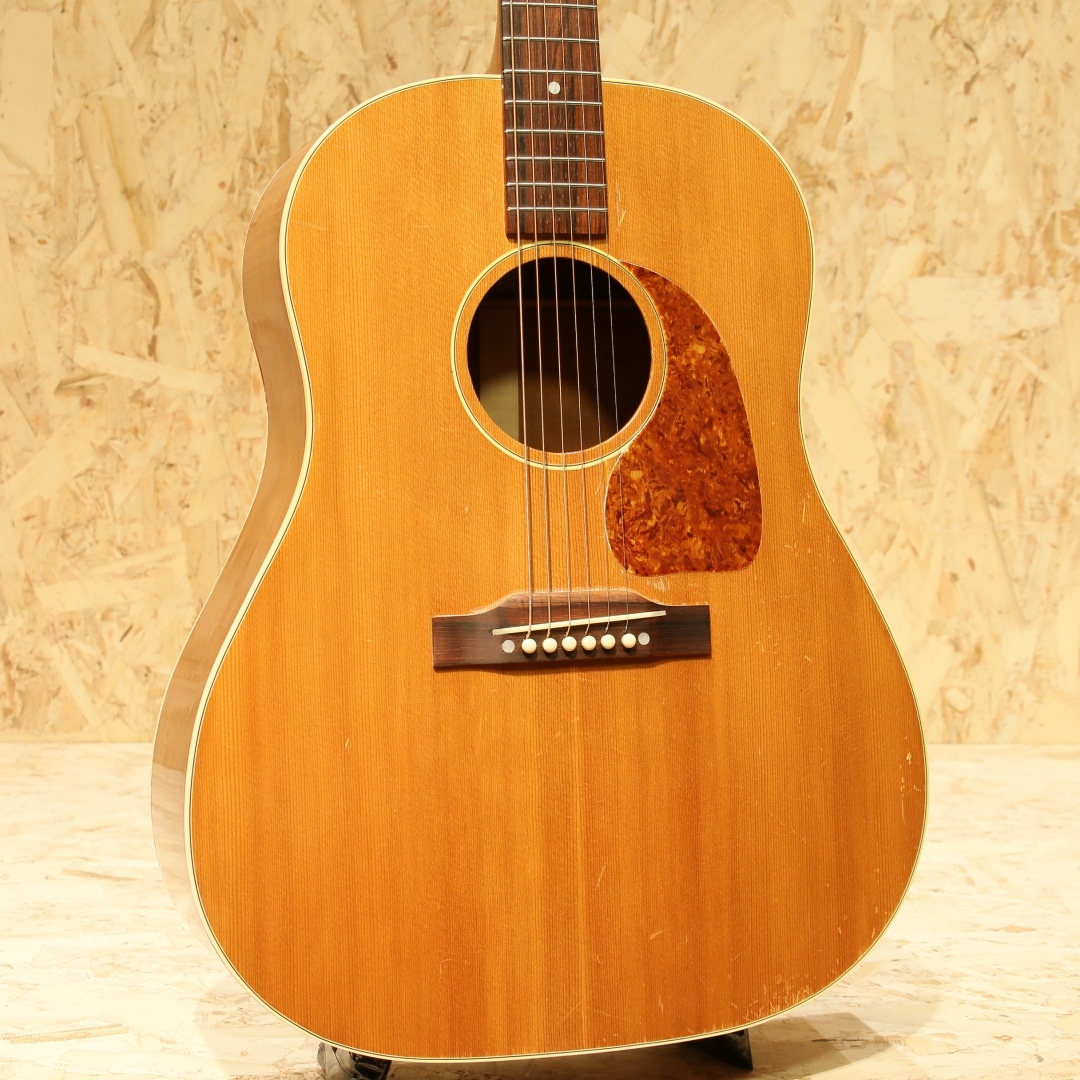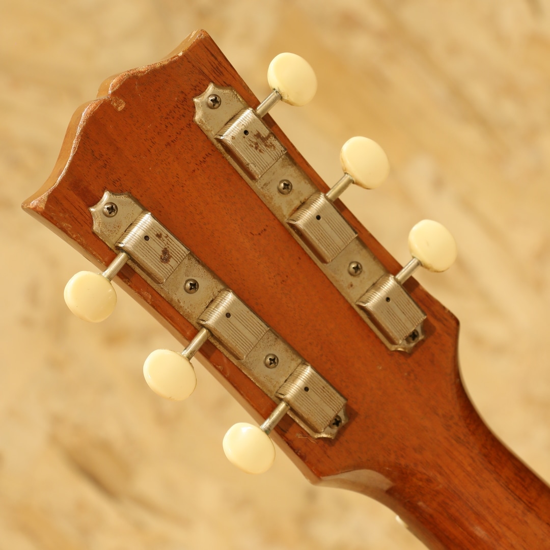 ギブソンフラットトップの顔、ワーキングホース"J-45"。ギブソンを代表する45と対をなす存在のナチュラルトップラウンドショルダーボディのジャンボモデルが本器”J-50"です。"J-45”を追う形で1947年に登場した”J-50”。ナチュラルトップが故に良材を選定し使用され別型番として登場。その後は”J-45”と対をなし共に歴史を歩みます。本器は1952年製のVintage品。スプルーストップ、マホガニーサイドバック、マホガニーネック、ハカランダ指板&ブリッジ、オリジナルクルーソン無刻印3Per Plateペグ、オリジナルピックガード、スキャロップドXブレイシング、ロングサドル仕様。1955年までに採用されていたスキャロップドXブレイシング仕様でこの時代のものでしか出し得ない独特の空気感を含んだファットなボイスは50年代中後期以降のモノとは一線を画した音色です。軽いタッチでも響くようなレスポンスに大きく揺れるような躍動感あるサウンド。ドライでウッディながら特有の甘さも残り開放的で音に包まれるような響きが感じられます。ギブソンでは定番と言える表板のピックガード内側にピックガードクラック、ほぼ同ラインの1弦側サウンドホール上部にクラックの修正が見られますがいずれも丁寧に修正が施されております。バックセンターシームに沿っての塗装チェックが見られますが、継ぎ目の歪みによるもので開きはなく、外観的なもので問題ありません。全体的なウェザーチェックは細かく見られるものの塗膜の素晴らしい状態をキープ、上記のガードクラック以外ボディー部分のクラックはなく、小傷は見られるものの極上のコンディションです。この年代のJ-50/J/45のお手本のようなサウンドを本器は持っています。年々高騰を見せるGIBSON、VINTAGE。憧れのサウンドを手に入れる決断は今かも知れません。汎用ハードケース付属。