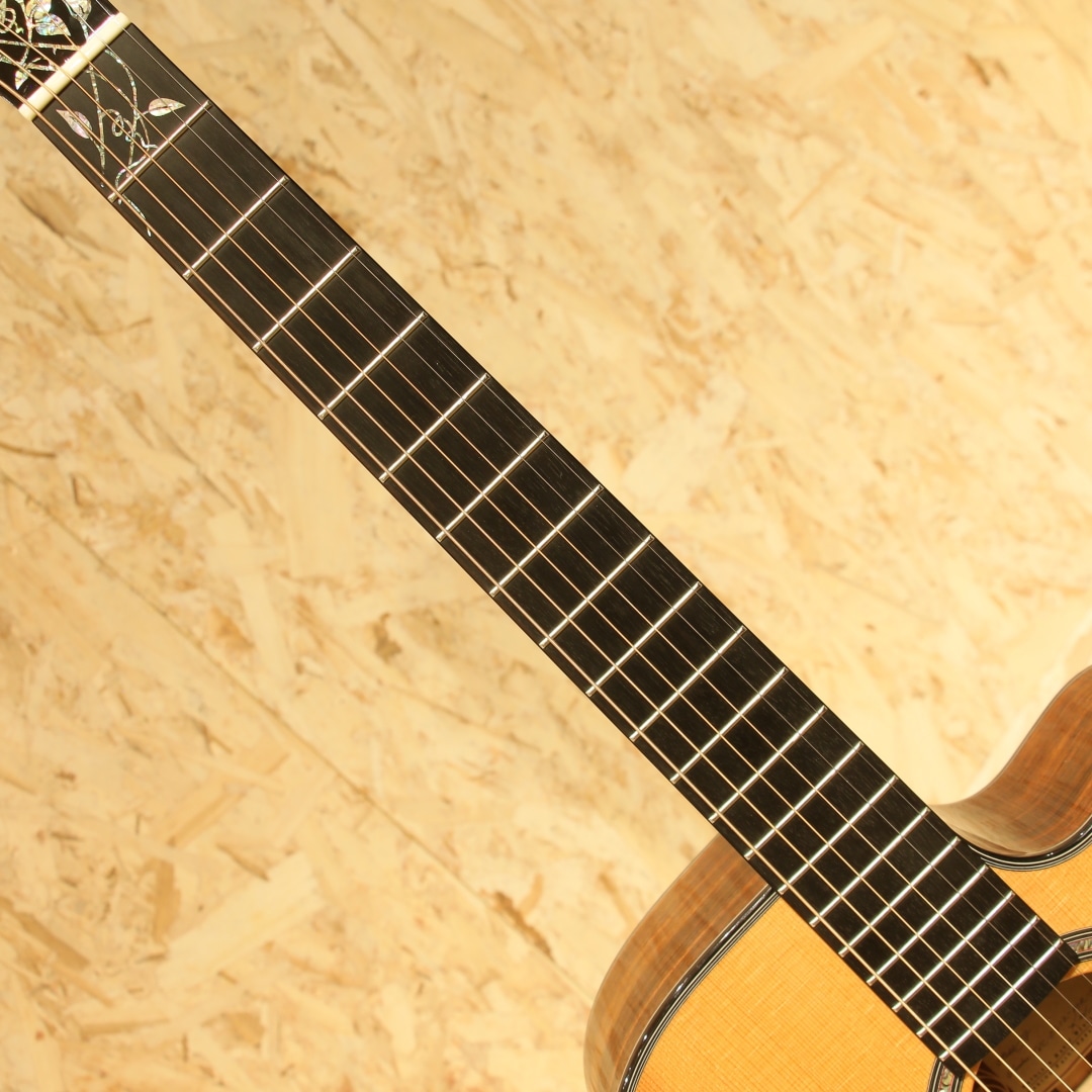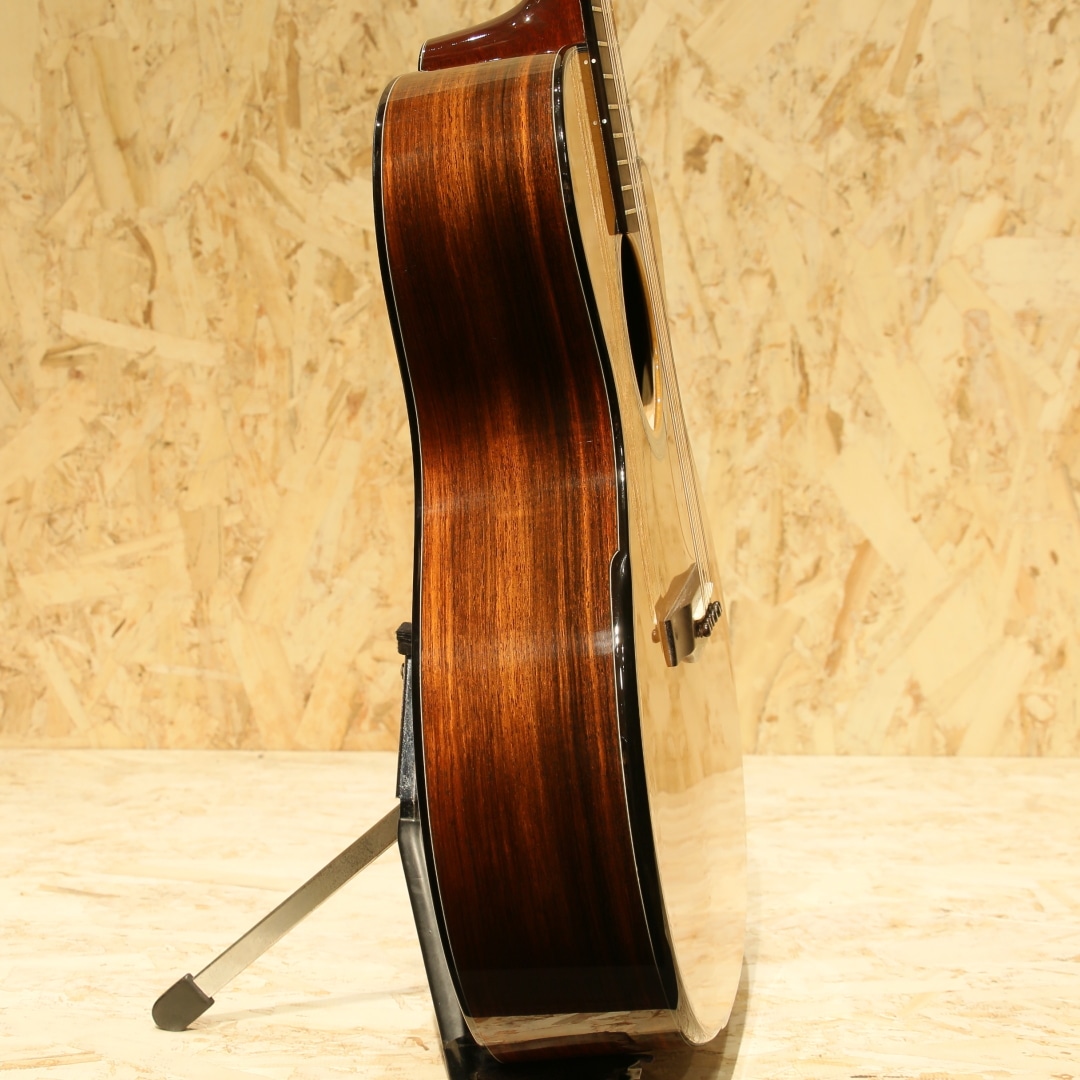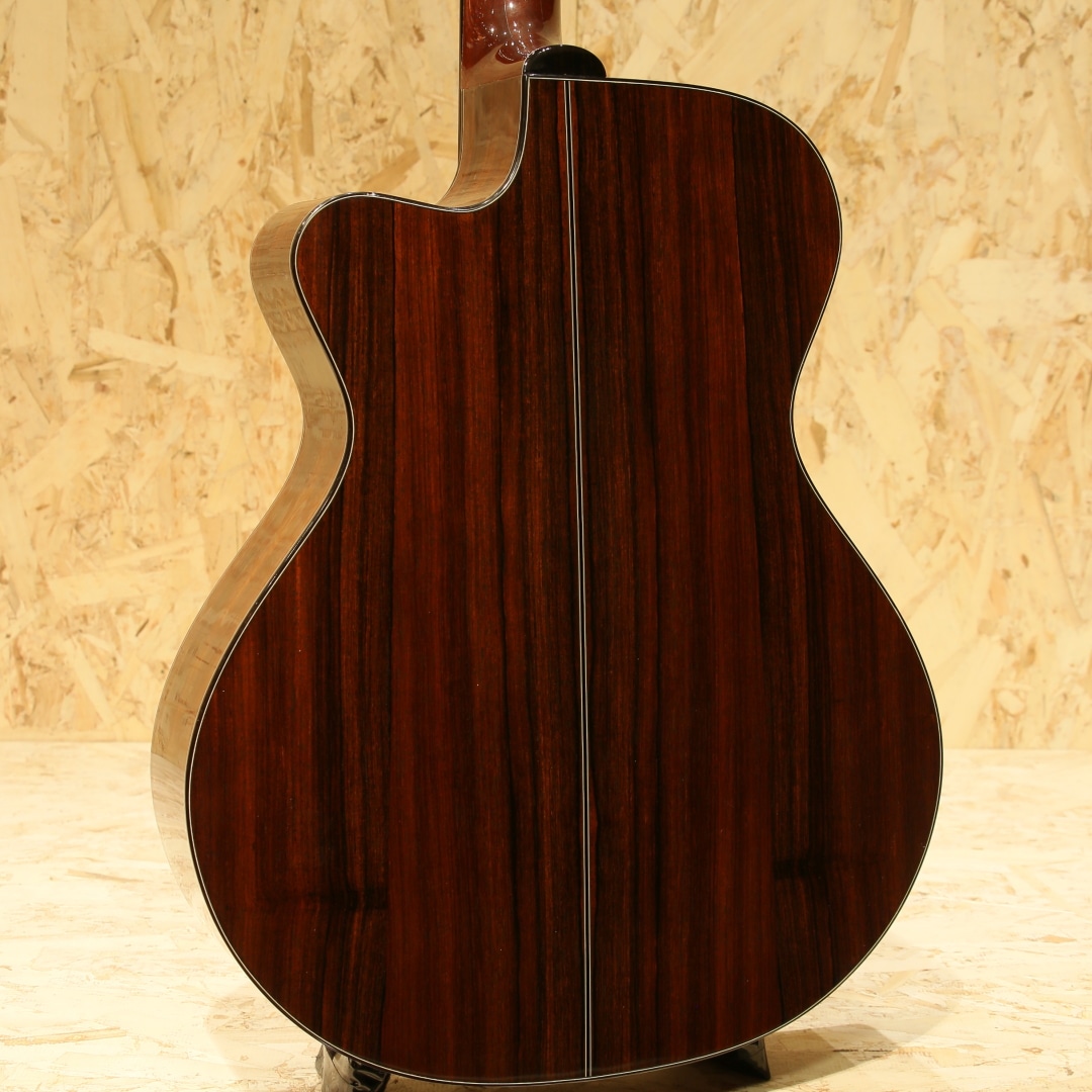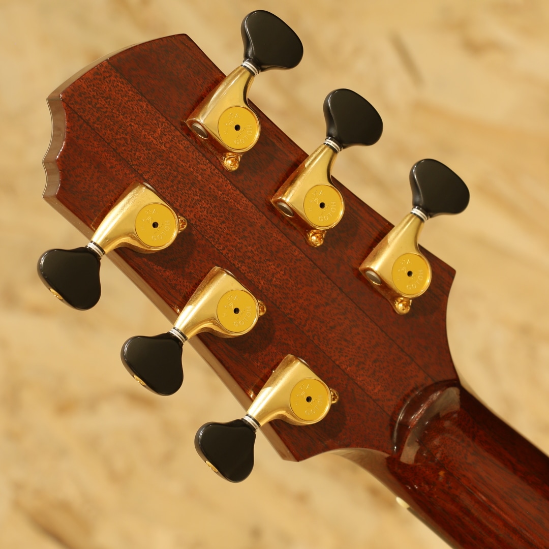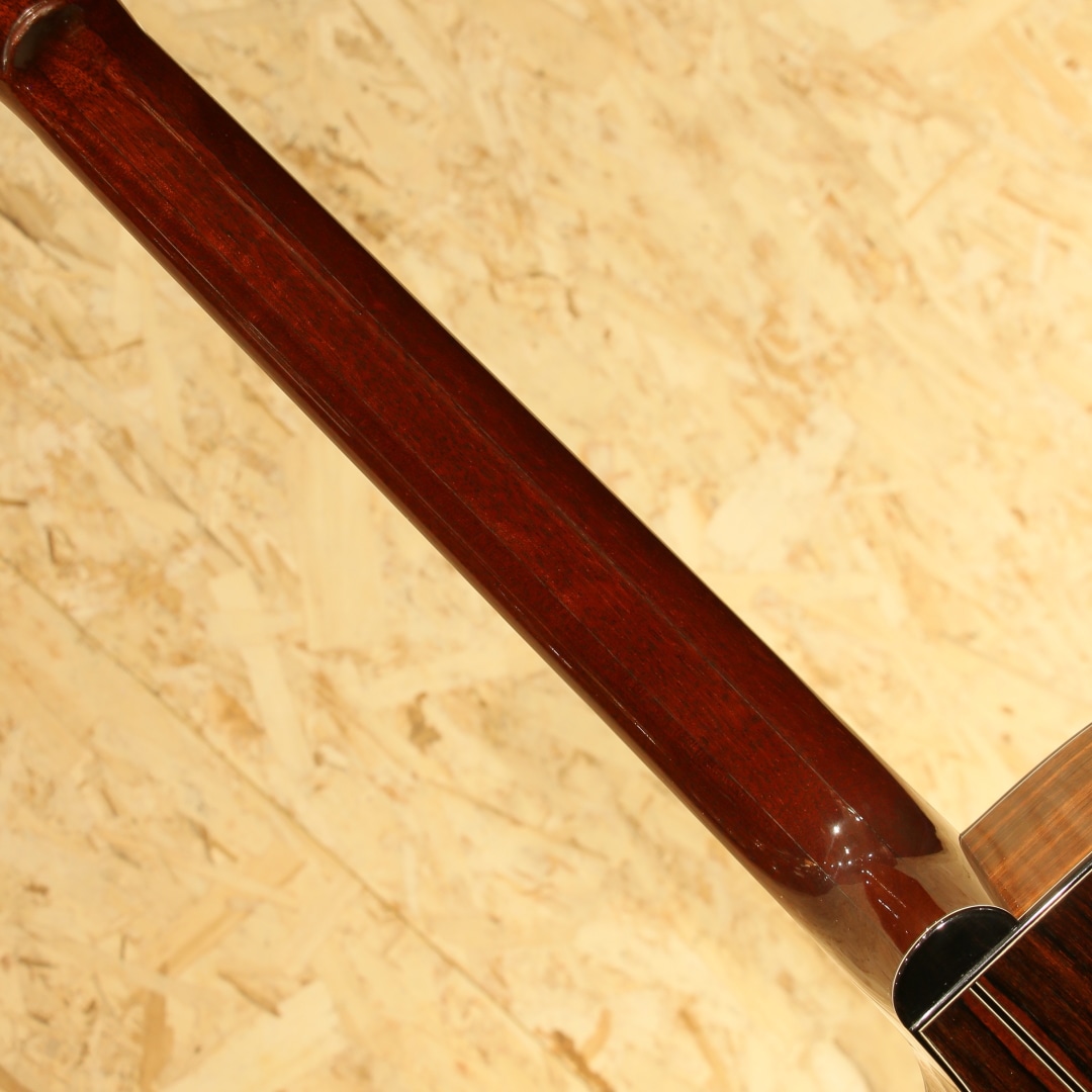 ロサンゼルス近郊に工房を開く女性ルシアー"Kathy Wingert(キャシー・ウィンガート)"。スタイルを選ばない16インチ幅グランドオーディトリアムタイプの一本です。ヨーロピアンスプルーストップ、柾目マダガスカルローズウッドサイド&バック、最高級の材料です。エボニー指板&ブリッジ、ゴトー510ペグ、透明ピックガード、アバロンロゼッタ、コンターベベル入りエボニーバインディング、ベネチアンカッタウェイ、側板ダブルレイヤー、オリジナルスキャロップブレイシング、"THE ROSE"アバロンインレイ。取り扱いディーラーは世界でも米国に一店舗しかありませんので日本国内で彼女の作ったギターに触れられる機会も稀なのですが、アメリカのギターショウでは常連のベテラン製作家。出来の良い楽器に共通する目立つところの少ない、静かでエレガントな音色。わざとらしさがまったく無く、とても自然です。音場感が広く見晴らしの良いウッディなトーン。曇りのない締まった低音、スムースな中音、鮮明な高音。右手のタッチに対して表情豊かに立ち上がり、この上ないバランス感で極上のカルフォルニアルシアーサウンドとも言うべき豊潤な響きを体いっぱいに楽しんでいただけそうです。愛娘のジミーさんが一貫して施すインレイワークの緻密さも魅力のひとつ(色とりどりの貝が使われています)。ネックと指板を繋ぐラインを帯びた塗装引け、ブリッジ縁サウンドホール側にブリッジに押されてほんの僅か塗装の剥離、写真にうつりにくいレベルの細かい擦り傷などは見られますが使用感の薄い、大変綺麗なコンディションをキープ。ネックもストレートでやや低めの弦高セットアップ、とても弾きやすい状態をキープしています。キャシーウィンガードのギターも年々高騰を見せています。大変貴重なUSEDアイテム。HOFFEE製高級ハードケース付属。ぜひお見逃しなく。