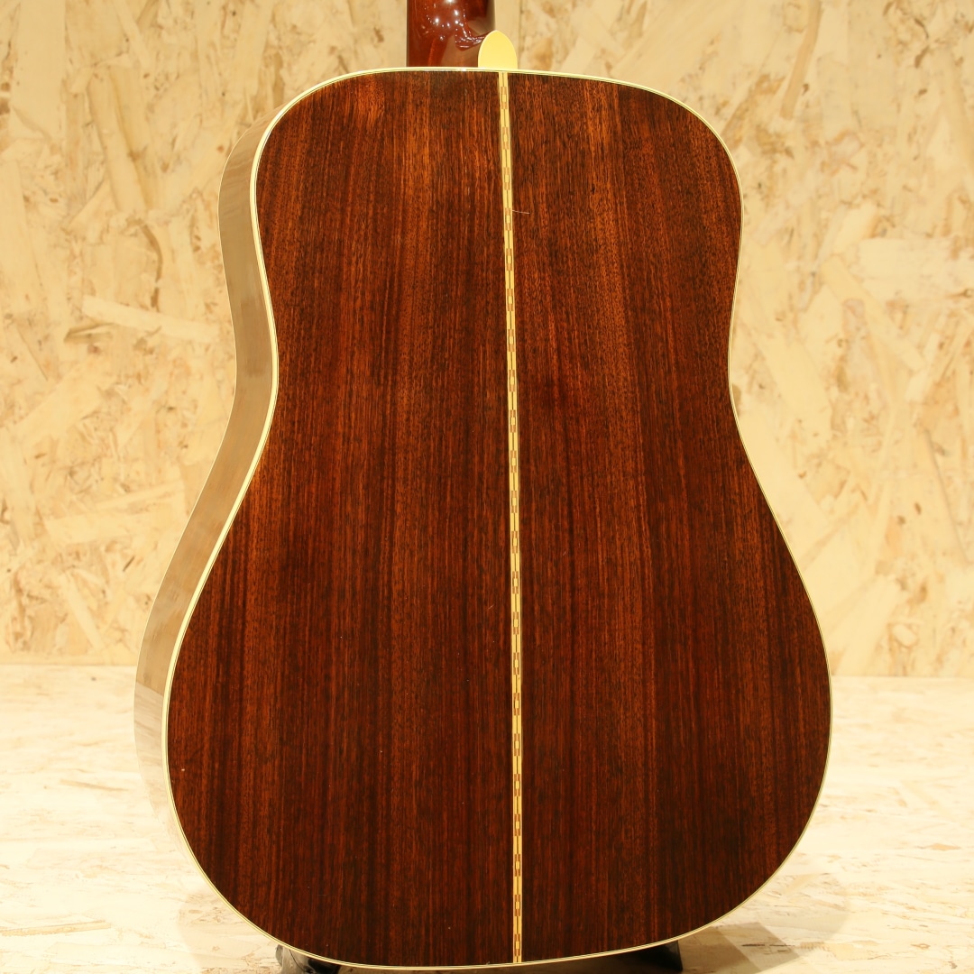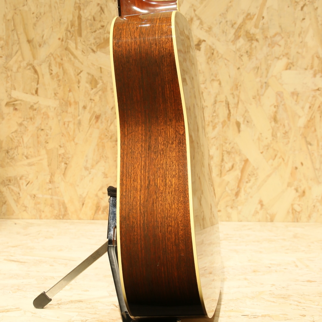 独自の工法と方法論で高品質のアコースティックギターを製作している長野県松本の老舗"ヘッドウェイ"。HEADWAYは1977年に創業、1983年には工場が2度の火災にあってしまいアコースティックの製造はストップしてしまいました。2000年にはファンからの熱い要望から復活し現在まで製造を続けています。本器は火災にあう前の旧工場メイド、当時では初の限定モデルとして100本のみ製作された"HD-80S"。1980年製USED品です。スプルーストップ、ローズウッドサイド&バック、ワンピースマホガニーネック、エボニー指板&ブリッジ、クルーソンタイプワッフルバッククロームペグ、パール指板ドットポジション、べっ甲柄ピックガード、ノンスキャロップドXブレイシング、19-20フレットの間にはゴールドプレートが取り付けられています。1980年からカスタムオーダーの受付を開始したHEADWAY、本器は初の限定モデルとして熱量を込められて製作されていました。これを機会にモデル数もこの年から増え、翌年にも限定モデルの製作、旧工場の最終年83年にも限定モデルを製作するなど1つの転機となったモデルに当たります。この時期着々と評価を上げていたHEADWAY、本物志向で長く使えるモノを作りたいという百瀬氏の意向を反映したかのような強度の高さ。元よりネックの強度に定評がありますが、この時期のモノもネックトラブルが少ない事からその強度が窺えます。とはいえネックグリップ自体はVシェイプではなくなだらかなCシェイプ。握りやすく演奏性も考慮されたネックです。HEADWAYらしい芯の強いサウンド、クリアさは健在。重量感のあるロー感、華やかさ。ドライブ感のあるサウンドで煌びやかなトーンを含んだ音色、輪郭のハッキリとする様はきっちりと精度高く作っていることが伺えるサウンドです。ヘッド付け根に割れたような跡が見られますが、現在では修正されており使用上問題ありません。その他は薄い擦りキズや細やかな当てキズは見られるものの年式を考えると非常にキレイなコンディションをキープされた個体。ネックにおいては文句も付けようがないほどの状態、40年近く経たモノとは思えないほどのプレイコンディションをキープしています。市場でも見かけることの少ない旧工場モノ。更にはヘッドウェイ初の限定モデル、是非お早めにご検討ください。プレート付きオリジナルハードケースが付属します。(表面にややべたつきがございますが問題なくご使用いただけます)