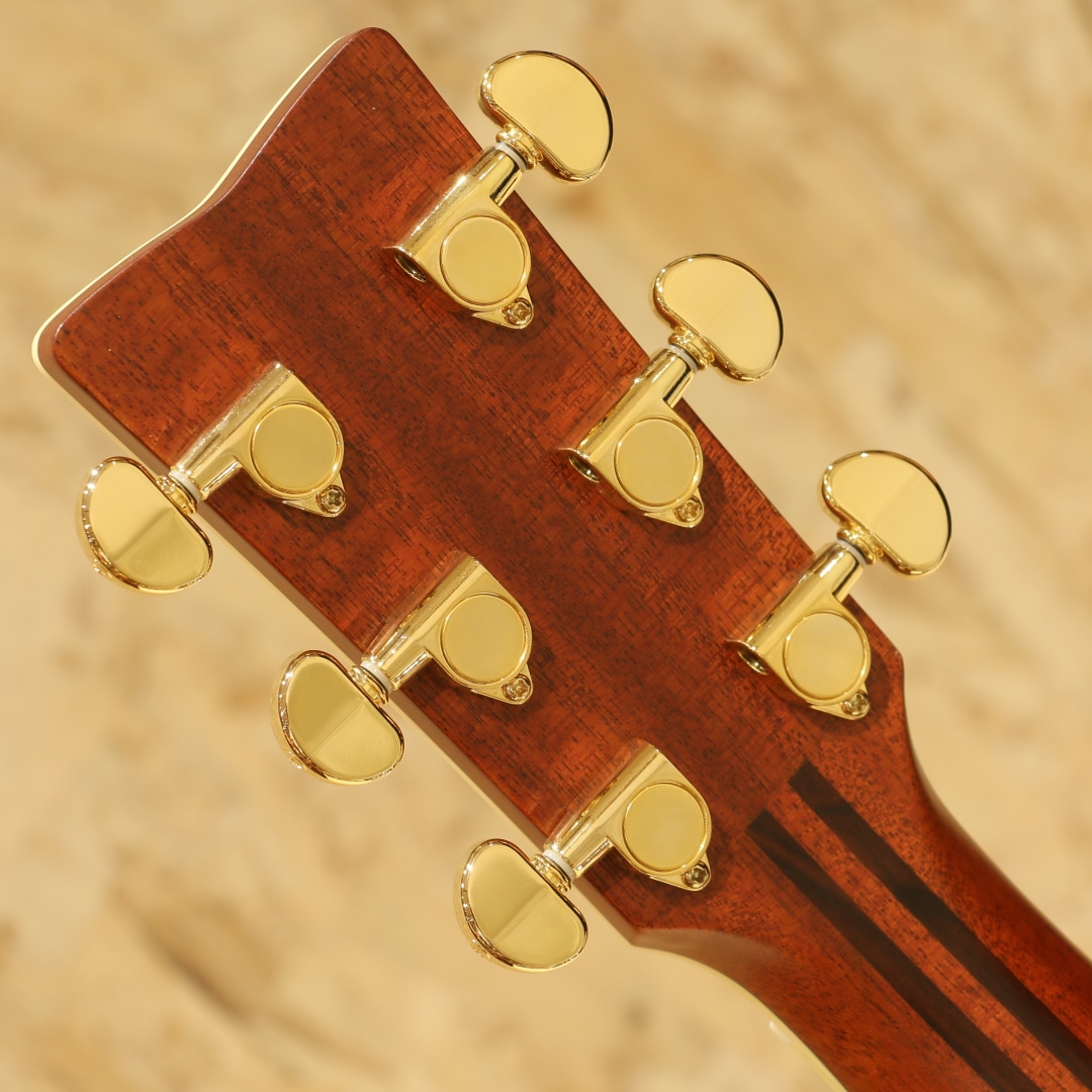 国内外問わず使用アーティストも多い、日本を代表するブランド”YAMAHA”。本器はLuxury(豪華な)を名前に冠する”L”シリーズの定番モデル。ローズウッドをボディに使用した"LL16 ARE"です。イングルマンスプルース単板(A.R.E)トップ、ローズウッド単板サイド&バック、マホガニー&ローズウッド5プライネック、エボニー指板&ブリッジ、オリジナルペグ、パール指板ドット、オリジナルピックガード、アバロンロゼッタ、ノンスキャロップブレイシング、ナチュラルカラー、パッシブアンダーサドルピックアップ搭載。外観の豪華さに加えやや大きめのボディからは音の広がりや豊かな低音感を感じられます。ネックの厚みは薄めに成形されており演奏性良好。さらには演奏性を考慮しつつネックを5層構造にすることで安定度と強度が確保されております。トップ材にはA.R.E処理の施されたイングルマンスプルースを使用。A.R.E.(Acoustic Resonance Enhancement)とは温度、湿度、気圧を高精度に制御し、経年変化と同じ変化を短時間で生み出すヤマハオリジナルの木材処理技術です。この恩恵を受けつつも、元よりイングルマンスプルースの持つ低音は柔らかく高音は上品で煌びやかなサウンド。サイド&バックに使用されている重厚なローズウッド材のもつ煌びやかな音色も合わさり、ピック弾きや指弾きのスタイルを選ばず演奏が楽しめます。ピックアップには電池の不要な(パッシブ)アンダーサドルピックアップが搭載。サドル下の素子(センサー)で音を拾う性質上マイクで音を拾うタイプのピックアップに比べるとハウリングに強く、音量や音圧が必要なバンドサウンドにもお勧めです。電池の残量を気にすることなく演奏できるのもメリットの一つ。ボリュームやトーンなどのコントローラーは付いておらず、繋ぐ際には特に操作をする必要はありません。シールドを繋げば直感的にサウンドを出力できます。家弾きはもちろん、ライブや配信に宅録と幅広く活躍できるギター。初めての方はもちろん、2本目のギターをお探しの方にもオススメの1本です。