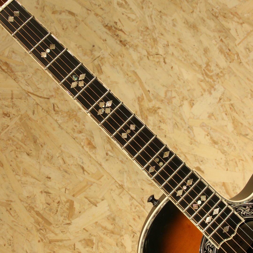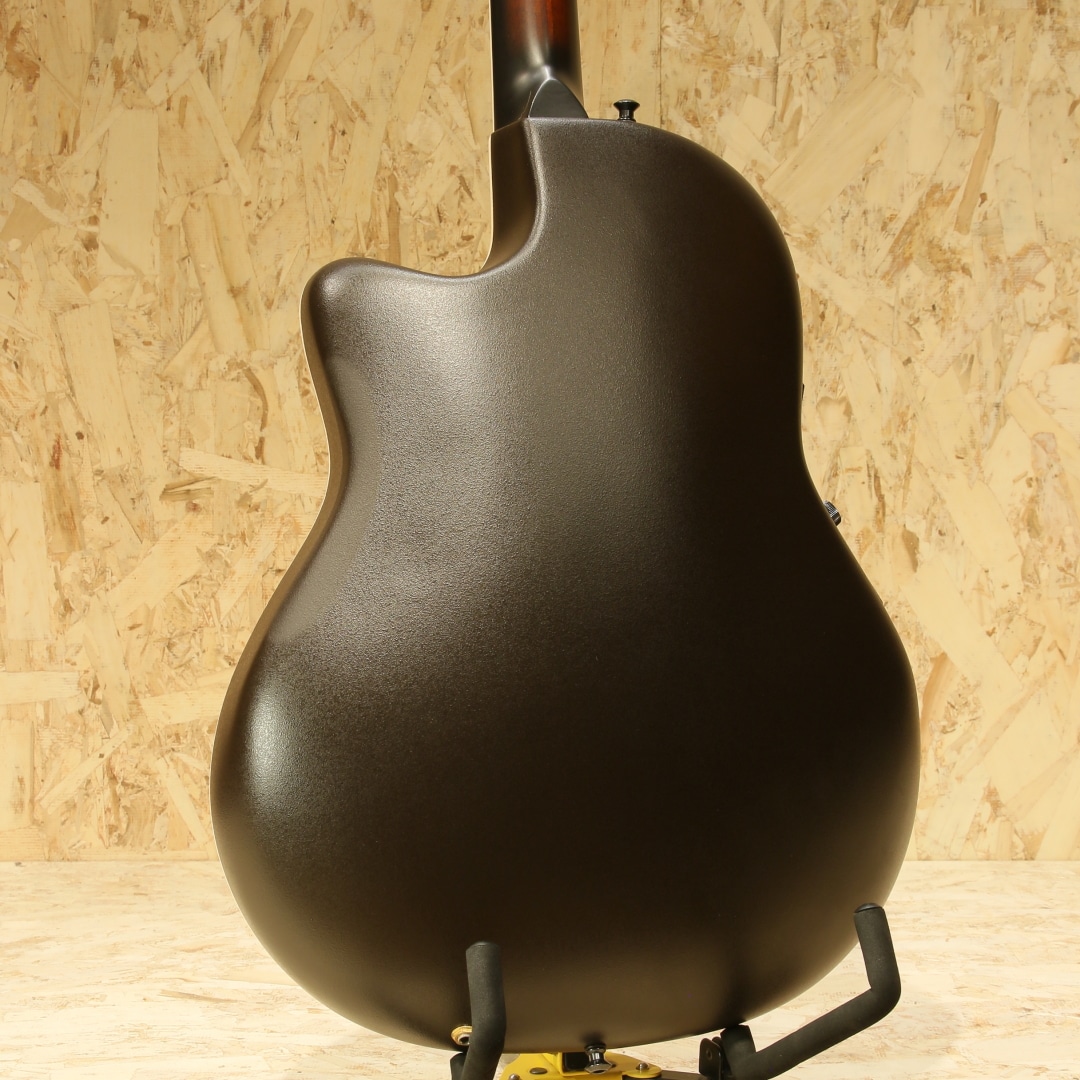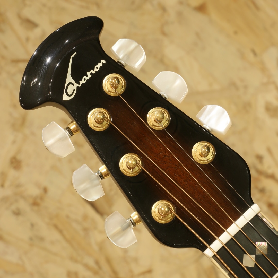 1966年、ヘリコプターの製造会社の社長であり、有名なギタリストでもあったチャールズ・カーマンによって設立されたオベーションは航空機の技術をギターに活かしたエレクトリックアコースティックギターを発売。保守的なミュージシャンにも受け入れられ、エレアコの代名詞的ブランドへと成長します。本機は当時の日本代理店だった中尾貿易による特別オーダー品、ボディサイズ違いの2種類で合計120本だけ作られた内の1種類”N869S”。1993年製USED品です。フレイムメイプルトップ、リラコード樹脂製ディープボウルカッタウェイ、マホガニーネック、エボニー指板、ウォルナットブリッジ、パーロイドボタンのオリジナルシャーラーペグ、OP24プリアンプ内蔵。当時N869シャローボールとN869スーパーシャローの2種類で合計120本製造、1993-1994年にかけて製造された日本代理店特別オーダー品です。カスタムレジェンドと同じくエポレットのロゼッタ、ゴールドのペグ、装飾入りのブリッジ、アバロントリムと特別感のある仕様。ボディサイズはスーパーシャロ―、ボディ厚が一番薄いタイプになります。抱えた際の圧迫感は無く、音の立ち上がりにも優れたサイズ。細やかなフレーズにも追従しやすいポテンシャルを備えたモデルです。ピックアップシステムにはOP24プリアンプを搭載。3BAND EQ,Volとシンプルな構成、操作性も容易で直感的に操作が出来るシステムです。ウォームで暖かいサウンドからブライトなサウンドまで幅広いサウンドメイクが可能。扱いやすさを備えたシステムです。ロゼッタのエポレットに僅かヒビが入っているのが見られる点や僅か弾きキズが見られる点、ペグのくすみが見られる点、サドル(P.U)の出し代こそやや少なめではあるものの全体的に使用感は薄く良好な状態をキープされている本器。ネックコンディションも整えられ演奏性の高い個体です。数の少ない代理店オーダーのOvation。豪華さを備えた状態の良い1本。ご検討の方は是非お早めに。