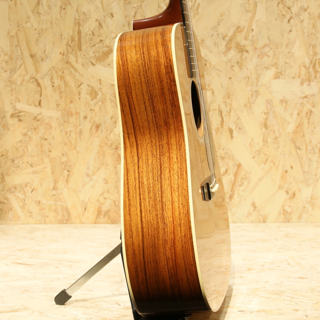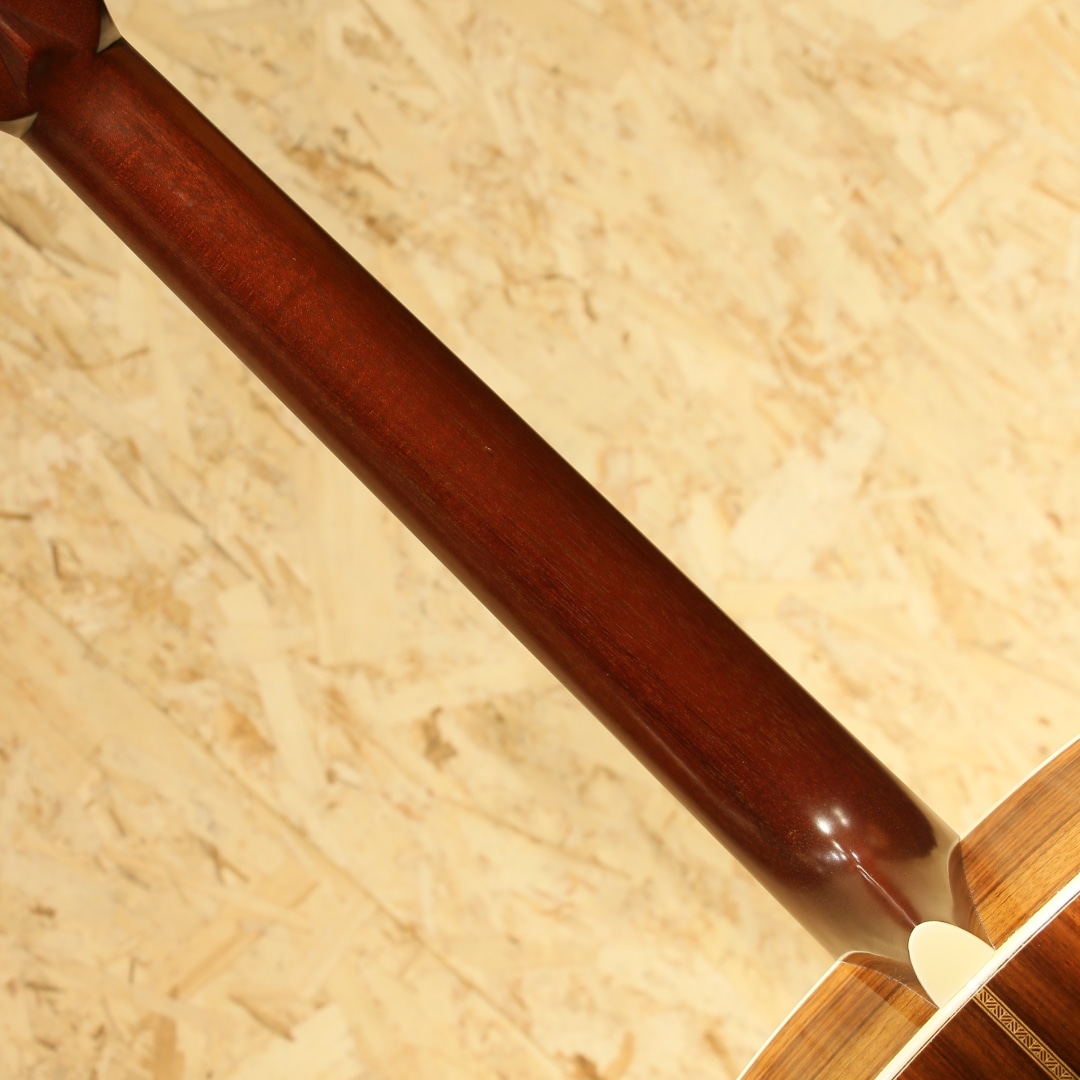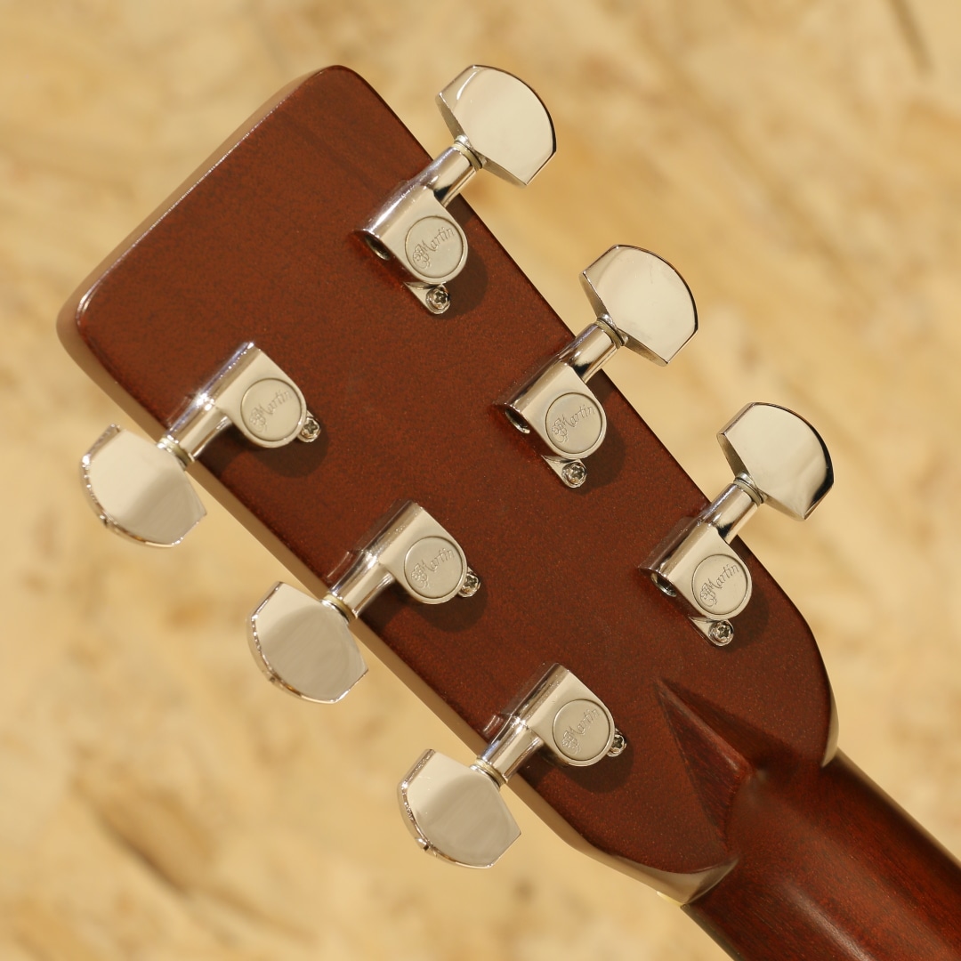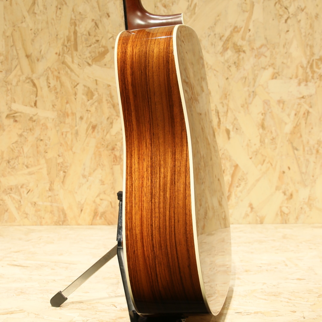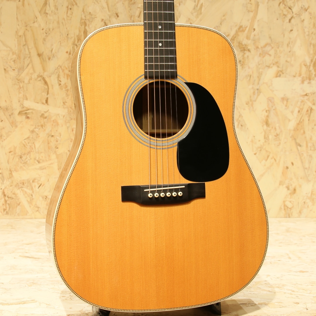 HD-28は1944年まで採用されていた戦前期後半のスキャロップドXブレイシング仕様や1946年までのヘリンボーントリム仕様がデフォルトだった時代のD-28からインスパイアされたモデル。1976年に製造されてからもD-28シリーズの隠れた名器として人気を集め続けている機種です。本器は1990年製のUSED品。1985年でレギュラーでの使用が中止となったスクエアーロッド(SQ)を採用した1990年のUSEDアイテムです。スプルーストップ、ローズウッドサイド&バック、マホガニーネック、エボニー指板&ブリッジ、オリジナルシャーラーペグ、オールドタイプヘッドロゴ、ピックガードはややオーバーサイズの面取りされた風合いの良いブラックガードに交換されています。ヘリンボーントリム、スモールメイプルブリッジプレート、ジグザグバックストリップ、スクエア(SQ)ロッド、スキャロップドXブレイシング。ファットで立ち上がりに躍動感があるサウンドで弾けるように膨らむエアリーな音像はHD28ならでは。ネックはSQのため少し丸みを帯びたシェイプですが、それほど厚みはなく安心感のあるグリップです。スクエアロッドでしか出しえない重厚な音色でストローク一振りでこれこれと納得させられてしまいます。ネック裏のわずかな打痕、ボディー全体の薄傷やわずかな打痕、マーティンではまず大体に見られるバインディング剥がれの修正跡などは見られますが極めて良い状態でメンテナンスされており大事に使われてきた個体と一見で頷けます。ネックの状態もストレートで素晴らしく弾きやすくセットアップされており大変良好。オリジナルのハードケースも付属した状態良好品です。