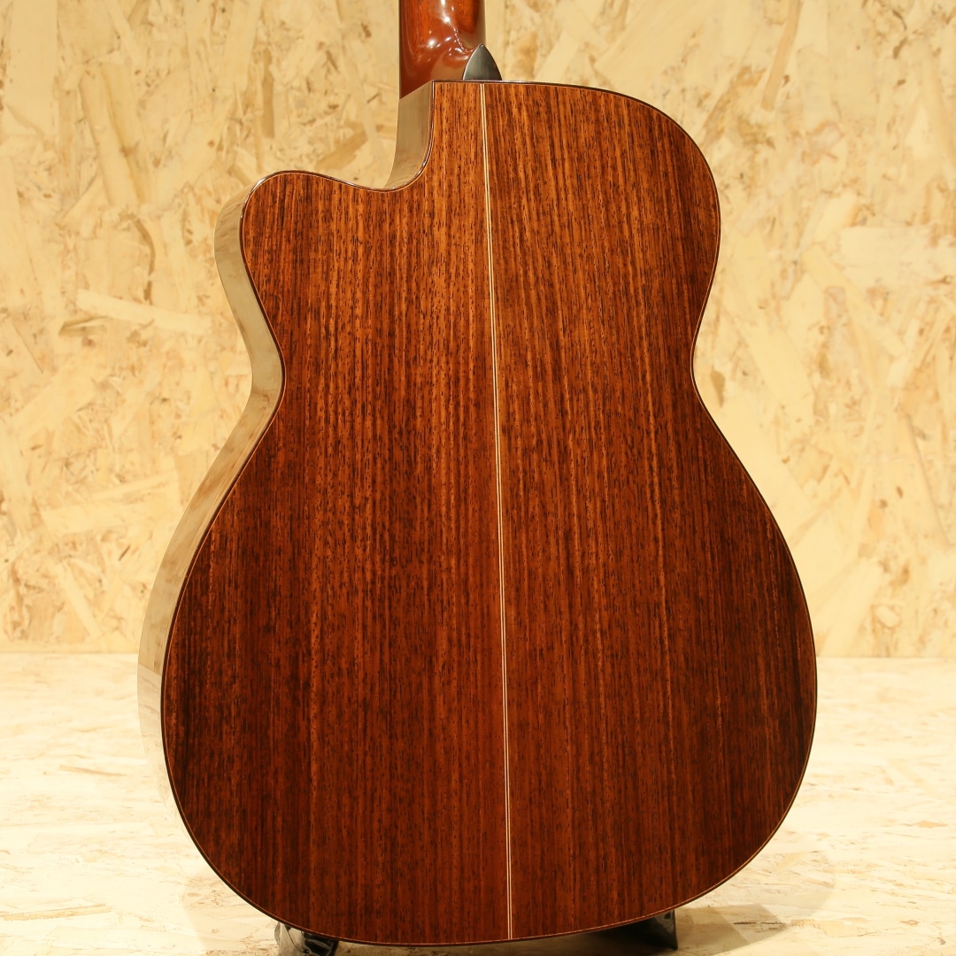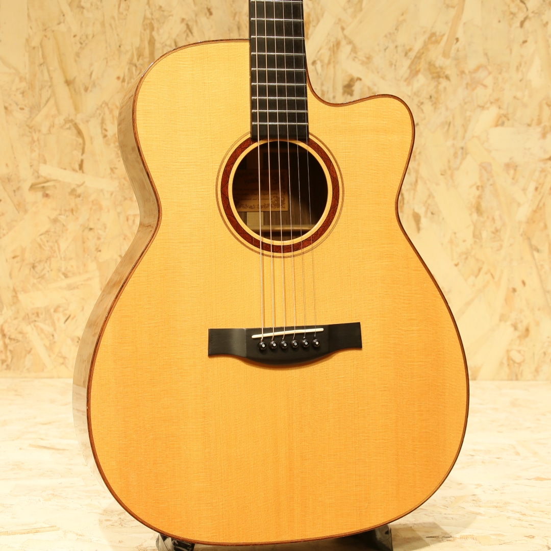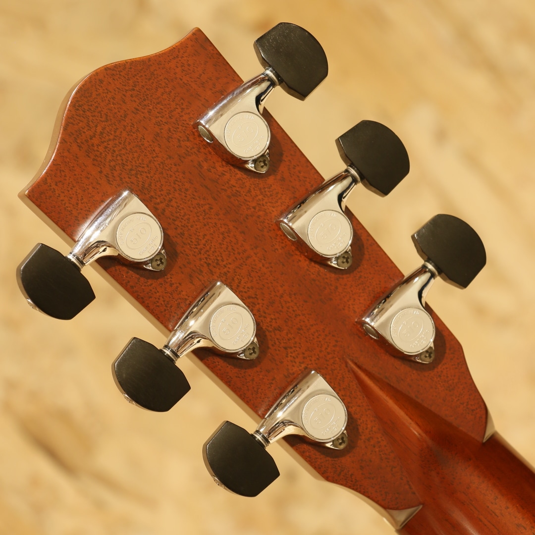 独自の工法と方法論で高品質のアコースティックギターを製作している長野県松本市の老舗ブランド"ヘッドウェイ"。多くのアコースティックギターファン、ミュージシャンたちに支持される日本製ギターを代表するブランドのひとつです。本器はフィンガーピッキングでの使用にも対応できるようにと設計された500番台シリーズ、OMタイプの”HC-501”。2008年製USED品。イングルマンスプルーストップ、インディアンローズウッドサイド&バック、マホガニーワンピースネック、エボニー指板&ブリッジ、ゴトー製510ゴールドペグ、スキャロップドXブレイシング。トラディショナルなスタイルを基本としているヘッドウェイ、ですがそこに囚われ過ぎずに柔軟な発想を持って設計を行っているモデルも数多くあります。近年ではSAKURAシリーズ等が例に挙げられますが、その前からの試みとしてはモダンなスタイルに対応できる音作りを目指した500番台。やや柔らかい音色、繊細なトーンを持ち味としたフィンガースタイルへ寄り添う設計を行っているシリーズです。数度のラインナップ見直しの際に一度はカタログ上から消えてしまった本シリーズですが、2019年にはまた復活し現代に適したサウンドを響かせています。本器はその駆け出しとも言える時期に製造された1本。イングルマンスプルースをトップに採用することで繊細なタッチにも対応できる反応性と柔らかく広がるサウンドを獲得。元々芯が強いヘッドウェイの音作りから硬さを和らげ、しなやかなサウンドを響かせてくれます。ブレイシングにもスキャロップを施すことで反応性を高め、よりふくよかな音色を生み出すように工夫。それ以前のガッチリとしたサウンドとは打って変わって柔軟なトーンを生み出す設計を随所に施されています。音の分離感や立ち上がり速度などはヘッドウェイらしく、解像度の高いスピーディなサウンド。設計時の想定としてフィンガースタイルにも対応できるという点からネックグリップもやや薄めで握りやすい形状。カッタウェイも搭載されているためポジションを問わない演奏性を与えられるなどサウンド面と演奏性の面と考慮されたギターです。サウンドホール上部1弦下あたりに5mm程の割れがございますが、接着&補強済みで修正跡もトップの木目に沿っておりますのでさほど目立ちません。ブリッジサドル溝の1弦側に2mmにも満たない割れ修正がございますが、こちらもうまく木目と同化しており目を凝らして分かる程度のものです。その他、ボディバインディングの当てキズやトップ面下部の塗装上の打痕などございますがどれも表面的なものでご使用に支障はございません。ネックコンディションも良好、高い演奏性を持ったオールマイティで高品質な国産ギターです。フィンガースタイルを想定しているとはいえストロークでも扱える優秀なモデル。オリジナルハードケースが付属します。