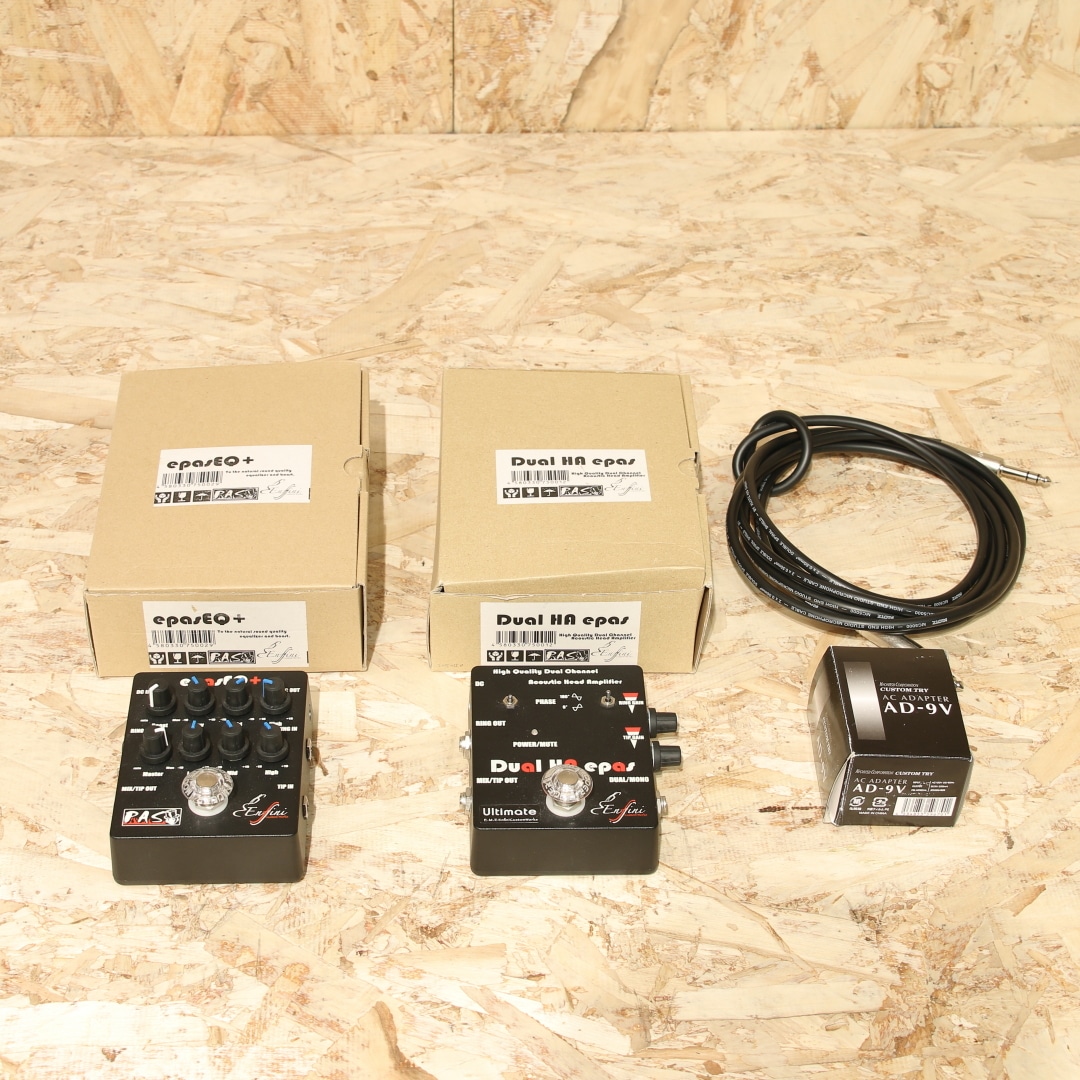 オリジナルハードケース、ピックアップシステム専用プリアンプ&EQが付属します。