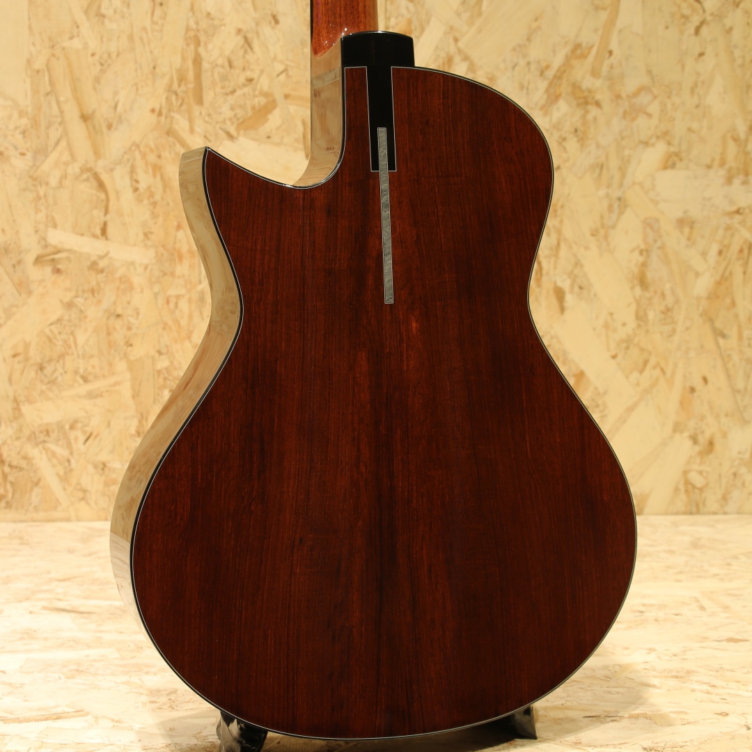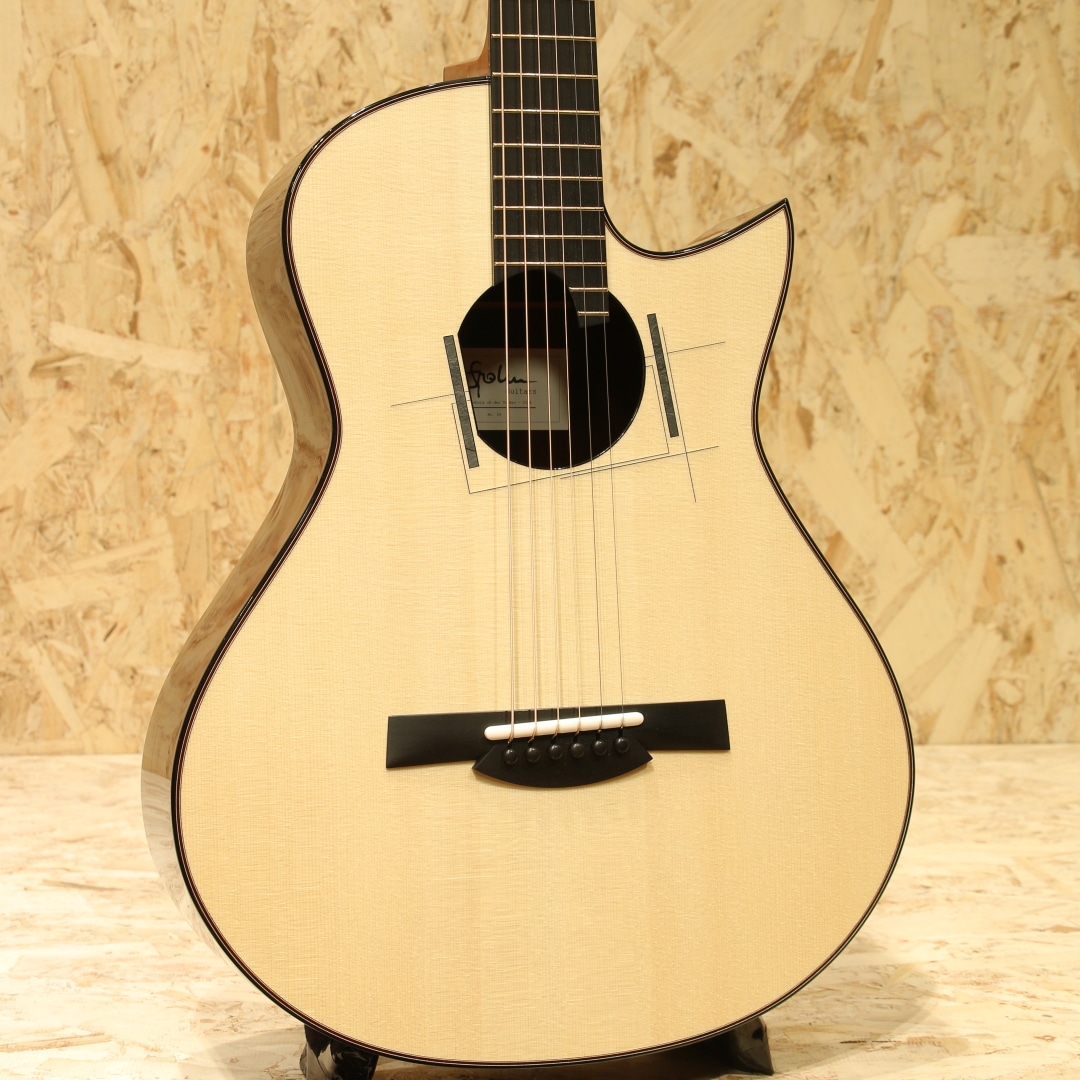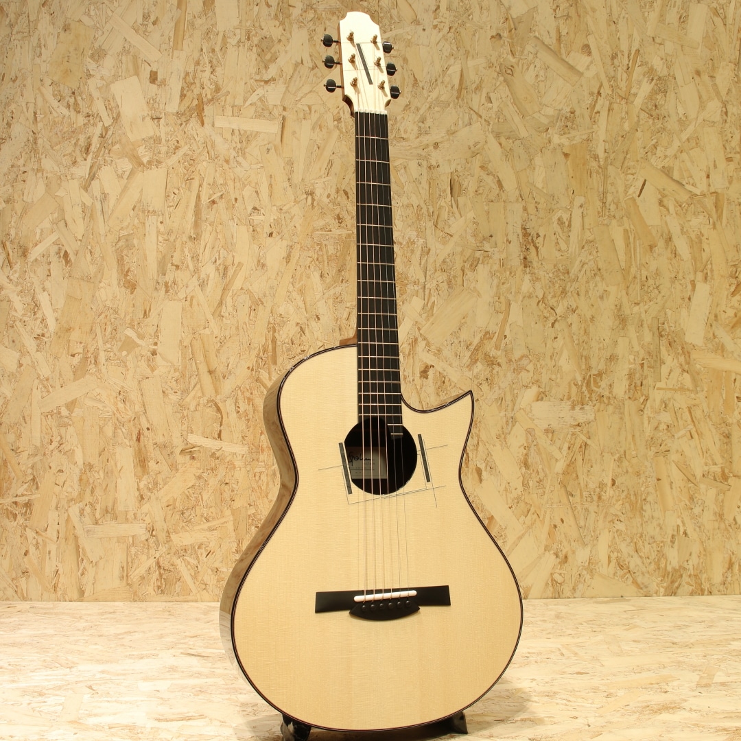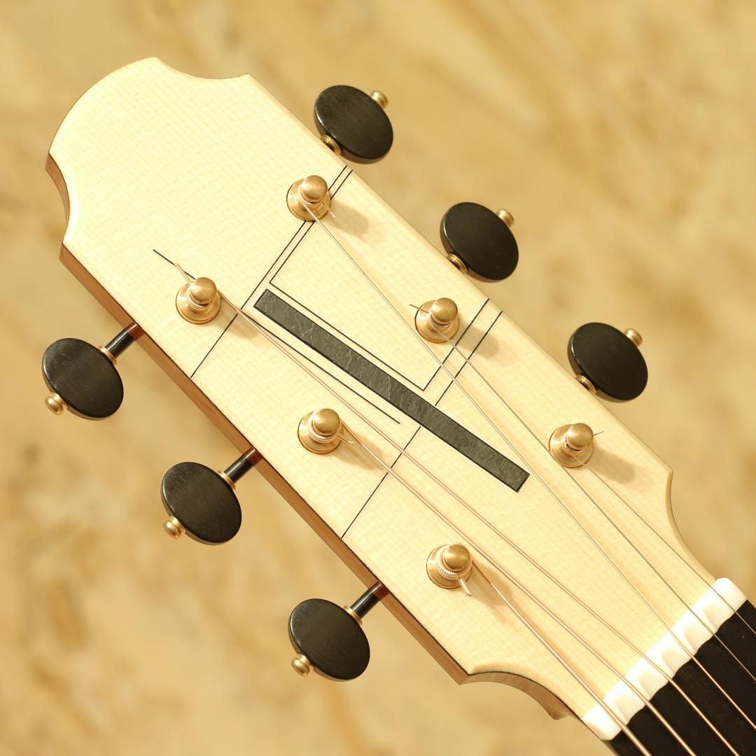 音色はクリアで艶やか、澄んだ清流を彷彿とさせる透明感があります。その中にも奥深さがあり、倍音が美しく響き、ギターそのものの美しさと調和します。 OMサイズのギターは、くびれが深くやや小ぶりな印象を与えるため、OOサイズを検討している方にもぜひおすすめしたい一品です。 Max Spohn氏は国内ではなかなかお目にかかれないルシアーです。この素晴らしいギターを、ぜひお手に取ってお試しください。