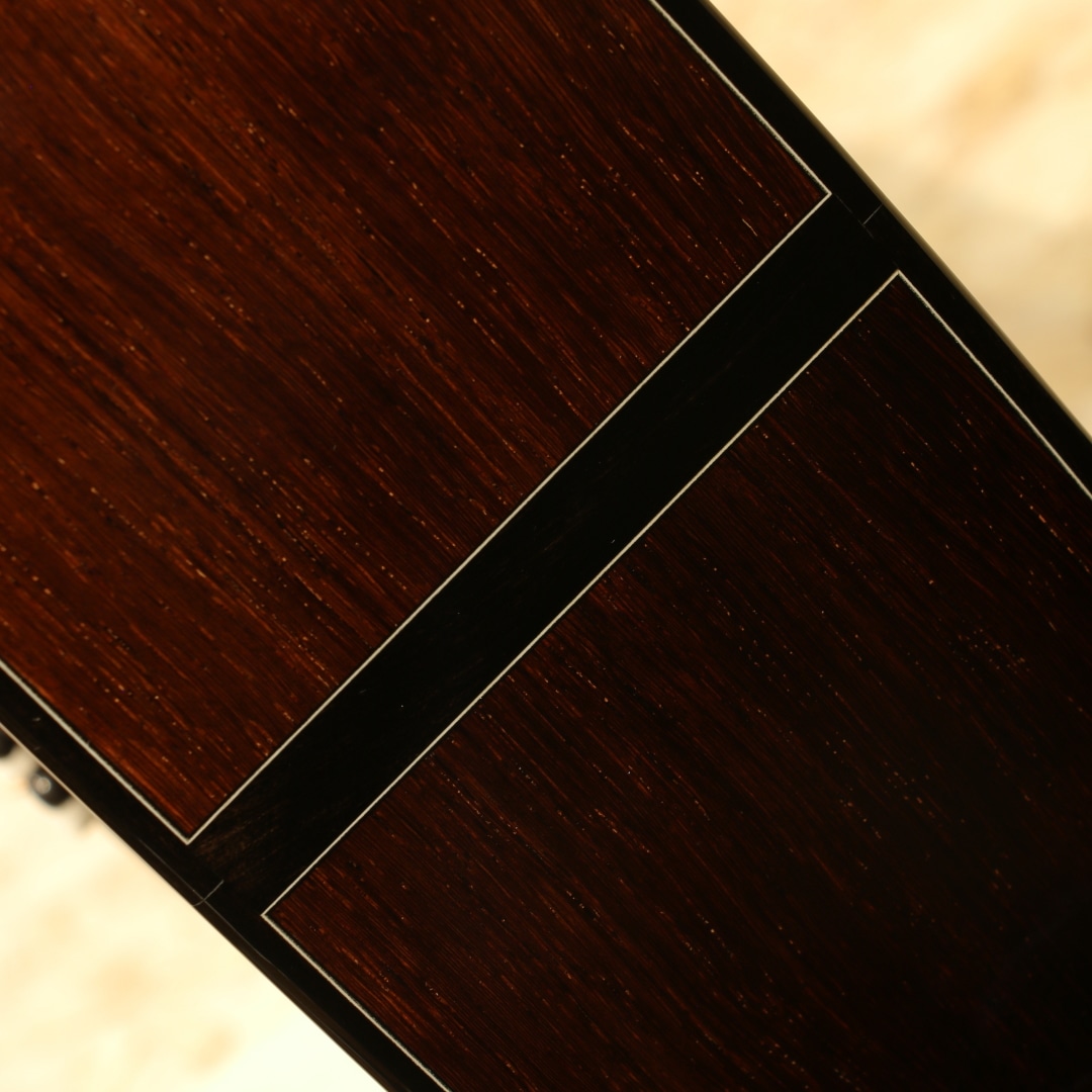 今回ご紹介する1本は、OMシェイプをベースに12Fジョイントで製作されたギターです。使用されている素材と仕様は以下の通りです: