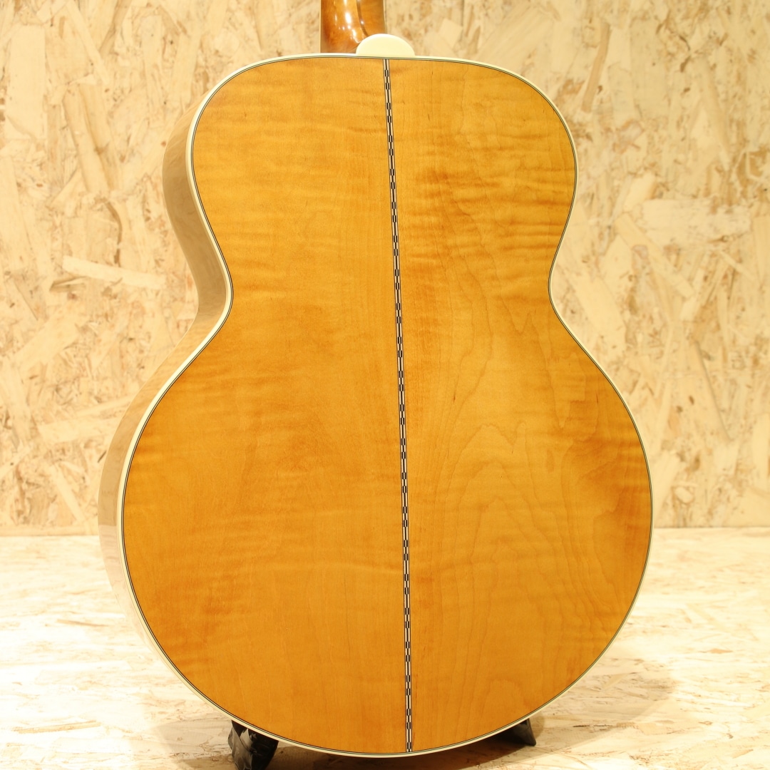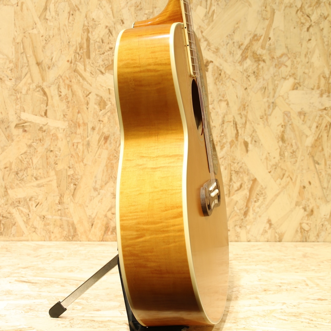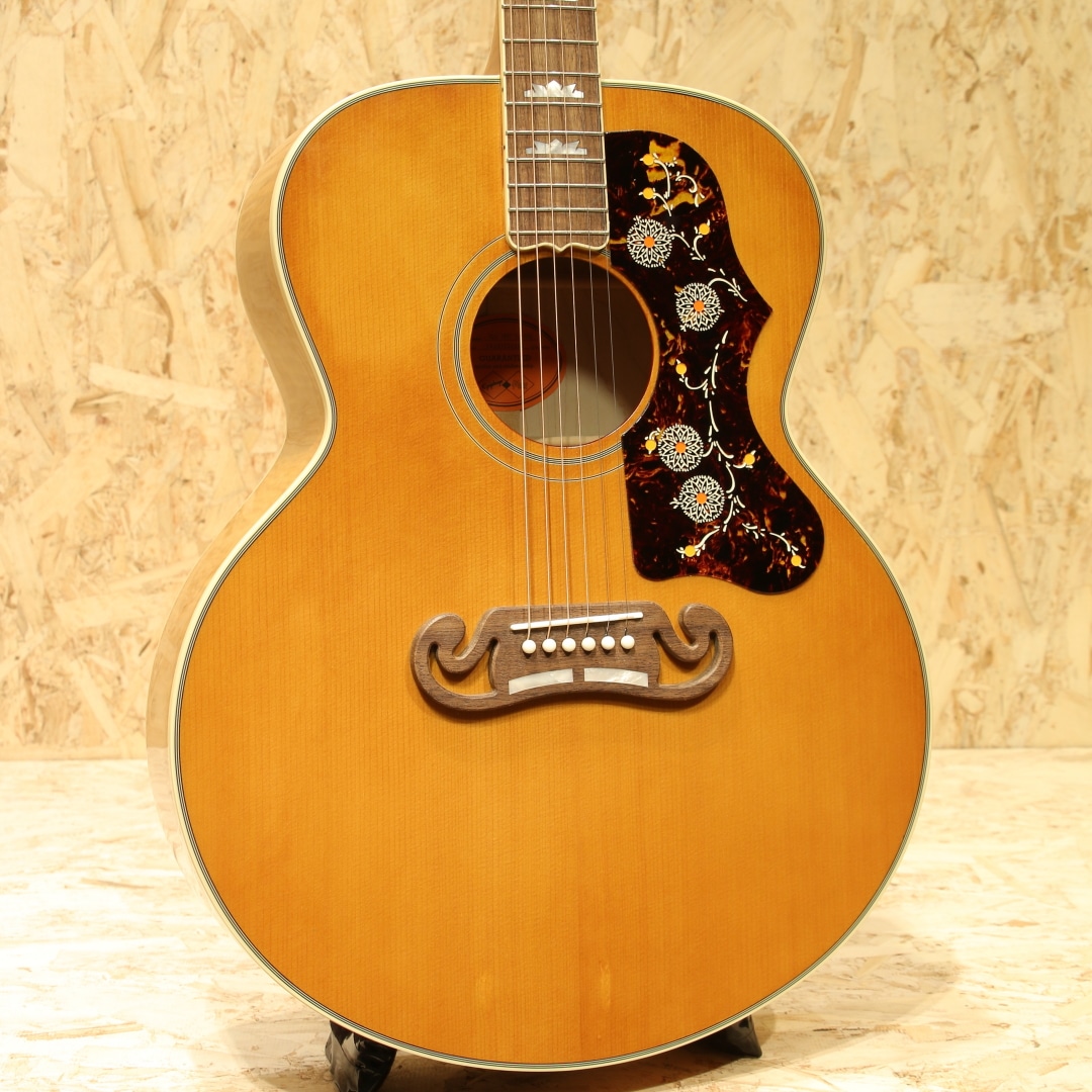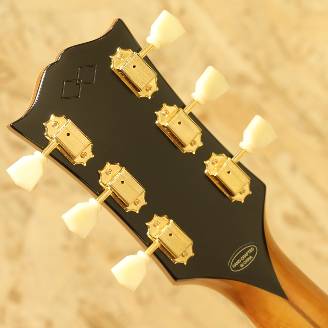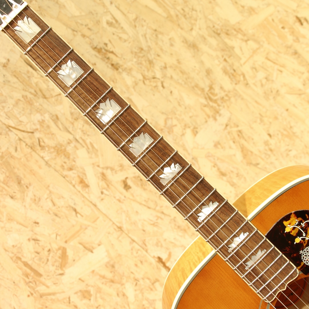 “キングオブフラットトップ”として知られるSJ-200は、カウボーイシンガーからカントリー、フォーク、ロック界のあらゆるジャンルのレジェンドまで様々なアーティスト達に愛用されてきました。本器は伝説的な1957年製ギブソンSJ-200を再現した"1957 SJ-200"。サーマリーエイジドシトカスプルーストップ、フィギャードメイプルサイド&バック、ウォルナットセンターライン入りフレイムメイプルネック、ローレル指板&オープンムスタッシュブリッジ、マザーオブパールクラウン指板インレイ、J-200スタイルセルピックガード、ヘッドストックはギブソンのオープンブック・プロファイルを採用しヘッド裏にはInspired by Gibson Custom のダブルダイヤモンド・ロゴと本シリーズならではの仕上がりとなっています。やや丸みの強いCシェイプネックで握った際の安定感は抜群です。搭載のエレメントVTCピックアップは1ボリューム/1トーン仕様。シンプルなコントローラーは操作に迷う事も少なく、ナチュラルでパワフルなサウンドを出力できます。キングの称号を持つ17インチサイズのスーパージャンボ。その名を体現すかのような迫力と音圧、キレのあるトーンで存在感のあるバッキングサウンドを奏でます。初めての1本にだけでなく、サブギターや宅録用ギターなど、様々な用途で活躍の見込める"Inspired by Gibson Custom"シリーズ、是非お手元でお楽しみ下さいませ。オリジナルハードケースが付属します。