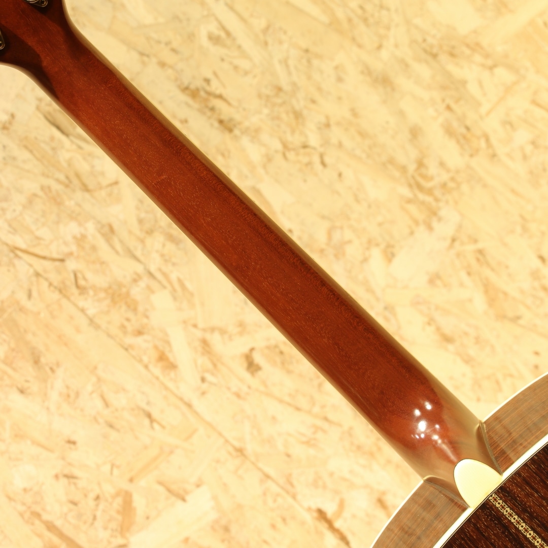 国内外問わず使用アーティストも多い、日本を代表するブランド”YAMAHA”。ダイナミックギターから始まりFG、更には豪華なを意味するL(Luxury)シリーズが最高機種として1974年に発売されました。その中でも発売開始の翌年に生まれたL四天王はファン憧れの最高機種、ヤマハアコギのレジェンドとして今でも非常に高い人気を誇っています。本器は四天王L53の系譜、現在のLL36の前身に当たる当時のフラッグシップ”LL-33J”。ボディ内革ラベル欠損の為詳細な年式は特定できませんが、製造開始の1994年から製造終了の2004年までの期間に製造されたUSED品です。高級スプルーストップ、ローズウッドサイド&バック、マホガニー1ピースネック、エボニー指板&ブリッジ、パールオリジナル指板インレイ、ブラックピックガード、アバロンロゼッタ&トリム、独自のスキャロップド・Xブレイシング、ボディ全面高級ラッカー仕上げ。1975年に四天王L53が生まれ80年のモデルチェンジを経ることで前期仕様と後期仕様が存在。その後LL53Dへと更にモデルチェンジされ、そこから分岐する形で1994年に本モデルLL-33Jが誕生しました。後継機種であるLL36が発売される2004年まで製造が行われ、惜しくも製造が終了してしまったモデルです。当時のレギュラーラインフラッグシップ機、Lシリーズが誕生してから20年という節目にこれまでのノウハウを投入され製作が開始されました。Xブレイシングの交点が左右非対称の構造、スキャロップの施されたブレイシング、ネックの接合部をL字型にしたLブロック等の独自の構造を採用しています。「低音は低音らしく、高音は高音らしく、全体的に鳴るボリュームのある音を」を基本として考えられた設計。現在とは違った設計故にまた違う個性、魅力を持ったギターです。トップ材には現在のイングルマンスプルースとは異なり高級スプルースを使用し目の詰まった材を使用。比較すると芯の強いサウンドの傾向があり、より明るくハキハキとしたクリアなサウンドを持った材です。古くからの芯の強く凛とした伸びやかなサウンドと現在の柔らかく空気感の強いサウンドの中間的な響きを感じられる音色。スキャロップの効果でタッチに対する反応性もボリューム感も獲得しており、繊細な演奏にも対応しやすくなっています。やや柔らかさを感じ厚みのある低音域、磨かれたような煌びやかさの高音域、新旧の交わるサウンド故に両者の良さを掛け合わせたような独自の魅力を持ったギターと言えるでしょう。上述の通りボディ内革ラベルが欠損、ペグの経年によるくすみ等が見られます。その点を除くとボディ表面に僅かな当てキズや細やかな擦りキズと細やかなウェザーチェック等が見られるモノの、20-30年程を経たであろう年代を感じさせない程のキレイな状態をキープしている本器。ネック周りの演奏性も良好で実用度の高いプレイヤーズコンディションの1本です。脈々と受け継がれているLシリーズ、過去と現在を繋ぐ過程を垣間見ることが出来る1本です。メイド・イン・ジャパン最高峰のアコースティックギターを是非ご体感下さい。