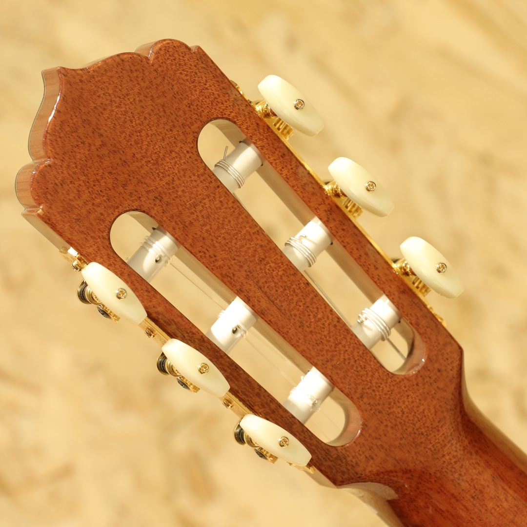 1962年より福岡久留米にてギター製造を行う老舗純国産ギターブランド、アストリアスギター。現在もベテランを中心とした約15名のスタッフで運営しています。本器は弊社スタッフが久留米の工房にて現地材選定を行ったカスタムオーダー品。同ブランドの人気機種"Solo Classico"をベースに材木などをハンドピックし厳選された部材で作り上げられた1本です。目幅が整ったキメ細やかな艶肌美しいジャーマンスプルーストップ、裏板のみ単板仕様(オプション)のローズウッドサイド&バック、マホガニーネック、エボニー指板、ローズウッドブリッジ、ゴトー製ゴールドペグ、メキシコ貝&ウッドロゼッタ、ローズウッドバインディング、49mmナット幅(オプション)、630mmスケール、L.R.Baggs ANTHEM SL Classical(オプション)、ウレタン仕上げ。落ち着いた装飾の中に映える美しいメキシコ貝のロゼッタも魅力の1つです。ハイポジションでのプレイアビリティを向上させるやや深めのベネチアンカッタウェイを施したコンパクトで抱えやすいサイズのボディを採用。さらには通常より1mm狭いナット幅でエレガットを初めて手にするスチール弦アコースティックギターやエレキギターのプレイヤーにも扱いやすい設計になっています。熟練の日本職人の技により、コンパクトなサイズながらも立ち上がりの速い豊かな生音、アストリアスらしいクリアな響きが得られるモデルに仕上げられています。ピックアップシステムにはL.R.Baggs社製Anthem SL Classicピックアップを搭載。アンダーサドルピエゾ+トゥルーマイクのシステムで生鳴りに近い空気感のあるサウンドが得られます。コントローラー部分のマイクゲイン調節で低音域の音量バランスも細かく調整可能な為、バンド編成によってサウンドキャラクターのメイキングが手元で行えます。アコギやエレキからの持ち替えにはもちろん、気軽にナイロン弦を弾きたいけどクオリティを求められる方、ステージのメインとして、はたまた本格的なサブギターとしても多ジャンルでの活躍が見込めるハイクオリティエレガット!是非お手元でご体感ください。持ち運びや保管に適したスーパーライトケースが付属します。
