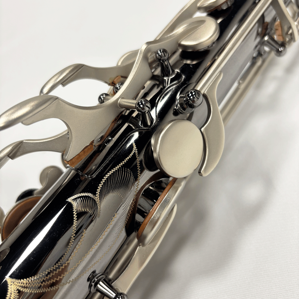スタンダードシリーズよりも大きなベルを採用し、パワフルなサウンドが特徴の「POWER BELL」シリーズ。 高音域にはパワーを持たせ、温かみのある低音域になるように設計。様々なフィニッシュのモデルがあり奏者のスタイルに合わせてお選びいただけます。 E♭/ 管体:ブラックニッケルメッキ、キイ:ゴールドラッカー仕上げ 【付属品】ケース、オリジナルマウスピース(リガチャー・キャップ付)、オリジナルストラップ、オリジナルコルクグリス、サンプルリード(バンドレン)