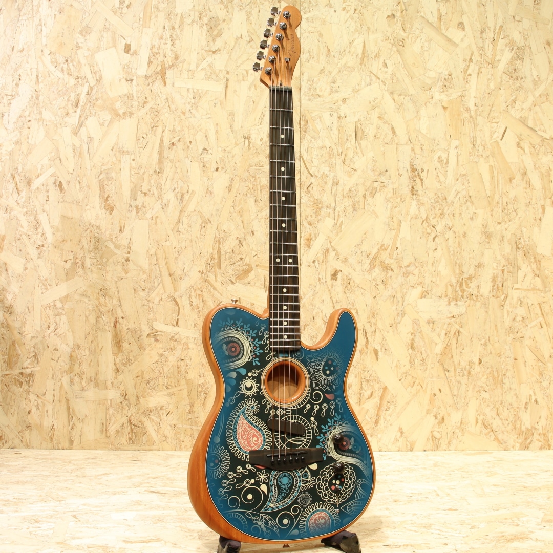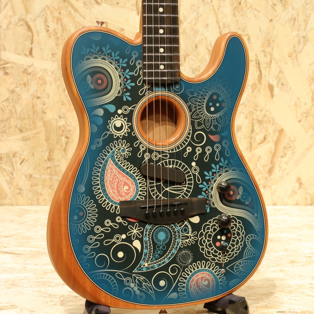 "American Acoustasonic Telecasterは常に進化を 続けるフェンダーの精神を体現した楽器です。Fishmanと 共同開発した強力なサウンドプロセッサーを内蔵し、スタジ オワーク/ライブパフォーマンスの両方において、幅広いア コースティックギターのトーンとエレクトリックギターのトー ンを融合した、全く新しいユニークな表現を実現します。本器はAcoustasonic Showcase Storeのみ発売されたトップ材にBlue Paisley柄を採用した数量限定モデルの2022年製使用感極薄USED品。