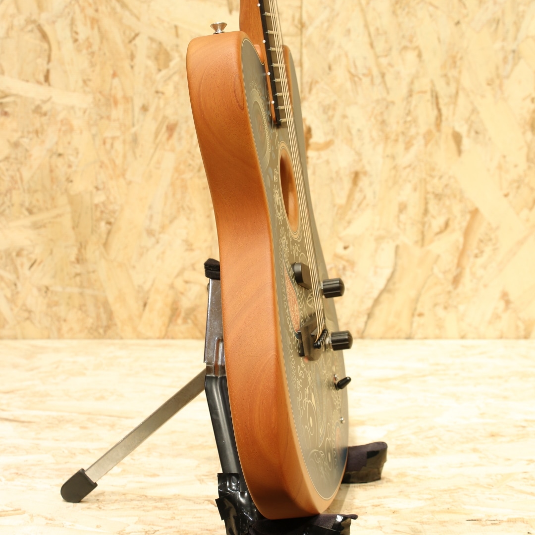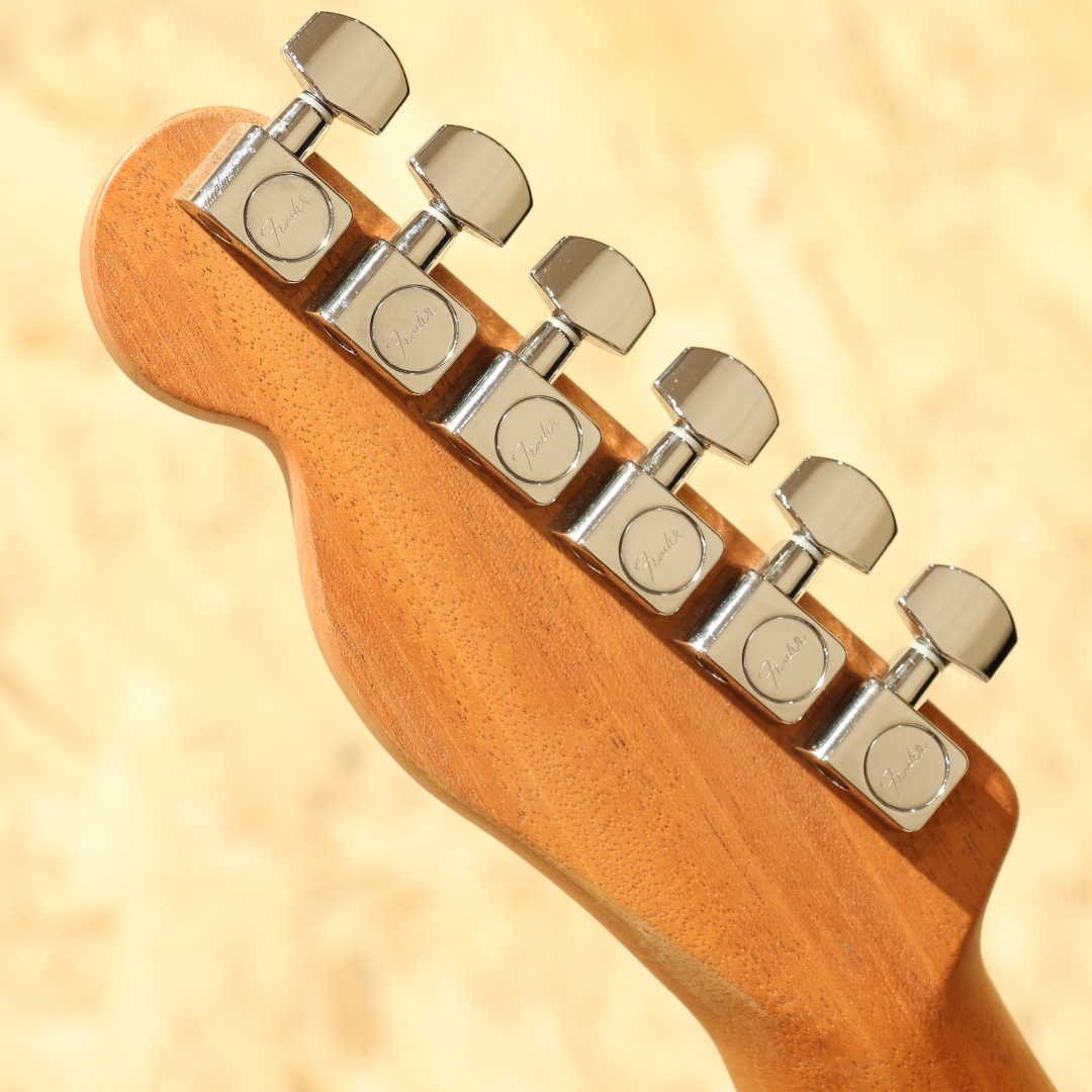 テレキャスターの形をしながらも重さは約2.7kgとエレキギターと比べると非常に軽量なボディ。ボディをくりぬいたホロウボディ構造故の軽量さですが、生のアコースティックギターに比べてハウリング耐性が高くステージでのパフォーマンスに特に強い仕様と言えるボディです。エレキを普段演奏される方にはアコギの厚みあるボディに違和感を覚えることもありますが、ボディの厚みがエレキギター並みという点も非常に嬉しい点。Fenderが作るギターであるためエレキギターでお馴染みの薄めのCネックシェイプ、エレキギターからの持ち替えにも違和感のないネック。エレキ弾きが探していた違和感の少ない欲張り仕様、エレキのようなアコギを実現しています。