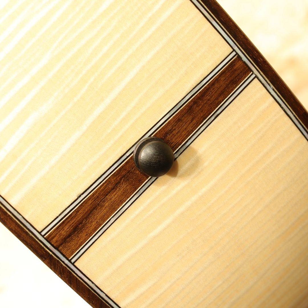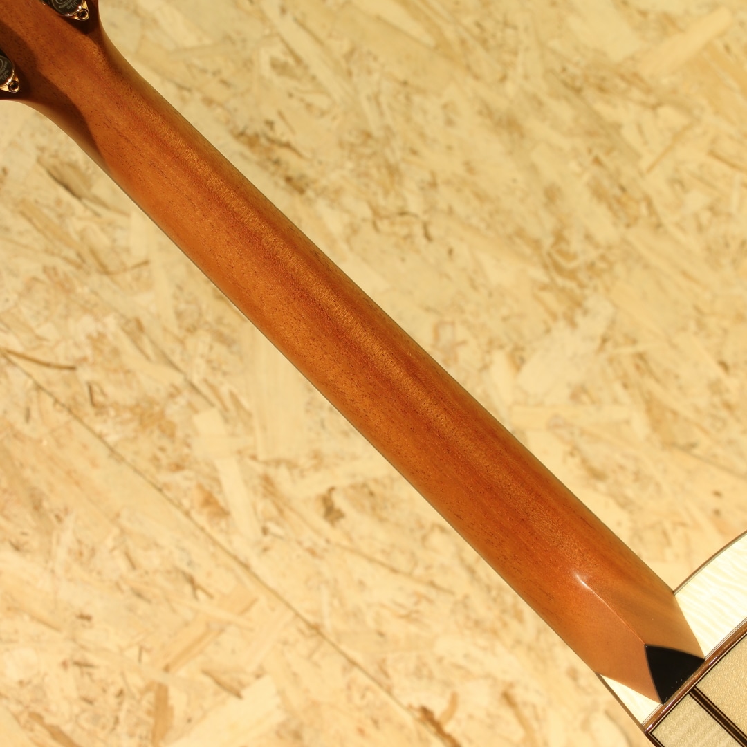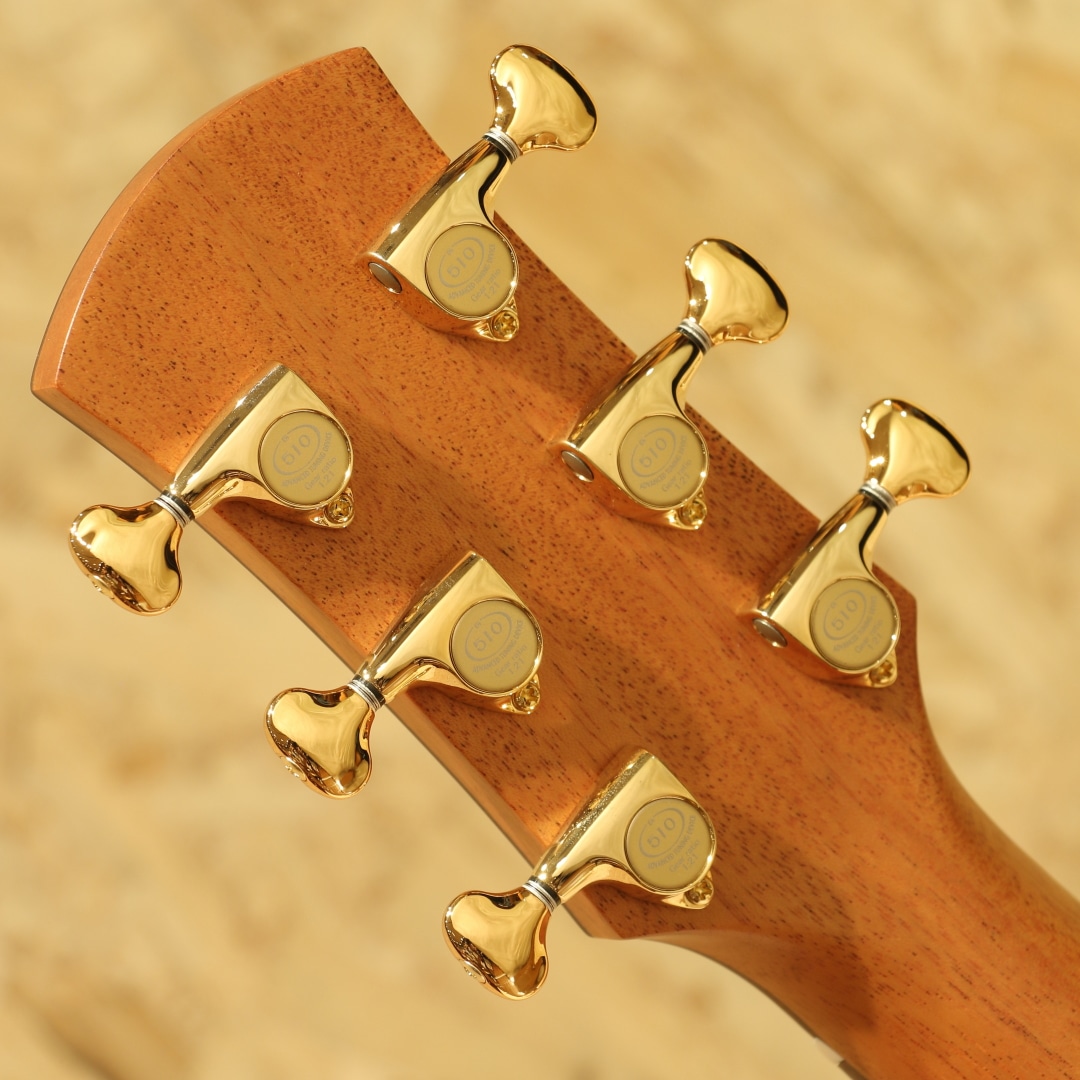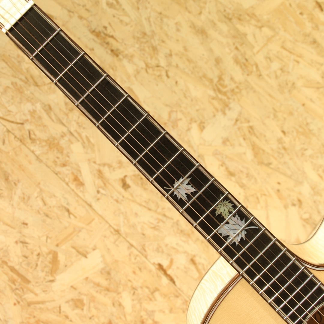 高級なオールハンドメイドギターでしか味わうことができなかった繊細なトーンをリーズナブルに。ベトナムで製造するブランド、”エアーズ”。完全手工にて生産されるハイコストパフォーマンスなブランドです。本器は某ショップオーダーにて製作されたカスタム品、オリジナルスモールジャンボシェイプモデル、”SSJ06P-C 3.0 NH-Custom”2020年代製USED品です。木肌の美しい5Aグレードアルパインスプルーストップ、細かく入った杢に魅了される5Aグレードフレイムメイプルサイド&バック、マホガニー1Pネック、エボニー指板&ブリッジ、Gotoh510ロトマチックゴールドペグ、アバロンロゼッタ、アフリカンオヴァンコールバインディング&アバロントリム、スキャロップドXブレイシング。エアーズは厳選された材料を使用し、ハンドメイドで製作されています。本器はOTS(オーバートーンシステム)が採用された1本、ver3.0に当たる仕様。構造倍音と銘打ったシステムで基音の上に乗る倍音成分を多くし、複雑で広がりのある倍音の多いサウンドを狙っています。同時に音の揺らぎをも生み出して心地よさや美しさを感じられるようなサウンドを得やすい構造。ネック自体は薄めに成形されており、演奏性高く複雑なフレーズでも対応の出来るシェイプ。カッタウェイ搭載ですので、ソロギターなどフィンガーでの細やかなフレーズの多いスタイルはもちろん、ハイポジションを多用するストロークでのフィンガリングでもスムーズな演奏が可能です。ボディ形状はSJ(Small Jumbo)。OMサイズより多くの空気感を含んだトーン、広いレンジ感で濃厚な低音成分を体感できるボディシェイプです。ボディにはアームレストも搭載されており、演奏の際のストレスも軽減し抱えやすい仕様です。スプルースの中でもしなやかで豊かな弾力性を持つアルパインスプルース、タッチレスポンスにも優れ繊細な音色が持ち味、心地よい倍音を含みながら上品なサウンドを生み出します。キメ細かく配されたフレイム杢の美しい5Aグレードのフレイムメイプルはルックスの絢爛さもちろんですが、奏でられる華やかでメロウなトーンも魅力の1つです。フィンガースタイルとの相性は抜群で、細かなタッチニュアンスなどもしっかりと表現できるギターです。特筆するような使用感は無く、ゴールドパーツも輝きを保ったままです。ネック含めたコンディションも良好、演奏性の高い状態を保った1本です。手工ギターや高級ギターのようなニュアンスを持ち、拘りの詰め込まれたアジアメイドのハンドメイドギター。そのコスパの良さを是非お手元でご体感下さい。オリジナルハードケースが付属します。