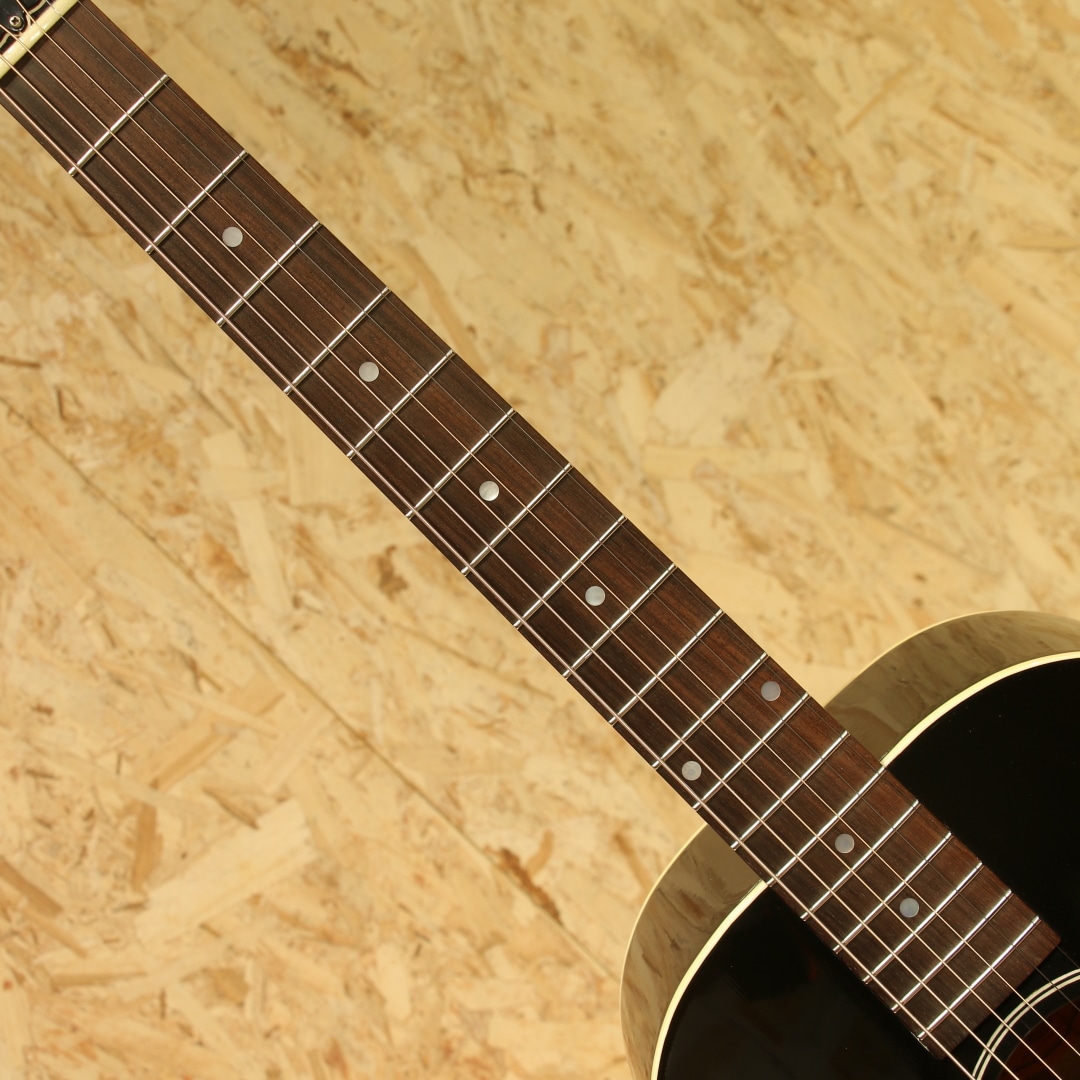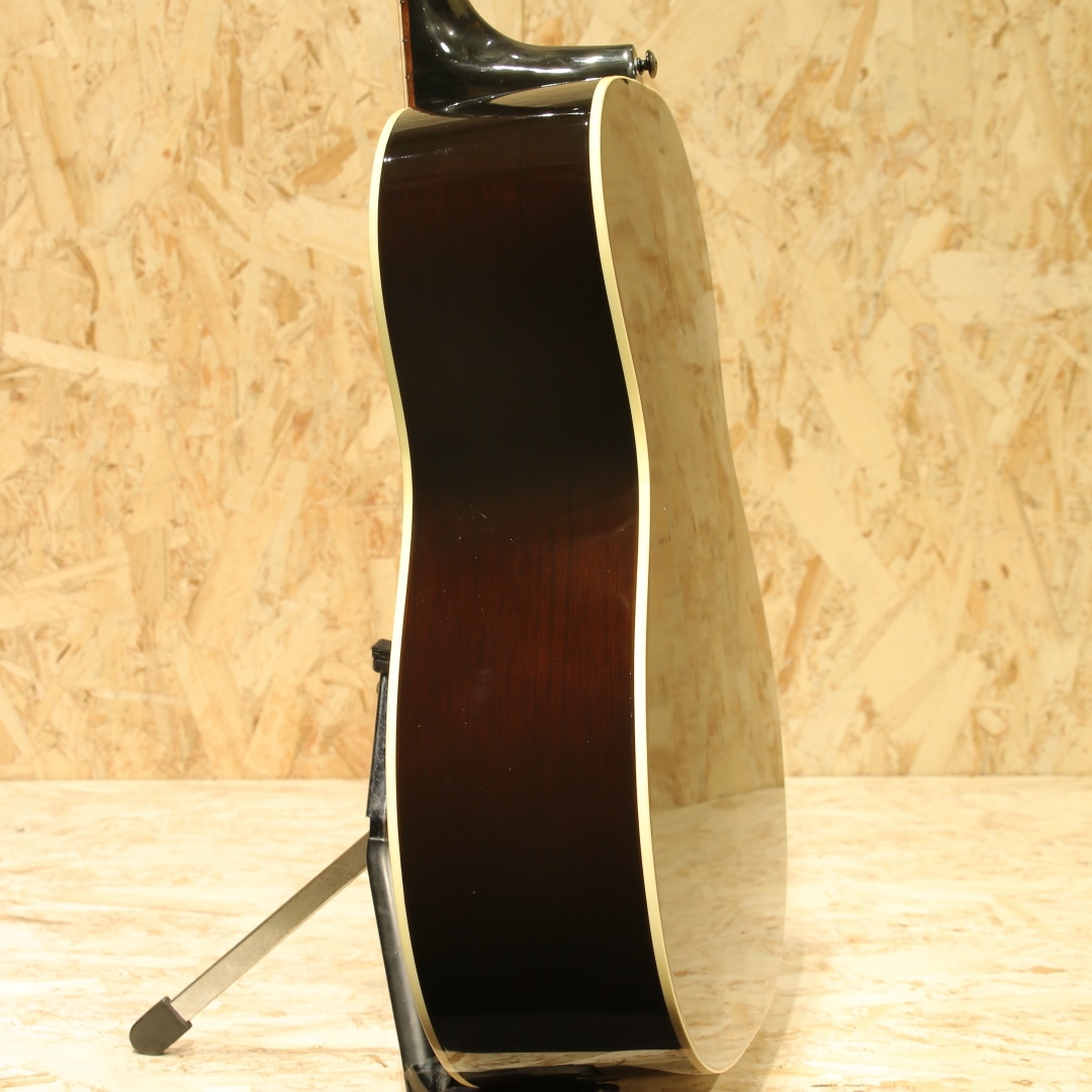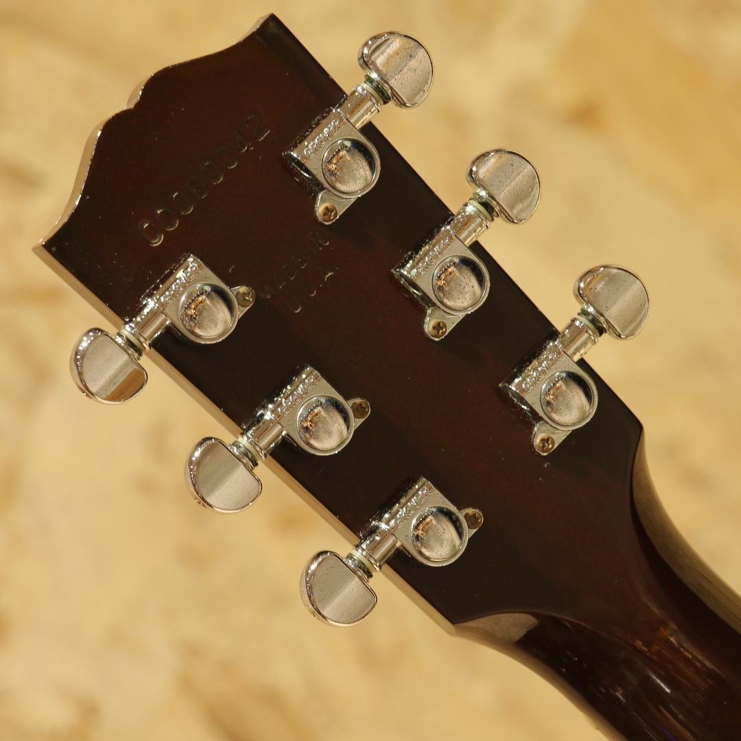 1932年に発表された"L-00"。徐々に仕様を変えながら、後にLG-2、B-25へと続いて行くモデルで、渋い外観とブルージーなサウンドが人気のギブソンスモールギターを代表する銘器です。モンタナ製としては1991年にリイントロデュースされ現在に至るまでギブソンの数少ないスモールモデルの"顔"として人気を誇っています。現代においてもその人気は衰えず、取り回しの良さ、豊かなボリュームなど、優れた特性を持つギターとして世界中で愛されています。本器は2000年製USED品、深胴ボディを採用したこの時期特有のスペック個体です。スプルーストップ、マホガニーサイド&バック、マホガニーネック、ローズウッド指板&レクタングルブリッジ、ミニグローバーロトマチックペグ、スクリプトヘッドロゴ、ネックヒールキャップにストラップピン搭載。スモールサイズでありつつも深胴なボディが生み出す味わい深いトーン。ブルースは勿論、弾き語りなどでも抜群の相性を与えられています。ストローク時にはフルボディにも劣らない大音量、スモールボディの軽快さも持ち合わせ多彩なジャンルで活躍が期待できます。しっぽり爪弾く渋い雰囲気にもぴったりです。ヘッド表面やボディ表面に極々僅かな当てキズ、ボディバックのバックルキズ等の僅かな使用感こそ見られますが、20年以上経っていることを考えると非常にキレイな状態を保たれた極上USED品。ネック周りの状態も屋いままに保たれ、サドルでの調整幅も残し、これからも活躍してくれそうなブルージーな雰囲気の1本です。スモールサイズならではのコンパクトな抱えやすさ。このあたりのモデルは探されている方も多いので、是非お早めにご検討ください。