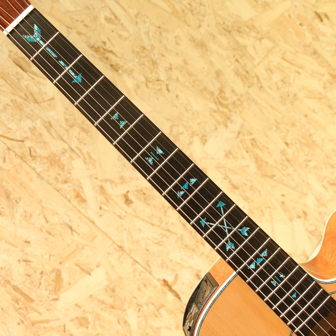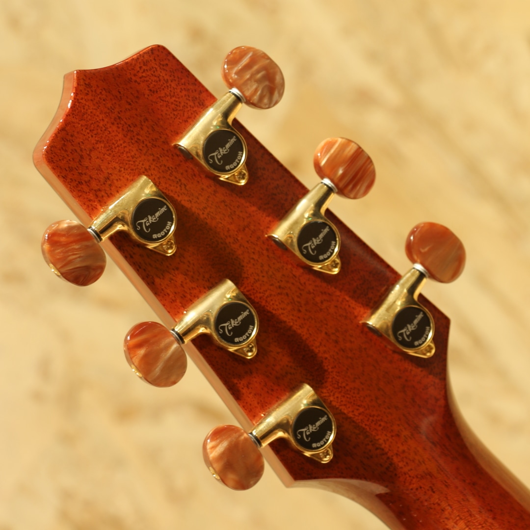 岐阜県中津川市にて製造する国内屈指のワールドワイドなエレアコメーカー"タカミネ"。アメリカや日本をはじめとする世界各国の著名ミュージシャンが愛用する純国産のブランドです。 本器は毎年限定にて販売される人気のリミテッドシリーズ、2023年度の限定モデルネイティブアメリカンのデザインを取り入れ人気を博したサンタフェシリーズの30周年を記念した”LTD2023 SANTA FE 30th Anniversary”の新品同様の中古品が入荷しました!シダートップ、シルキーオークサイド&バック、マホガニーネック、エボニー指板&ブリッジ、ゴトー製ゴールドペグ。指板インレイにはインディアンの平和・友好を示す証"ブロークンアロー/クロスアロー"、その他、ヘッドロゴやESF-93からリファインされたロゼッタインレイ、パーフリングをターコイズで統一し気品のある美しいルックスに仕上がっています。ナット幅42.5mmの細めのネックで握り込みスタイルも容易にグリップでき、手の小さな方にも相性のよいネックシェイプです。タカミネ初期を象徴するブラウンプリアンプを基にした”CTF-2N”プリアンプ搭載。初期のブラウンプリアンプを分解、再組立てから始まり現在でも入手できる部品の選定や回路の見直し等、当時の太く切れ味のあるサウンドを再現。プリアンプ部のデザインも当時のイメージを基にしたルックスです。モダンなアプローチも加わりチューナー内蔵、ノッチフィルター搭載とシンプルかつ現場でより扱いやすい仕様です。統一感のある凛とした佇まいからなるふくよかで明るい音色。タカミネらしい歯切れの良さから柔らかなやや甘みをもったトーンを奏でます。使用感はほぼ見られず、新品時の商品タグや新品時付属していたネイティブアメリカンデザインのオリジナルストラップも未開封のまま残っています。当時、惜しくも買い逃された方は、是非この機会をお見逃しなく!ダークグレーのロゴ入りオリジナルセミハードケースが付属します。