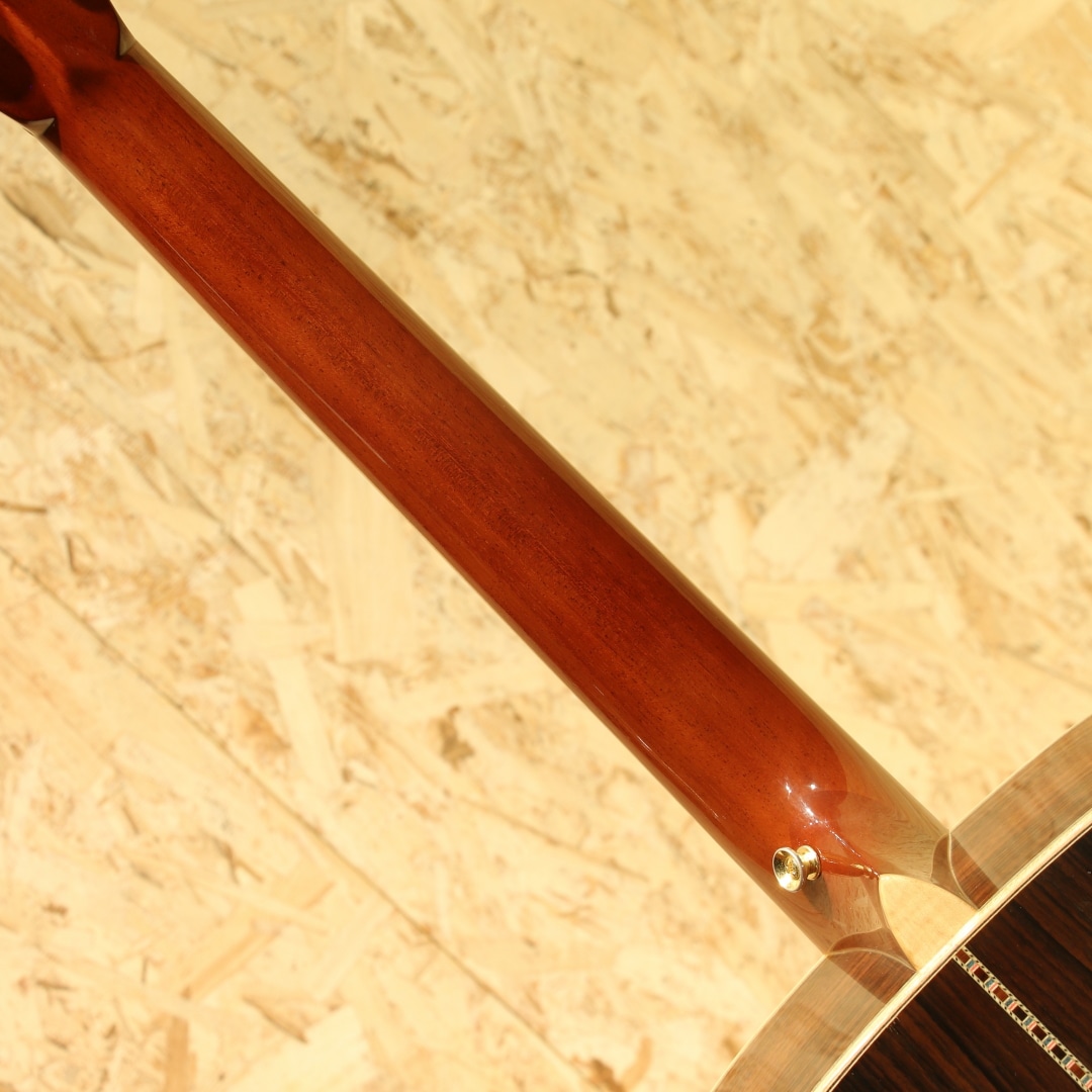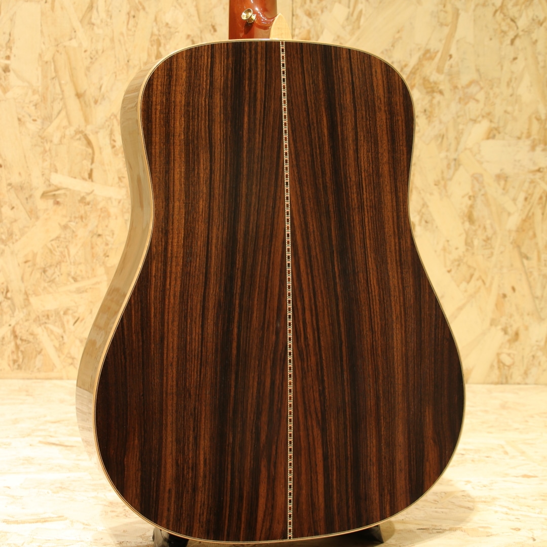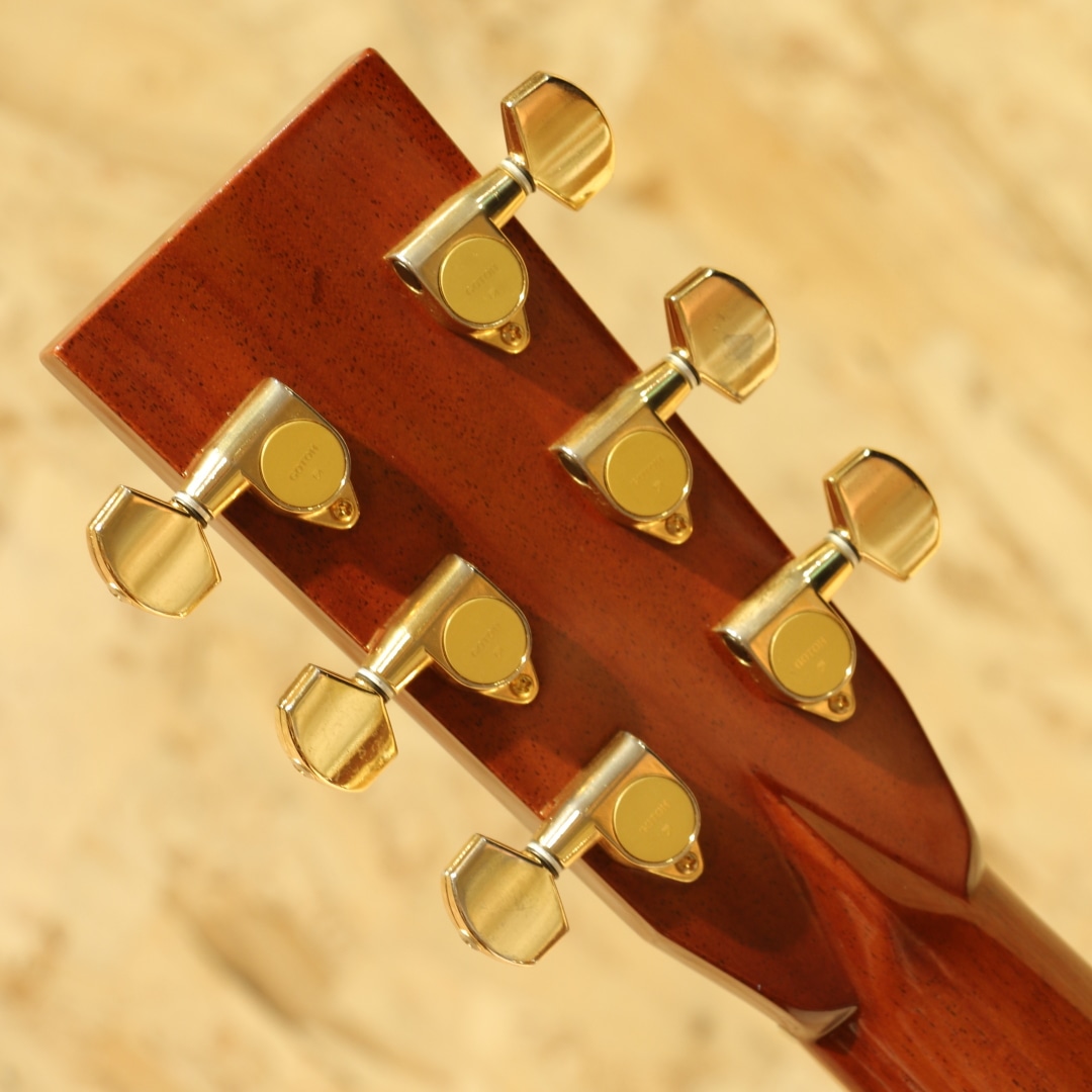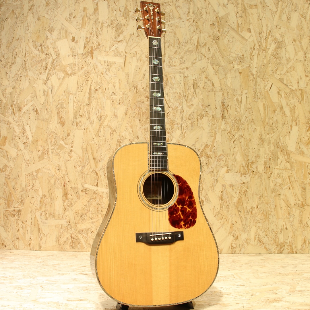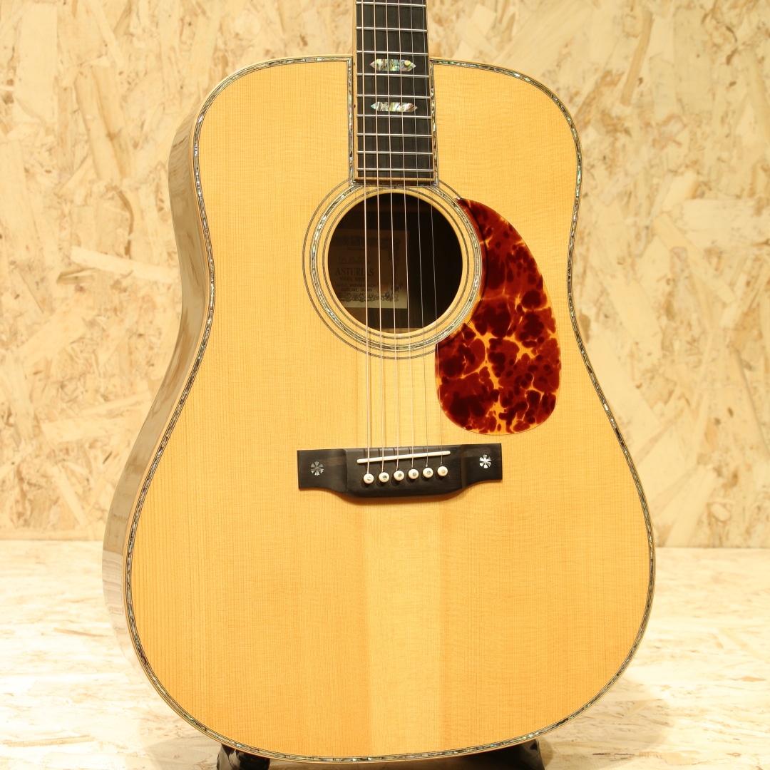 1962年より福岡久留米にてギター製造を行う老舗純国産ギターブランド、アストリアスギター。現在もベテランを中心とした約15名のスタッフで運営しています。本器は定番ドレッドボディの年間限定生産モデル"D.EMBLEM"、2002年製USED品。ジャーマンスプルーストップ、ローズウッドサイド&バック、マホガニーネック、エボニー指板&ブリッジ、ゴトー製ゴールドペグ、アバロントーチインレイ・ヘキサゴン指板インレイ、アバロンパーフリング&ロゼッタ、メイプルバインディング、トーティスピックガード、ノンスキャロップドXブレーシング、オールラッカー仕上げ、ネックヒールストラップピン搭載。指板からヘッド、ボディに至るまで貝細工を散りばめられたゴージャスなルックスは上位機種に劣らない華やかさを持ちます。アストリアスらしい繊細で華麗なトーン、Dサイズが持つ深みのある中低音の相性は良く、サウンドバランスに優れた本器。クリアで伸びやかな高音域はルックスに劣らない絢爛なサウンドを奏でます。弦の輪郭や解像度の高さから細やかなフレーズやニュアンスの表現にも優れています。力強いストロークにもしっかりと対応、明瞭な音像でぼやけることもなく安定したストロークサウンドを奏でます。サイドボトムの打痕や擦り傷など使用感は見られますが表面上のもので使用に影響はありません。ネックコンディションは良好、標準的なセッティングで演奏性も良好です。年間限られた数のみの生産の為、中古市場でも出回りの少ない機種。弊店としても久しぶりの中古品の入荷となります。お手持ちのギターのグレードアップをご検討中の方は是非お試しください。汎用ハードケースが付属します。