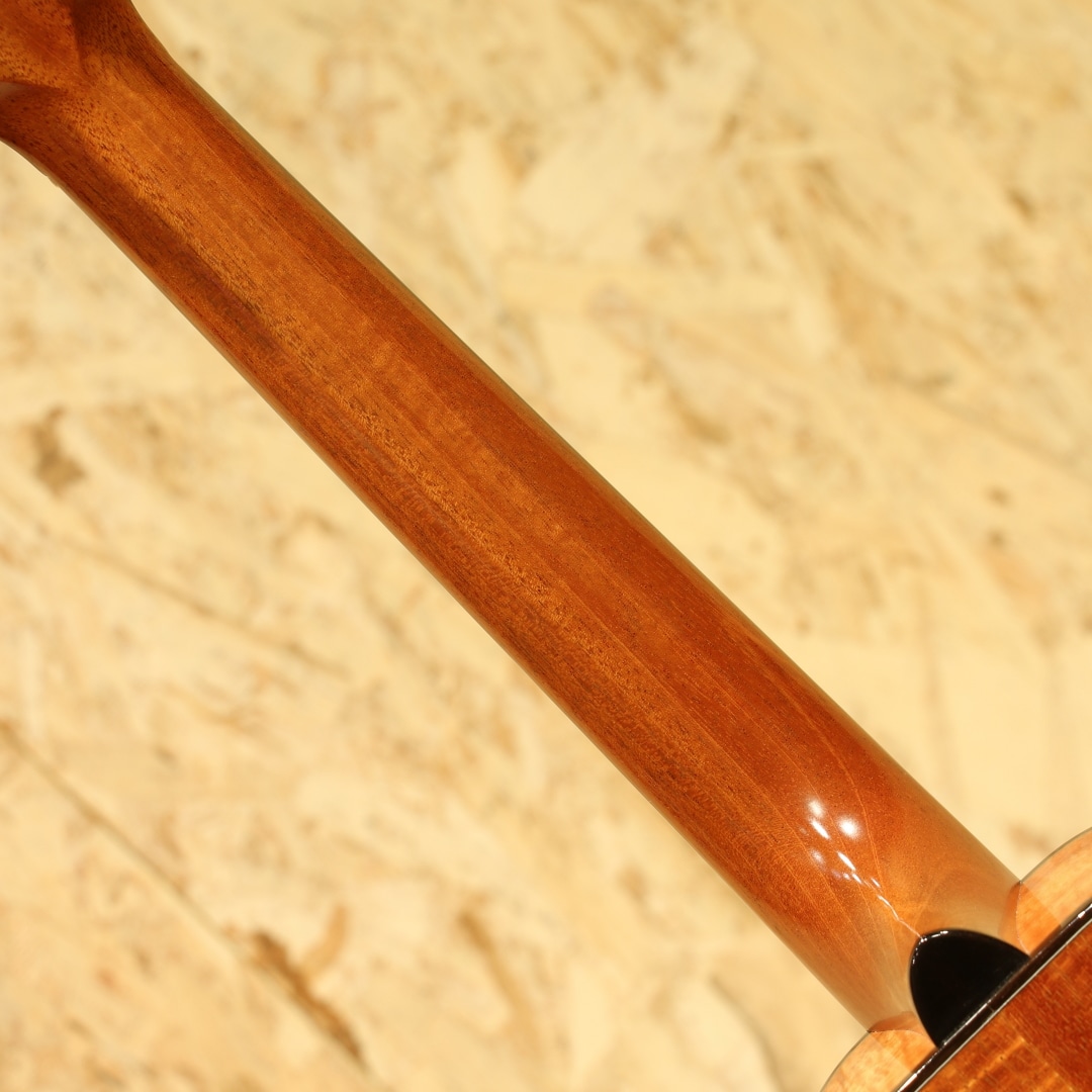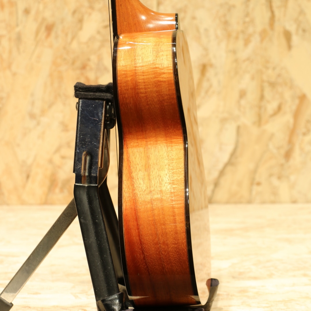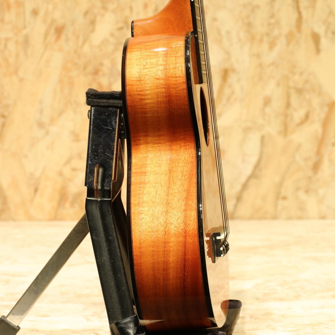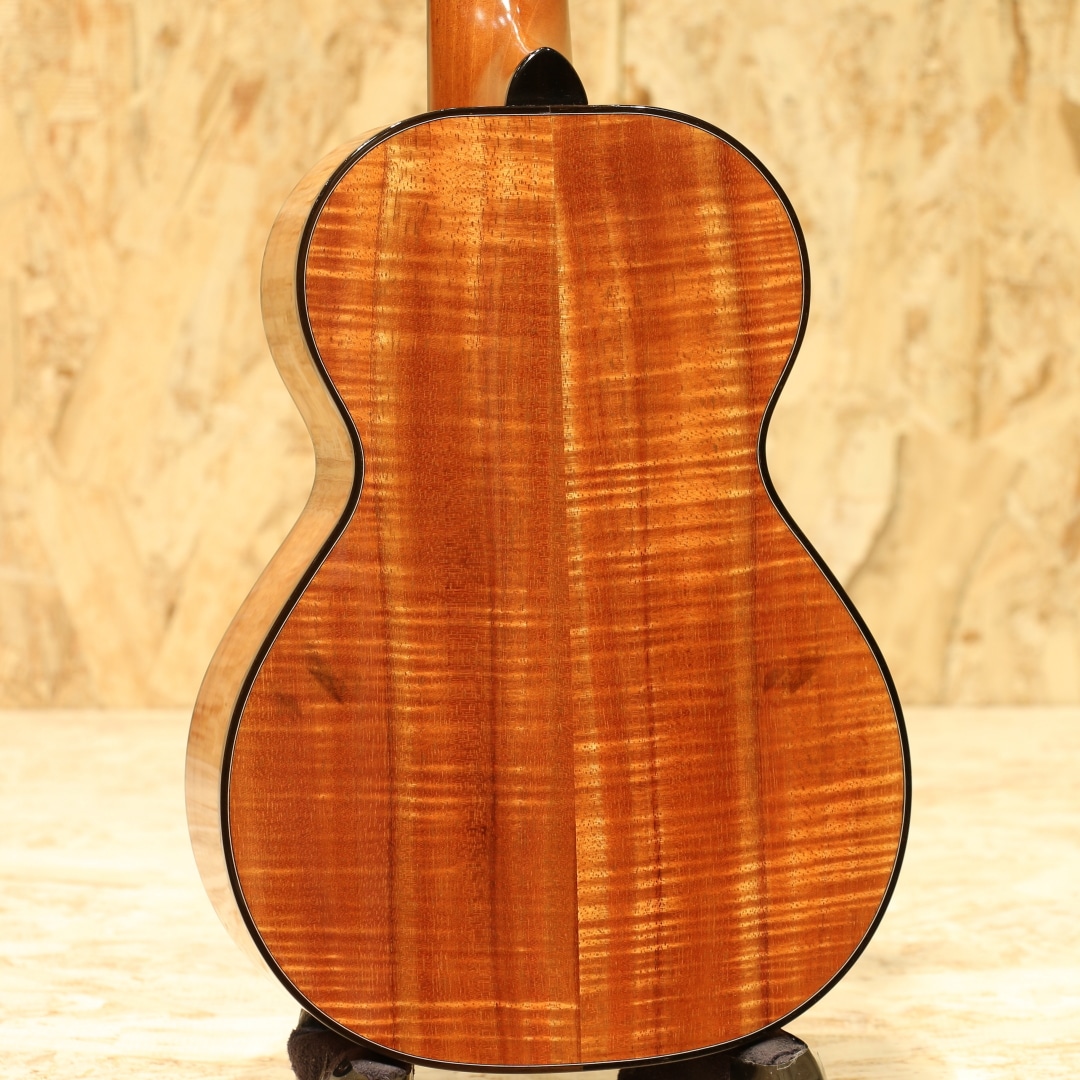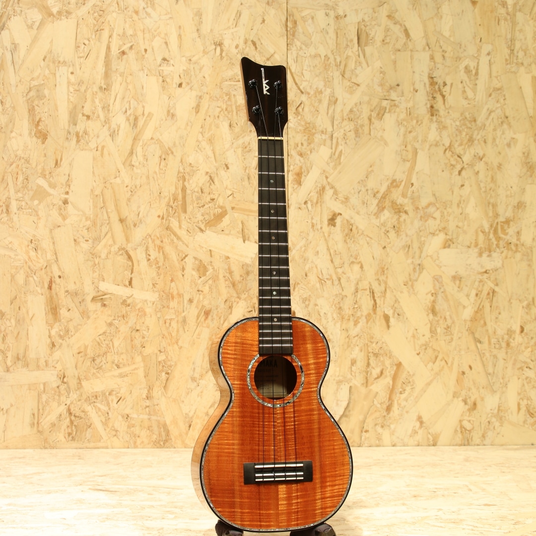 1916年よりの創業以来、ハワイアンウクレレブランドのトップを走り続けるカマカ。ジェイクシマブクロ氏を始め、数えきれないほどのプロアマミュージシャンが愛用する信頼度の高い老舗ブランドです。本器はカマカの最上位デラックスモデル、コンサートサイズのロングネック/ノーマルヘッド仕様の"HF-2 LD2"2022年製USED品。全面に浮き出た杢目の美しいフィギャードハワイアンコアを贅沢に使用。マホガニーネック、エボニー指板&ブリッジ、ウッドバインディング、ヘッドトップにはアバロンシェルのKKマーク、チューナーはオリジナルのゴトー製UPTLブラッククローム・パーロイドノブ搭載。グロスフィニッシュと各所に施されたアバロンの装飾が非常に美しく、この上無い程の高級感を味わうことができます。コンサートサイズの為抱えやすさや取り回しの良さは健在、ロングスケールならではの安定感のあるカマカらしく太甘いサウンド、そこにより解像度を上げて音のハリを与えられたような響き。暖かみがあり柔らかいのに、一音一音がクッキリと聴こえやすく、オールジャンルに対応可能な万能モデルです。新品時でもあるような薄い擦れ跡が見られる程度、非常に綺麗な状態が保たれております。ネックのコンディションも大変良く、弾きやすい状態の1本です。昨今、出物が少なくなっているカマカデラックスシリーズ、コンサートロングネックモデルは人気が高く市場でもあまり見かけない為、気になられた方は是非お早めにご検討ください。オリジナルハードケースが付属します。