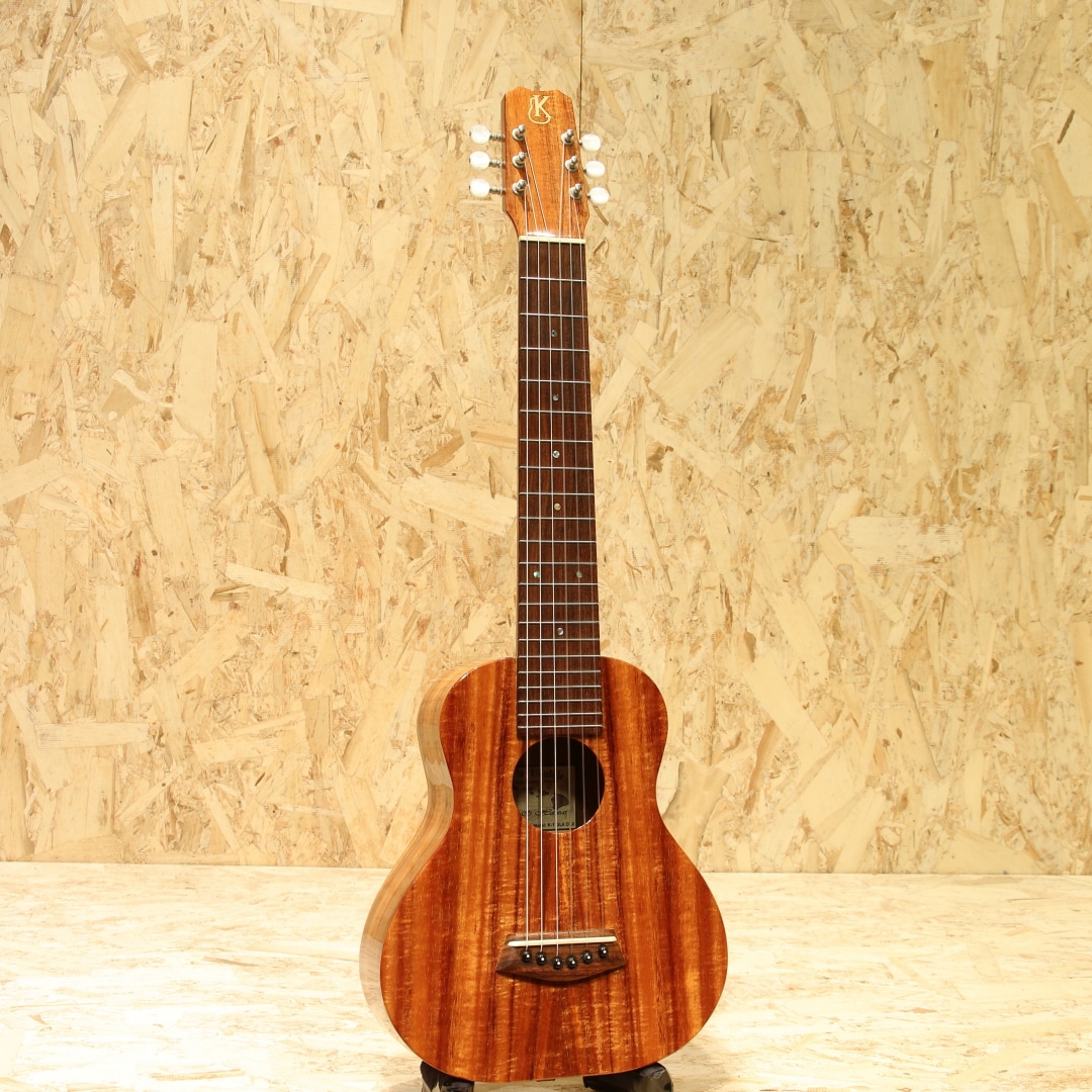 ハワイオワフ島のカネオヘに工房を構える『Kanile’a Ukulele(カニレアウクレレ)』。1990年代終わりに社長のジョー氏と妻クリスティン氏により創業。ブリッジピンの採用、3本ラインのファンブレイシングを独自に改良したブレーシングの採用やUV塗装の導入など最新技術と工房のハンドメイド工法の良い面を取り入れた独自の製法により他メーカーにはない独自のサウンドメイキングを実現。今やハワイを代表するブランドとして世界のプロユーザー、エンドユーザーに愛されているブランドです。本器は華美な装飾のないシンプルなルックスのK-1シリーズの6弦ウクレレ”K-1 GL6 DLX”、2011年製USED品です。厳選されたデラックスグレードのハワイアンコアをボディに使用、マホガニーネック、ローズウッド指板&ブリッジ、アバロンドットポジション、クロームギヤペグ、後付けにてコンタクトピエゾピックアップ搭載。ハワイアンメイドのウクレレが持つ甘いハニートーン。広いサウンドレンジを持ち、ギターのような豊かな鳴りとウクレレの持つ甘く柔らかい艶のあるサウンドを兼ね備えるハイブリッドな1本。コンタクトピエゾ搭載により、生鳴りの空気感、ボディタップなどもナチュラルに出力、ソロ弾きはもちろん、アンサンブルやバンド編成でも活躍します。表面上の擦り傷やボディ裏の打ちきずによる塗装欠けなどありますが、ご使用への影響はありません。ネックコンディションも良く、低めの弦高設定で弾きやすいアクションです。本場ハワイを代表するメーカーの本格ギタレレ。是非お試しください。汎用ソフトケースが付属します。