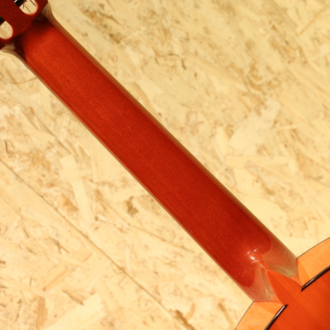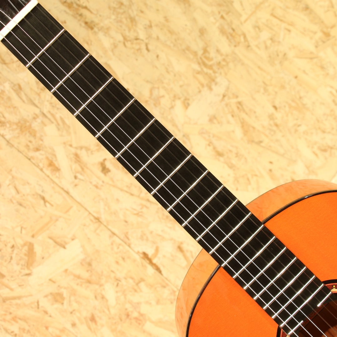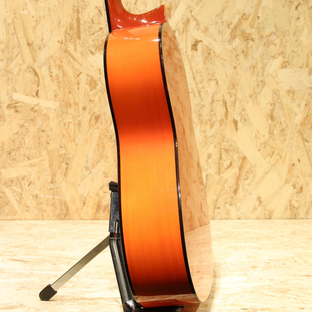 今もっとも脂の乗った製作家のひとりともいえる"Stephan Marchione(スティーブン・マルキオーネ)"。数々の有名ビルダーを輩出したPensa Suhr在籍後1993年に独立し、2001年からはテキサス州ヒューストンへ自身の工房を開いています。アーチトップをはじめ、ソリッド、クラシック、バイオリンまで、弦楽器のその大半を製作でき、そのすべての分野で喝采を博しています。イタリア人家庭で育った彼にとってヨーロッパはルーツの一つ、フラメンコスタイルは氏の得意とする楽器の一つに挙がります。本器はシープレスを使用した所謂白モデル、情熱的なカラーに身を包んだUSED品。2016年製の作品です。スプルーストップ、シープレスサイド&バック、スパニッシュシダーネック、エボニー指板、CSA RWブリッジ、ウッドモザイクロゼッタ、ローズウッドバインディング。ヴァイオリン製作家やエレキギター製作家へ師事した後も独自に研究と学びを重ねるマルキオーネ。エステソやコンデ、ロドリゲスといった世界的に評価の高い楽器を研究。コンデの演奏性の高さや音色と人間工学、ロドリゲスの職人技や力強い響きと美しさを参考にしています。これらは世界的に評価されている為多くのミュージシャンが慣れており、直感的に理解できる寸法を採用して歴史的なモデルに基づいたデザインを採用。スペイン式の製法、ニカワによる接着、接着前の最終仕上げは手で削るなど伝統的な製法を踏襲し、先人の創り上げてきたスタイルへのリスペクトを持って製作が行われています。氏の創る鉄弦にも見られるクリスタルな澄み切った響き。透明感とキレのあるトーン、音が暴れすぎることのないバランス感のある音色。音の立ち上がりも早く、音の密度の高さや輪郭の出方など、非常に高い精度で製作が行われているが故のロスの無い出音。自然な減衰が心地よい作品です。ブリッジ周りに細やかなウェザーチェック、ボディサイド6弦側ボトム箇所に極々僅かな当てキズこそ見られるモノの、非常に使用感の少ない状態です。ネック周りの精度も恐ろしく高く作られている為、演奏しやすいテンション感、良好なコンディションの1本。氏のルーツに近いスタイルのフラメンコギター。情熱的なカラーの映える作品です。是非ご体感下さいませ。