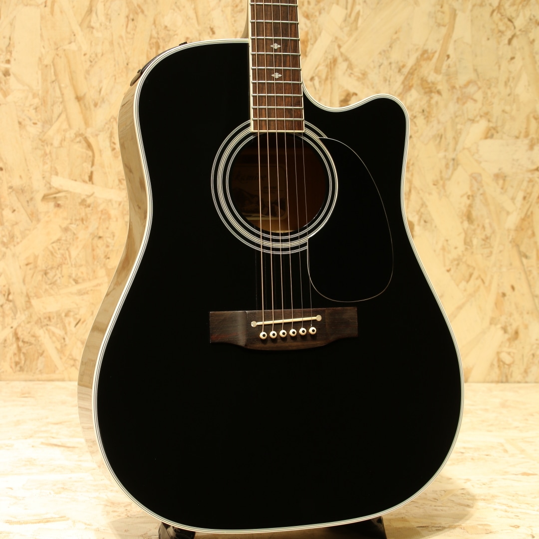 岐阜県中津川市にて製造する国内屈指のワールドワイドなエレアコメーカー"タカミネ"。アメリカや日本をはじめとする世界各国の著名ミュージシャンが愛用する純国産のブランドです。世界のトッププロに愛用されるラインナップを集めた”ワールドスタンダードシリーズ”、ドレッドノートカッタウェイシェイプ”EF341SC”。2013年製USED品です。シダートップ、メイプルサイド&バック、マホガニーネック、ローズウッド指板&ブリッジ、ゴトー製クロームペグ、CT4-DX(DMP)プリアンプ搭載、ブラックカラー。エレアコの代名詞ともされる国産タカミネ。元々は生アコースティック楽器の製造から始まっており、時代の流れがエレクトリックを求めるようになると開発に着手。その過程で生まれたパラスティックピックアップは当時としては非常に画期的なシステムでした。1979年には海外でエレアコ第一弾モデルが発売開始され、有名ギタリストがこぞって使用したことからタカミネの名が世界に広まりました。本モデルも世界的に有名なギタリストの使用で有名な機種。カッタウェイを搭載して演奏性を高められたドレッドノートモデルです。プリアンプにはタカミネのCT4-DXを搭載。9V電池を2本で駆動させるシステム、直列の為18Vまで高められた電源によりクリアかつ広いヘッドルーム。ピッキングの強弱幅が広いアコースティックに要求される歪の無いサウンドを実現します。EQは4Band、チューナーも内蔵しています。プリアンプにはAuxでもう1系統P.Uを追加することも可能、それ用にNotchフィルターも備えているありがたさ。タカミネの代名詞、エレアコサウンドを存分に体感できるピックアップシステムです。黒が故に目立つ極々薄い擦れキズやネックヒールストラップピン周りにストラップを付けていたであろう跡、ヘッドの弦が擦れたような擦りキズ等が見られますが、使用感は多くなくキレイなコンディションをキープ。演奏性も良好に保たれステージでの演奏をサポートしてくれる1本です。ステージで使うエレアコとして、ライン撮りで録音するエレアコとして、もちろん生音での演奏にも。幅広く使えるギターです。是非ご検討下さいませ。