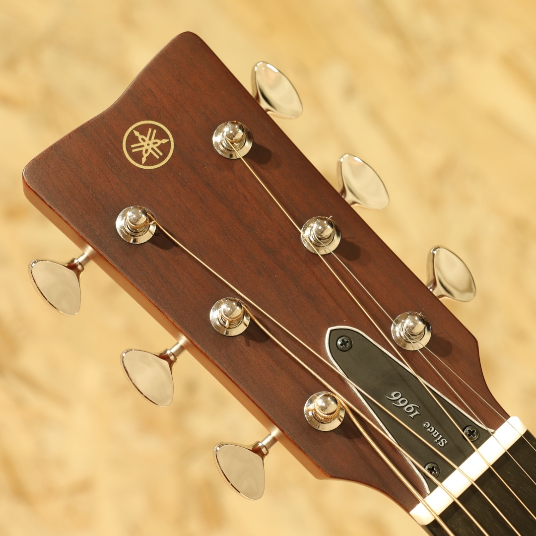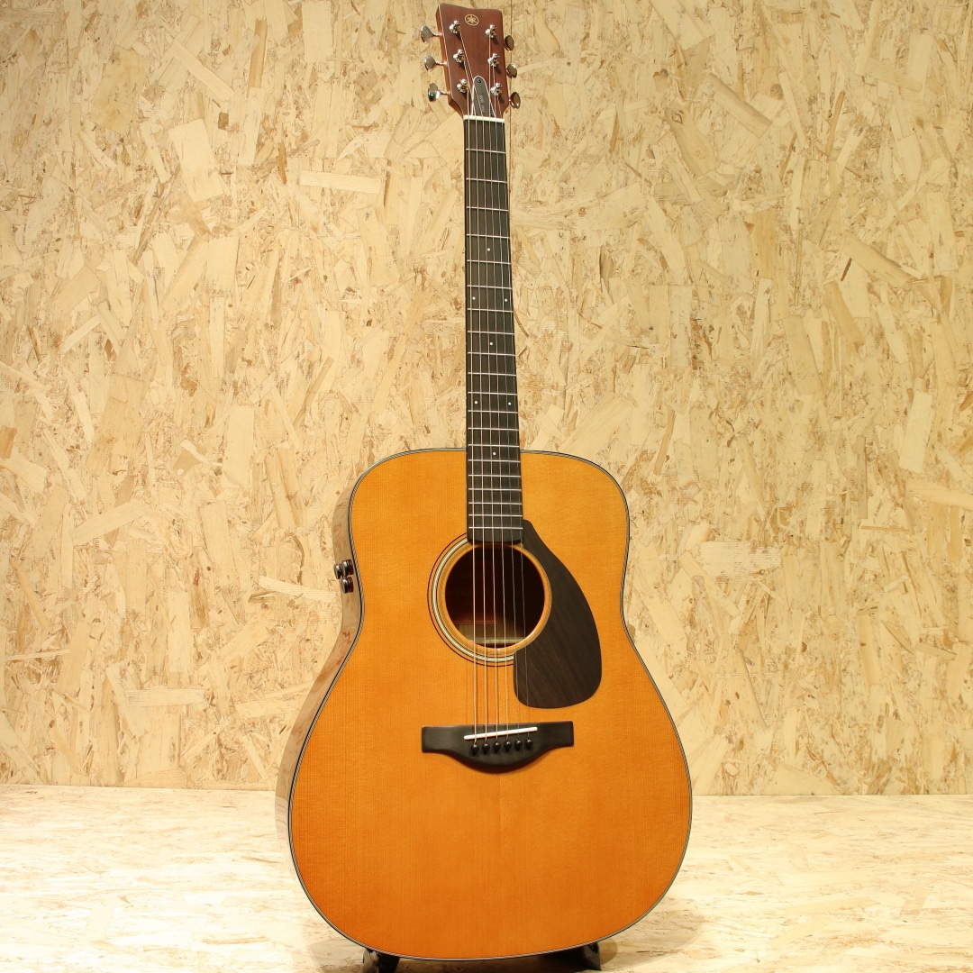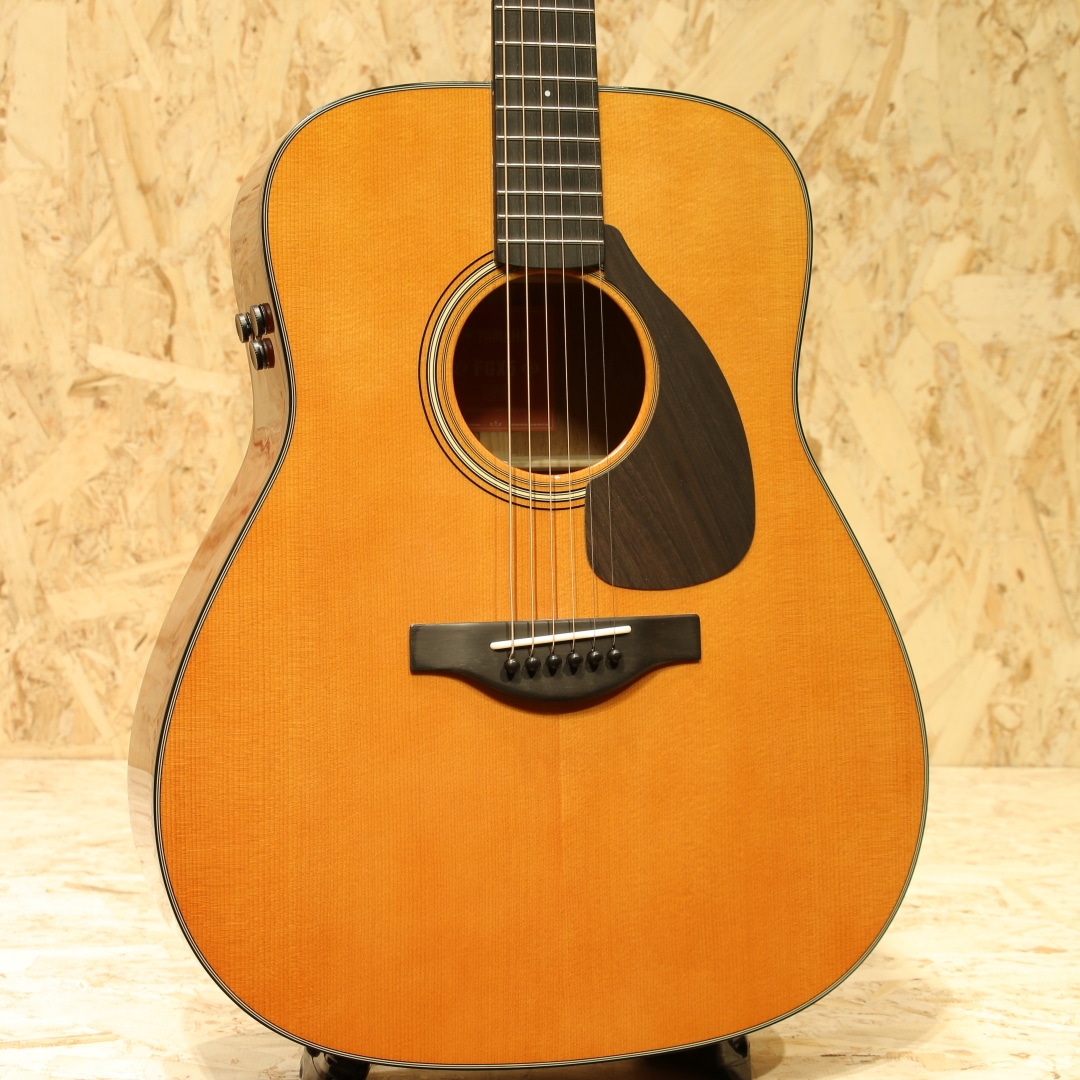 国内外問わず使用アーティストも多い、日本を代表するブランド”YAMAHA”。国産アコースティックギターの1号機としてFGを開発し現在までも様々なモデルを製造し根強いファンの多いブランドです。本器は60年代に生まれたFGの美学と現代までの技術を融合させ生まれたRed Labelシリーズ、国産モデル”FGX5”。2024年製のUSED品です。A.R.E処理シトカスプルーストップ、マホガニーサイド&バック、マホガニーネック、エボニー指板&ブリッジ、オープンバックペグ、ローズウッドピックガード、エボニーブリッジピン&エンドピン、オリジナルアルミロッドカバー、音叉ヘッドマーク、スキャロップドXブレーシング、SYSTEM74ピックアップシステム搭載。当時のFGの基本デザインを継承し、ギター作りに関する豊富なノウハウと最新技術を融合させて生まれたモデル。ヘッド形状は伝統のVシェイプ、ロゴは初期FGからオマージュされた音叉マーク。トラスロッドカバーにはFGの発売年である「Since 1966」を刻印されています。トップにはヤマハ独自のエイジング技術A.R.Eを施したシトカスプルース材を使用。内部構造も既存のFG/FS800シリーズとは異なり、最新の音響解析シミュレーションを使用し材やボディ形状に最適化した暖かみのあるサウンドを出力できる構造へ。マホガニーらしく軽快さやキレを感じさせますが、音色は太く中域には密度感を感じさせます。輪郭感のハッキリとしたクリアなサウンド、AREの恩恵かキレを感じさせつつも耳に痛くない高域。そしてボリューミーさと、往年のFGのDNAを感じさせるモデルです。ネック周りはヤマハのノウハウがつぎ込まれており、やや丸みを帯びた指板エッジの処理や薄めのネックグリップと演奏性にも気を配られたギター。握り込んでのストロークプレイはもちろん、幅広く使用できる汎用性の高さも魅力の1つです。ピックアップにはSYSTEM74ピックアップシステムを搭載。中域担当のアンダーサドルピエゾ、低音担当のマイク、高音域担当のコンタクトピエゾの3Wayで音を拾いそれらを混ぜて出力します。芯のあるハッキリとしたサウンドから空気感の強いサウンドまで幅広くサウンドメイクが可能。コントロール部はVol,MicBlend,BassEQの3つと非常にシンプルな構成でステージ上でも迷うことなくセッティングすることが出来ます。全体を通して新品時のバフ跡程で非常に使用感の少ない個体。ネック周りも同じく良い状態をキープされており、歌モノでのストロークやフィンガー、ステージ上と演奏をサポートできる1本。家弾きからライブ、路上や配信に宅録まで幅広く活躍することが出来るポテンシャルを持ったギター。長い歴史を持つヤマハのノウハウと伝統を感じさせる1本。是非、ご検討ください。