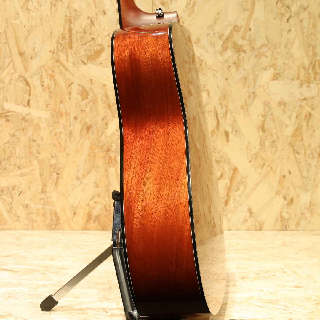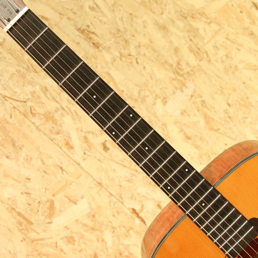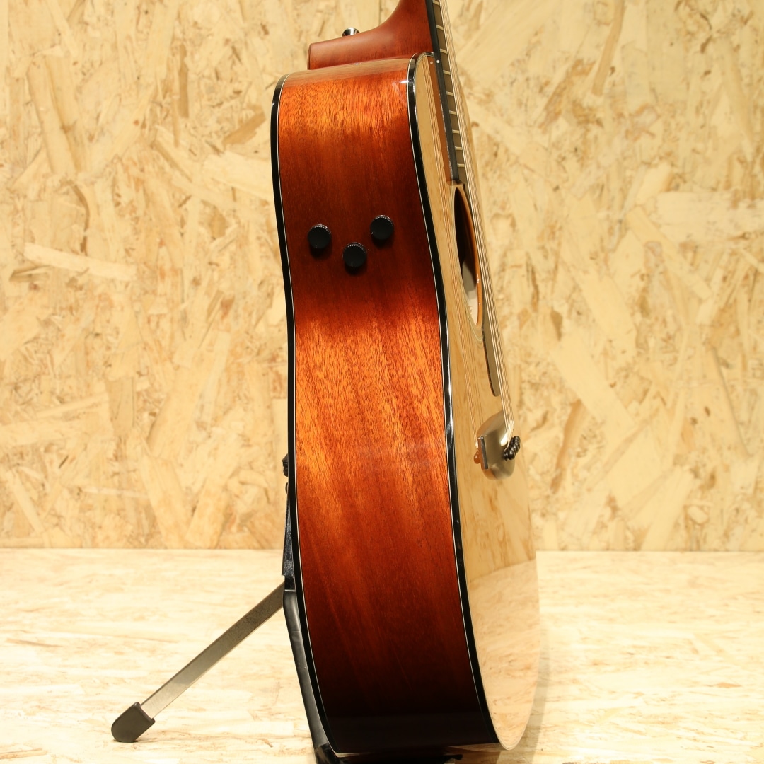 国内外問わず使用アーティストも多い、日本を代表するブランド”YAMAHA”。国産アコースティックギターの1号機としてFGを開発し現在までも様々なモデルを製造し根強いファンの多いブランドです。本器は60年代に生まれたFGの美学と現代までの技術を融合させ生まれたRed Labelシリーズ、国産モデル”FGX5”。2024年製のUSED品です。A.R.E処理シトカスプルーストップ、マホガニーサイド&バック、マホガニーネック、エボニー指板&ブリッジ、オープンバックペグ、ローズウッドピックガード、エボニーブリッジピン&エンドピン、オリジナルアルミロッドカバー、音叉ヘッドマーク、スキャロップドXブレーシング、SYSTEM74ピックアップシステム搭載。当時のFGの基本デザインを継承し、ギター作りに関する豊富なノウハウと最新技術を融合させて生まれたモデル。ヘッド形状は伝統のVシェイプ、ロゴは初期FGからオマージュされた音叉マーク。トラスロッドカバーにはFGの発売年である「Since 1966」を刻印されています。トップにはヤマハ独自のエイジング技術A.R.Eを施したシトカスプルース材を使用。内部構造も既存のFG/FS800シリーズとは異なり、最新の音響解析シミュレーションを使用し材やボディ形状に最適化した暖かみのあるサウンドを出力できる構造へ。マホガニーらしく軽快さやキレを感じさせますが、音色は太く中域には密度感を感じさせます。輪郭感のハッキリとしたクリアなサウンド、AREの恩恵かキレを感じさせつつも耳に痛くない高域。そしてボリューミーさと、往年のFGのDNAを感じさせるモデルです。ネック周りはヤマハのノウハウがつぎ込まれており、やや丸みを帯びた指板エッジの処理や薄めのネックグリップと演奏性にも気を配られたギター。握り込んでのストロークプレイはもちろん、幅広く使用できる汎用性の高さも魅力の1つです。ピックアップにはSYSTEM74ピックアップシステムを搭載。中域担当のアンダーサドルピエゾ、低音担当のマイク、高音域担当のコンタクトピエゾの3Wayで音を拾いそれらを混ぜて出力します。芯のあるハッキリとしたサウンドから空気感の強いサウンドまで幅広くサウンドメイクが可能。コントロール部はVol,MicBlend,BassEQの3つと非常にシンプルな構成でステージ上でも迷うことなくセッティングすることが出来ます。全体を通して新品時のバフ跡程で非常に使用感の少ない個体。ネック周りも同じく良い状態をキープされており、歌モノでのストロークやフィンガー、ステージ上と演奏をサポートできる1本。家弾きからライブ、路上や配信に宅録まで幅広く活躍することが出来るポテンシャルを持ったギター。長い歴史を持つヤマハのノウハウと伝統を感じさせる1本。是非、ご検討ください。