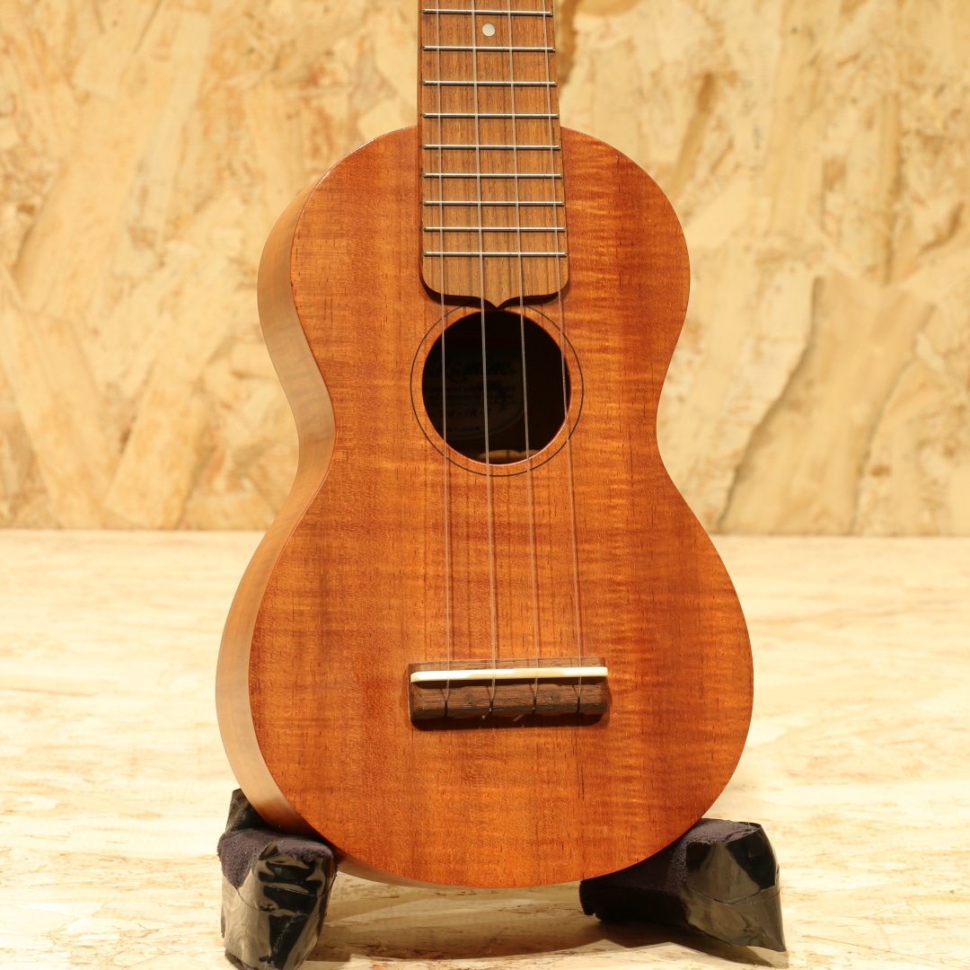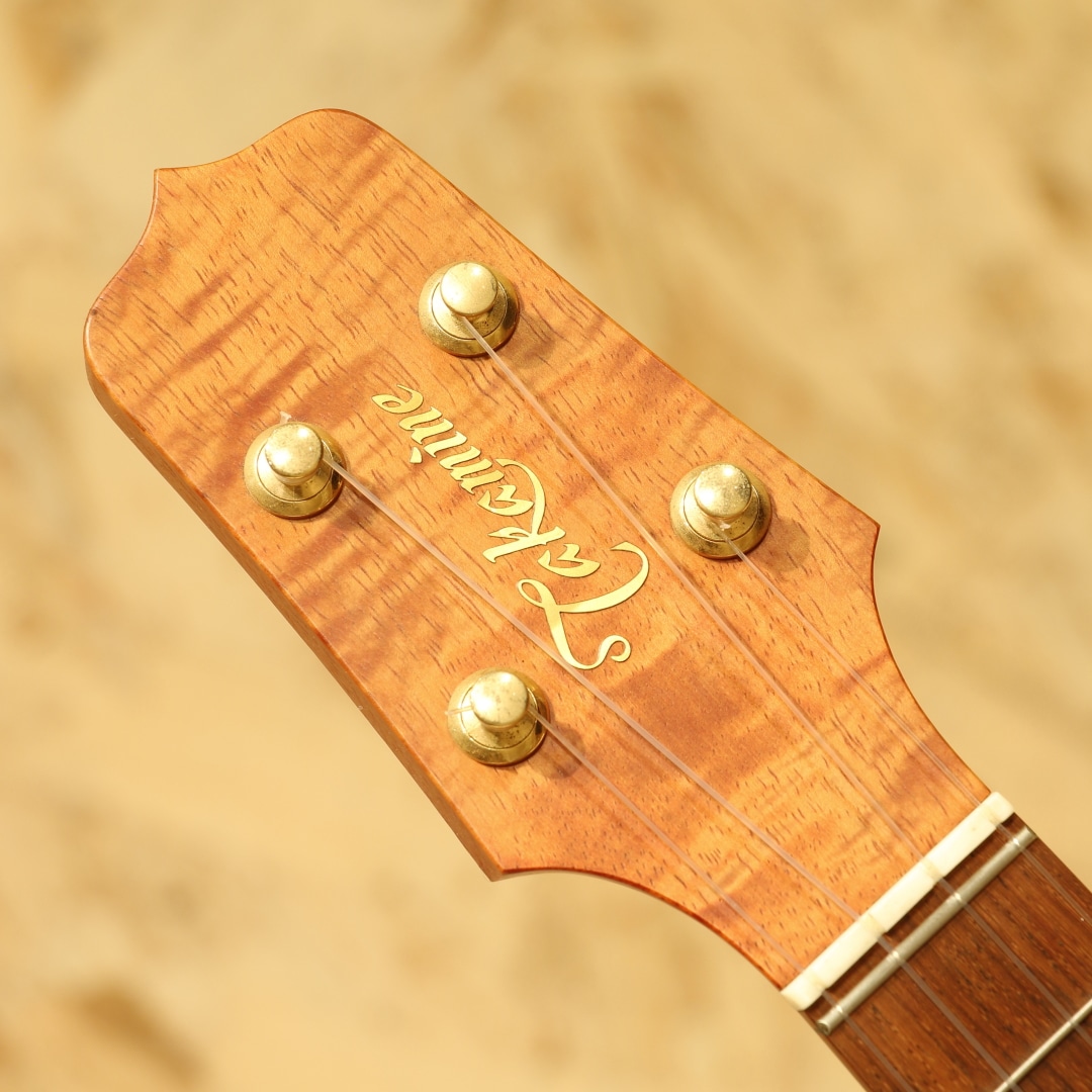 岐阜県中津川市にて製造する国内屈指のワールドワイドなエレアコメーカー"タカミネ"。アメリカや日本をはじめとする世界各国の著名ミュージシャンが愛用する純国産のブランドです。本器は現在では製造が行われていないウクレレ、ハワイアンコア単板のソプラノサイズ”TU-1K-S”。2000年代製USED品です。ハワイアンコア単板ボディ、マホガニーネック、ローズウッド指板&ブリッジ、オリジナルクロームペグ、サテンフィニッシュ。エレアコの代名詞ともされる国産タカミネ。元々は生アコースティック楽器の製造から始まっており、時代の流れがエレクトリックを求めるようになると開発に着手。その過程で生まれたパラスティックピックアップは当時としては非常に画期的なシステムでした。1979年には海外でエレアコ第一弾モデルが発売開始され、有名ギタリストがこぞって使用したことからタカミネの名が世界に広まりました。現在でも生楽器はラインナップされており、原点の部分は残されています。一時期ウクレレが非常に流行ったことから国産ギターブランドでウクレレを製造することも多く見られましたが、現在ではあまり見られなくなりました。本器もその時期に作られたであろう1本。コア材を先んじてギターに採用していたタカミネらしい、ハワイアンコア単板を使用したソプラノサイズウクレレです。コロンコロンとした軽快で鈴が転がるような音色、ハワイアンコアらしい艶感のある音色。そしてスペックや国産ブランドが造りながらリーズナブルである点など非常に魅力的な楽器です。システマチックに製造を行っているタカミネは作る精度も高く、安心感もあります。ヘッド先端に僅かな当てキズ等見られますが年代を感じさせない程キレイなコンディションをキープされている個体。ネックの状態も良く、弦高などのセッティングも良好、サドル残りも残した演奏性良しの1本です。国産ブランドが造るリーズナブルなソプラノウクレレ。ギターで実績のあるブランドだけに造りもピカイチです。これから始める方にも安心してオススメできるUSED品。是非お手元でお楽しみ下さいませ。