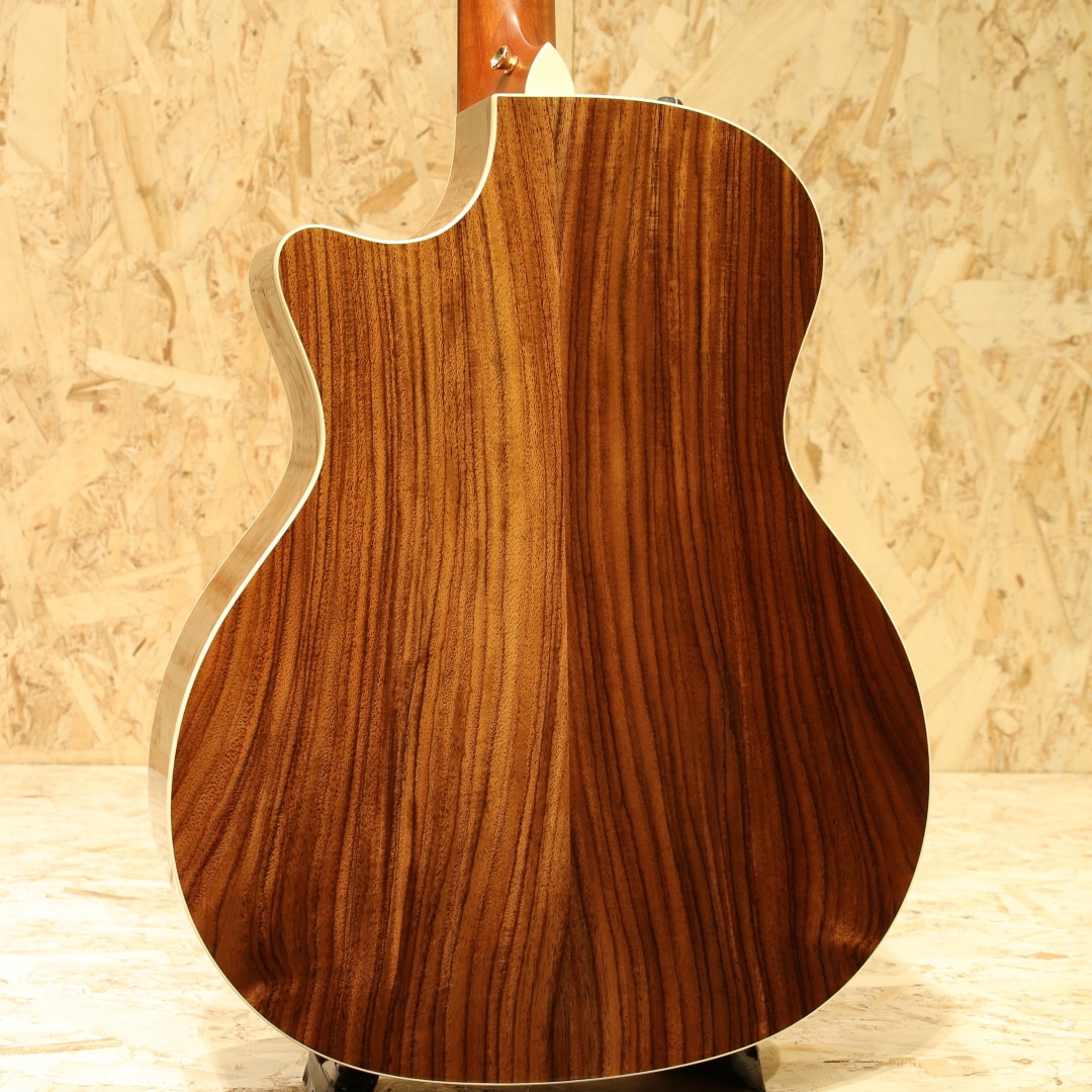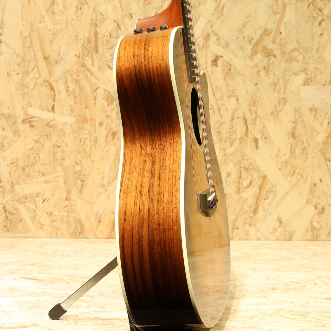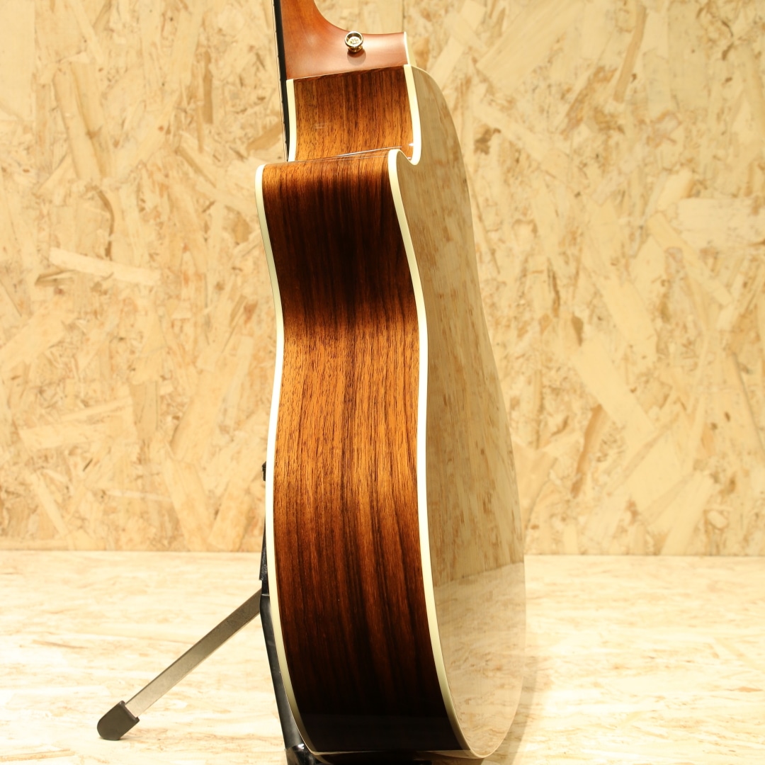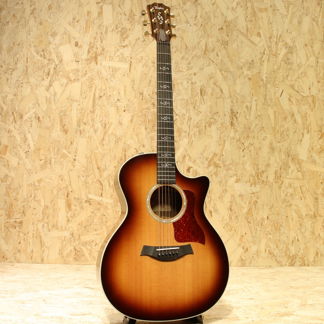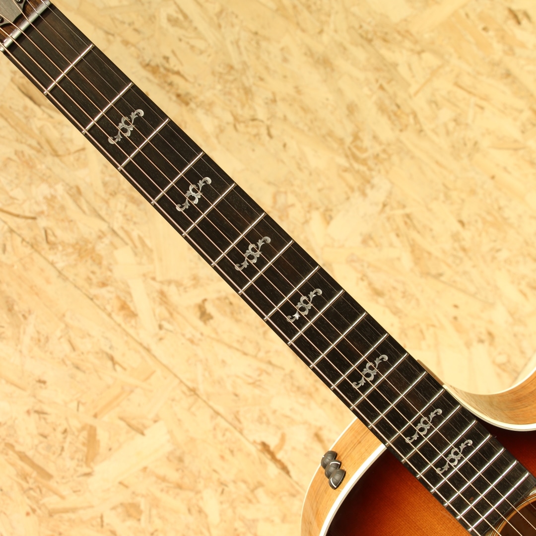 先端のテクノロジーと確かな技術で今やアメリカンアコースティックの主流・テイラーギター。2000年代より急速に成長し、画期的なギター構造を採用した事によって世界のトップアコースティックブランドに成長したテイラー社。国内をはじめ特にアメリカではプロミュージシャン使用のシェア率が非常に高く、圧倒的な人気を誇っています。本器はテイラーラインナップの中で人気を博しているグランドオーディトリアムシェイプのリミテッドモデル”2022 Limited Edition 414ce Rosewood V-Class ”。2022年製USED品です。シトカスプルーストップ、インディアンローズウッドサイド&バック、トロピカルマホガニーネック、エボニー指板&ブリッジ、Taylorオリジナルゴールドペグ、Vブレイシング、テイラー社オリジナルのES2ピックアップ搭載。通常の400番台との仕様変更点は、通常ラインナップには無いシェイデッドエッジバーストカラー。ペグもクロームからゴールドへ変更。ボディカラーによく馴染むアイボロイドバインディング、ロゼッタはアバロンからホワイトパールへ。指板インレイも専用のものがあしらわれ、ヘッドインレイとマッチングデザインとなっております。スプルースが生み出すドライで芯のハッキリした明るいサウンド。サイド&バック材のローズウッドはサウンドレンジが広く、ウォームな低音やキラッとした煌びやかな高音成分を生み出すトーンウッドです。定番の組み合わせですが、聴き馴染みのあるサウンド、Taylorのマスタービルダー、アンディ・パワーズ氏が開発した“V-Classブレーシング”が搭載されていることにより、ダイナミックなレンジ感、心地よく抜けるサステインにより豊かな表現が可能な点も魅力的。ローズウッドが採用されているのでレンジも広く、リッチな倍音、ディープな低音域とブライトな高音域とこれぞTaylorというサウンドをより強くご体感いただける1本です。ピックアップにはES2が搭載。構造としてはピエゾピックアップ、従来のようにサドル下ではなく、サドル横に3本の縦型のピエゾピックアップを取り付けています。これによりサドルから伝わった振動が圧迫されることなく出力することが可能。コントローラーもお馴染みとなったVol,Bass,Trebleのシンプルな構成。操作も簡単、音作りも容易です。トップ面1弦側下部に1cmほどの当てキズが2か所ありますが木部までは達しておりませんのでご安心くださいませ。その他には光にかざせば視認できる程度の擦り傷がある程度。ネック・プレイコンディション共に良好で即戦力間違いなし。取り回し良く扱いやすい本モデル、ご自宅用の本格ギターとしても、ステージなどでの相棒をお探し方にも是非お試しいただきたい1本です。オリジナルハードケースが付属します。