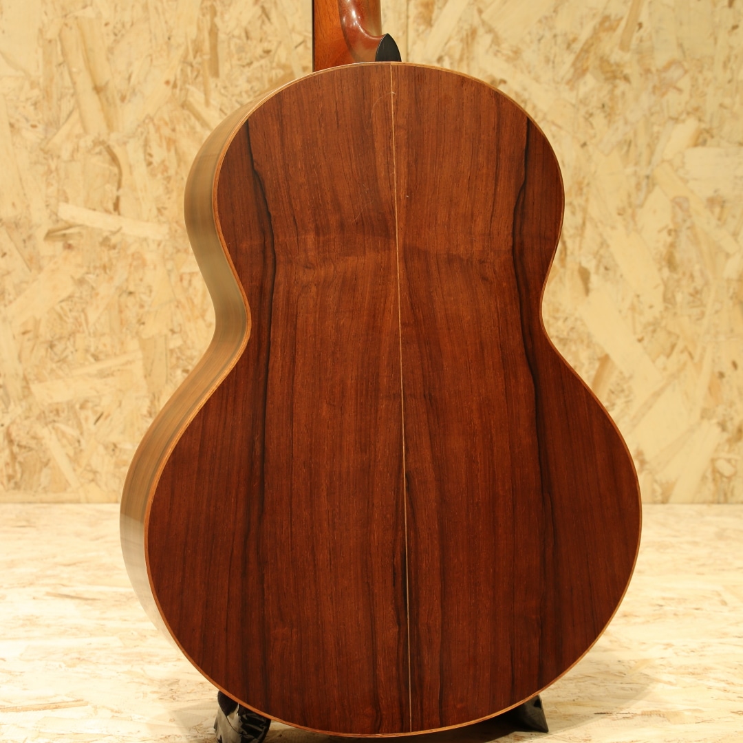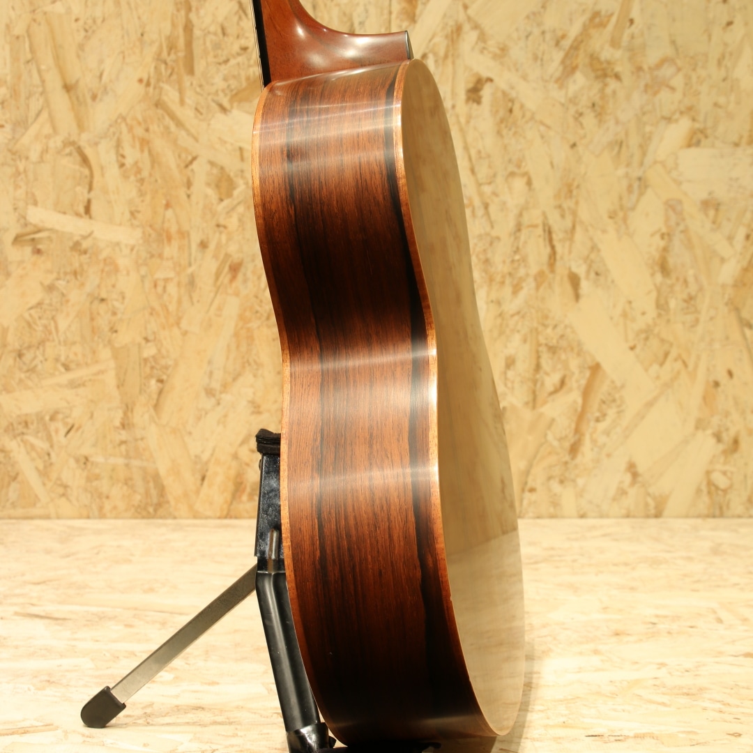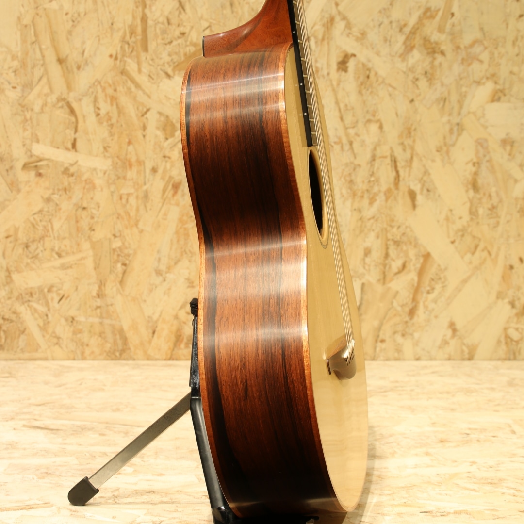 ヨーロッパのフィンガースタイルアーティストをはじめ、多くの著名なミュージシャンが使用しているアイルランド製ギター"ローデン"。木材そのものの杢目や色合いを活かしたオーガニックなテイスト、美しい曲線を描く独自のデザインに唯一無二なサウンド。少数精鋭にて丁寧に製作される、非常に人気の高いブランドの一つです。本器はレギュラーサイズのうち最も小ぶりなSサイズにカスタムオプションの12Fジョイント仕様を採用した”Lowden S-35 MR/AS 12Fret Joint ”。2018年製作の1本です。アルパインスプルーストップ、マダガスカルローズウッドサイド&バック、マホガニー&ウォルナット5Pネック、エボニー指板、ボコーテブリッジ、オリジナルアバロン&ウッドロゼッタ、ウッドバインディング、セミグロスフィニッシュ。ローデンサウンドとも評される分厚いガラスのような倍音、柔らかいテイストを持つロー感と繊細で伸びやかなハイ感、クラシカルなトーンを含んだ独自のサウンドに12フレットジョイントならではの音の深さと厚みがプラスされ非常に魅力的な音色を奏でてくれるギターです。サイド&バックに使用されているマダガスカルローズウッドはカスタムラインである35シリーズでも採用出来なくなった希少材。現在では最上位シリーズである50シリーズのみで使用が可能です。アルパインスプルースの上品で芯のあるサウンドとマダガスカルローズウッドの組み合わせは多岐に渡るLowdenのスペックの中でも王道のトーンバランスをもち、ピッキングタッチに対するレスポンスも良く、繊細なタッチへの追従性や表現力はピカイチ。ヨーロピアンギター筆頭としての完成度と高いポテンシャルをひしひしと感じます。オリジナルのクリアピックガードはキレイに外されており光に透かすと分かる程度の痕跡がございます。また、バックのバックル傷やセミグロスフィニッシュ特有の塗装のくすみ、トップの打痕などの使用感は見られるものの大きなダメージはなく、ネック周りの演奏性は抜群です。貴重なマダガスカルローズ仕様、人気の高いSシェイプですので気になられた方はお早めにご検討ください。オリジナルハードケースが付属します。