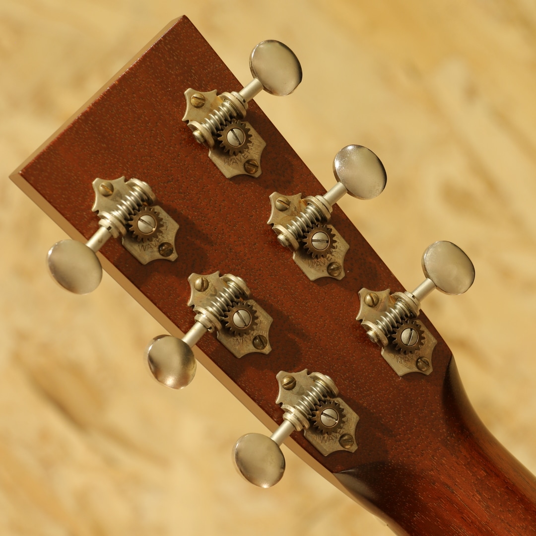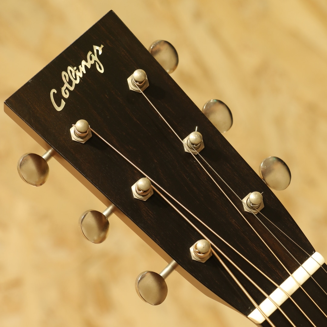 オースチン・テキサスより、真摯な造りでプレイヤーを魅了するコリングス。造りの丈夫さや正確さは類まれなるクオリティで、トラッドをベースとしたアプローチながら独自の理論も相まり、絶対的な安心感をもたらしてくれるブランド。本器は天才的ジャズミュージシャン "ジュリアン・ラージ"シグネイチャモデル OM1A JL Julian Lage Signature。本人使用と同じアディロンダックスプルーストップ(+オプション297,000円tax in)を追加されたドストライクなお品で2017年製のUSED品となります。アディロンダックスプルーストップ、ホンデュラスマホガニーサイド&バック、ホンデュラスマホガニーネック、エボニー指板&ブリッジ、MOP指板ドットインレイ、トートイスシェルバインディング、トートイスシェルピックガード、ウェバリーニッケル・エイジドペグ、初期型インレイヘッドロゴ、カスタムトラディショナルシリーズプリウォースキャロップドXブレイシング(ノンタング)、サテンフィニッシュ。ジュリアン・ラージ氏はジム・ホールの影響を多大に受け10代からミュージシャンとして活動し、その他様々なアーティストとも共演、ジャズからブルースやカントリー、ブルーグラスまで幅広いジャンルを網羅。15歳の時にはゲイリー・バートンのバンドに加入や20歳の時にはメジャーデビューするなどジャズ界の天才少年ギタリストとして名を馳せ、現在でも戦前のジャズ等伝統的な音楽から現代的な音楽までを咀嚼し未知のスタイルへと挑戦し続け、ジャズ界のカリスマとも言える存在です。本器はコリングスOM1Tを基本とするも、ジュリアン氏のこだわりや想いが反映された本器。彼の愛用する1939年製Martin000-18を基にした今までのコリングスにはなかったネックプロファイルを採用。慣れ親しんだオールドネックの感触を入念に研究、そして弾き込まれたアシンメトリーの感覚が精密に再現されています。とても軽いボディウェイトもその特徴のひとつで、フィニッシュも経年したオールドの様な導管を感じる質感の外観も魅力的。とてもオープンなサウンドでレンジが広く、またコリングスならではの正確でしっかりとしたレスポンスが共存しています。使用感は大変薄い個体でピックガード周辺に光に透かしてようやく見えるほどの薄いピックスクラッチ痕やまばらに小さな打痕が見られる程度。ウッドのオリジナルのエンドピンがマウントされていますがドットのシェルが欠損しています。ネックの状態も良好で現状かなり低いセットアップにて調整されており、とても弾きやすい状態をキープ。サドルの出代も十分です。ビルコリングスが天才「ジュリアン・ラージ」に初めて出会ったのは2014年のこと。ビルが2017年7月にこの世を去るまでに実現したこのレアなコラボレーションは、宝物といえます。発売より現在も大人気を誇るビルコリングスの情熱を示してきた本モデル、本器はビルの息がかかっていた年の貴重な2017年製のUSEDとなります。ビル氏が遺した熱い想いが伝わる素晴らしい1本です。是非お手元でご体感ください。現在は非買となっている大変貴重な高級コリングストラディショナルハンドクラフトハードケースが付属です。(※現在の新品参考税込み価格は1,782,000円税込み)