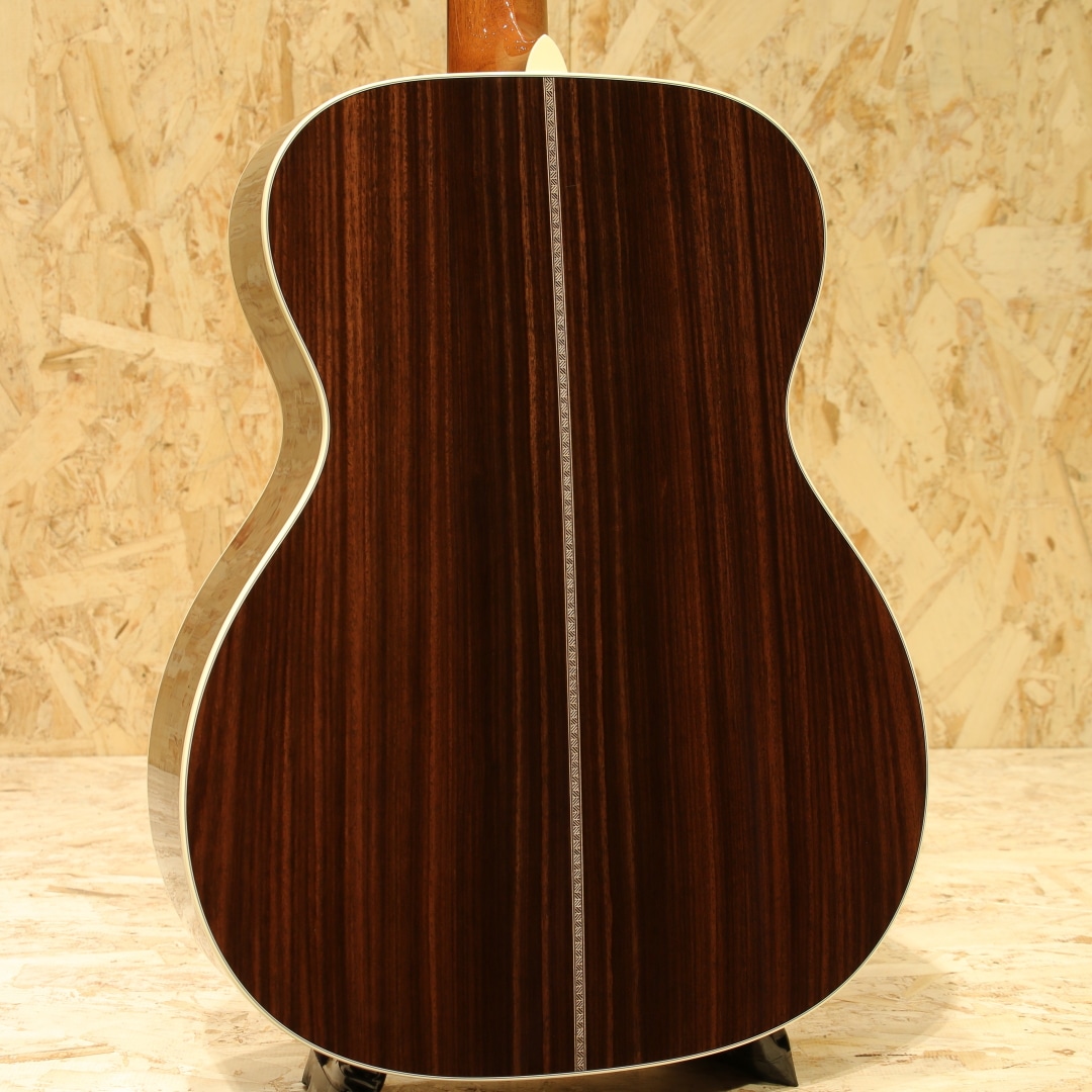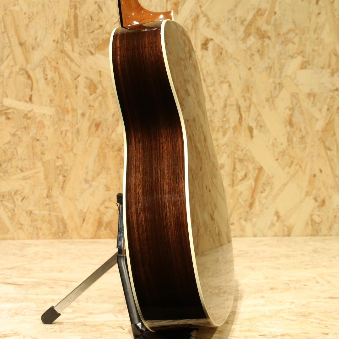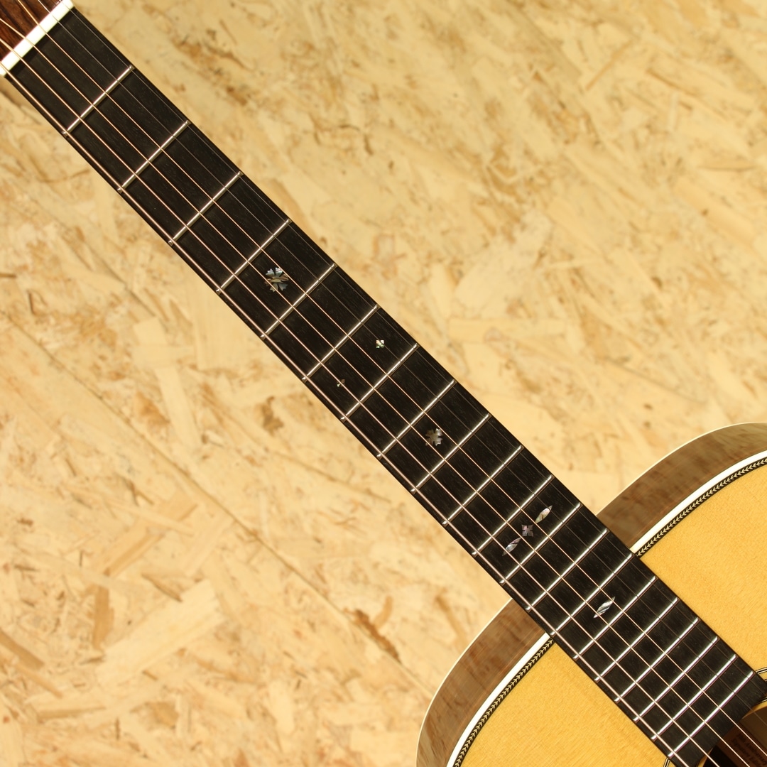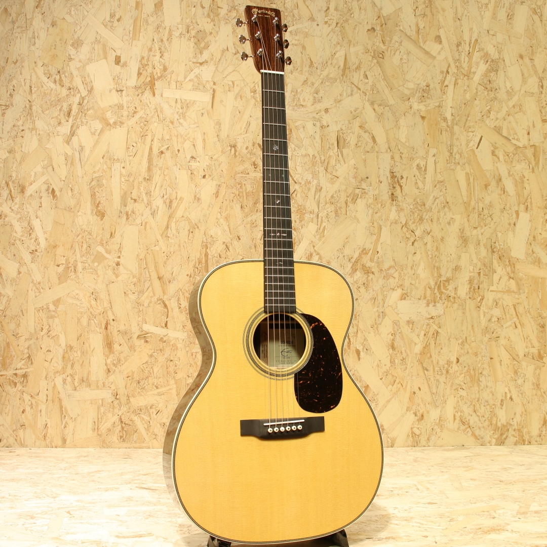 1992年にエリック・クラプトンが1939年製の000-42をMTVアンプラグドで使ったことがきっかけで、当時ヴィンテージでしか存在しないこのモデルが怒濤の反響を呼び、95年に限定で"OOO-42EC"シグネイチャモデルとして発売されました。その後もクラプトン人気は衰えを知らず、人気のモデルをリリースしてきました。本器はエリック・クラプトンが80歳を迎えた2025年3月30日の誕生日に、新たなシグネーチャーモデルが発表されました。初のシグネーチャモデルが発表されてから30年を記念する000-EC 30th Anniversary。スタイル28をモチーフにしたモデル。トップには端正なスプルース、インディアンローズウッドサイドバック、エボニー指板&ブリッジ、オープンバックペグ、グロスフィニッシュヘッドプレート、ゴールデンエラ42スタイルのスノーフレークス指板インレイ、オリジナルベッコウセルピックガード、ヘリンボーンロゼッタ&トリム、ホワイトセルバインディング、モザイクバックストリップ。クラプトンのサインが印刷されたインナーラベル、認定書付属。スキャロップドXブレイシング仕様となっています。倍音がよく効いた見た目以上にファットで凛とした質の良い低音、空気をたっぷりと含みながら繊細な高音と豊かな倍音。クラプトンモデルの中では珍しく1 11/16"(42.9mm)のナット幅を採用。オリジナル刺繍入りハードケース付属。