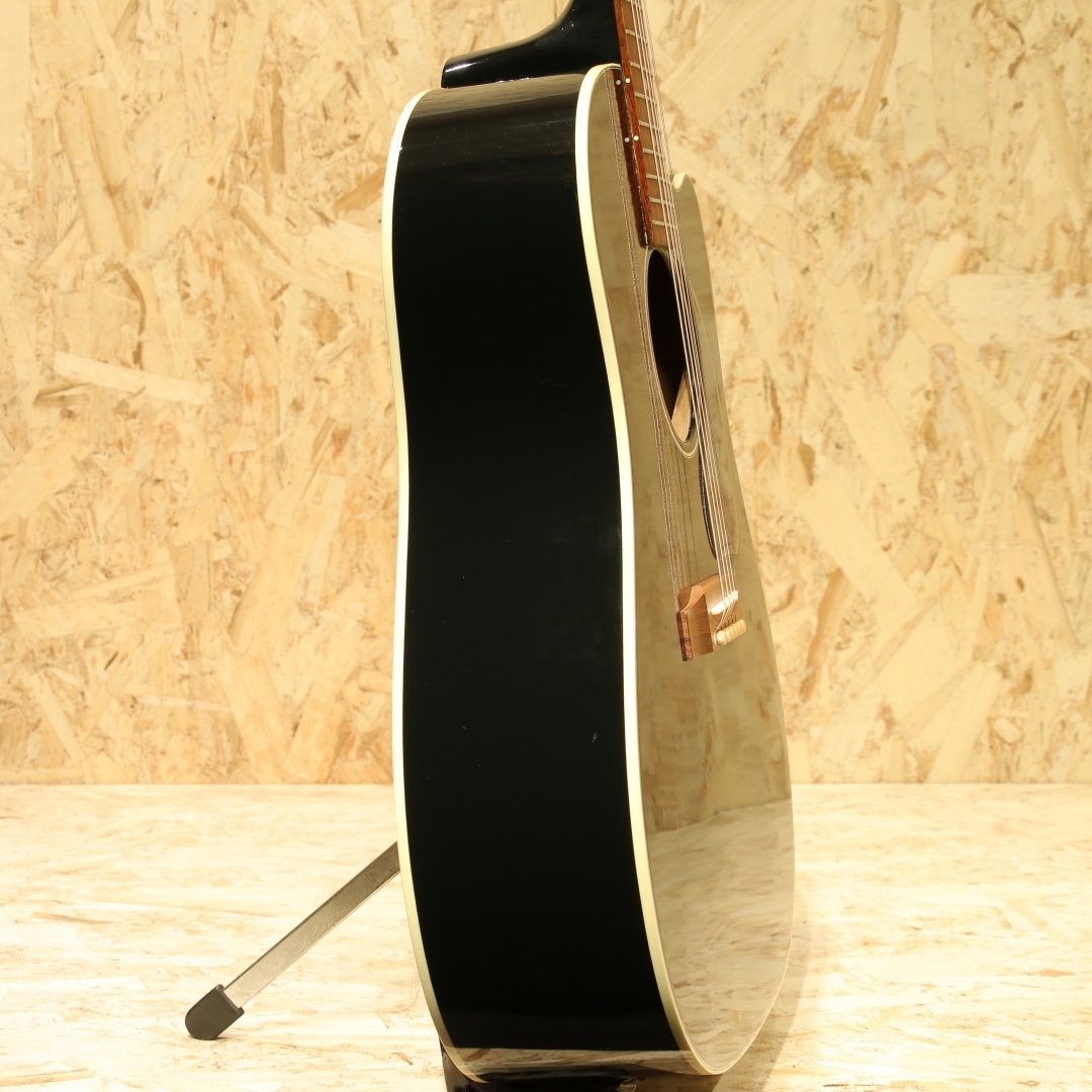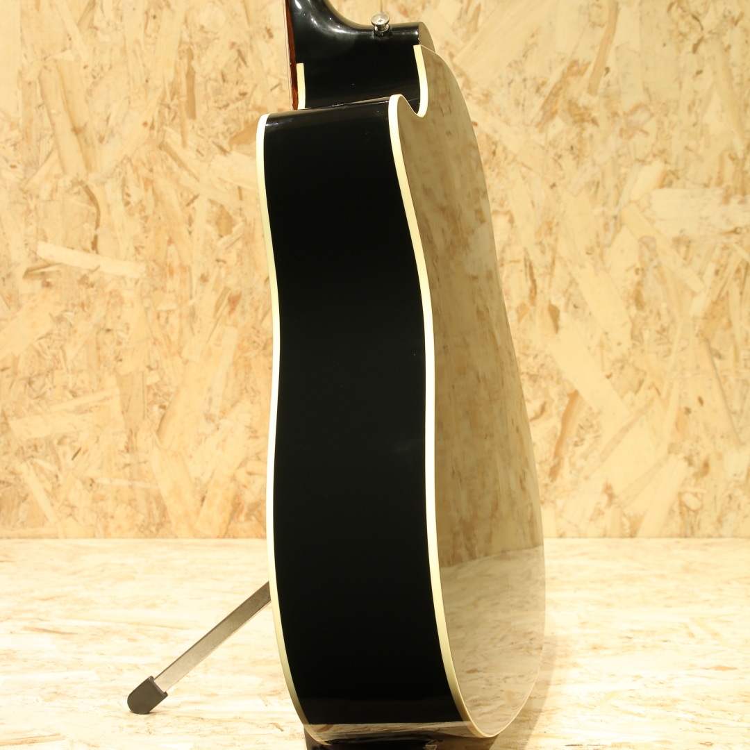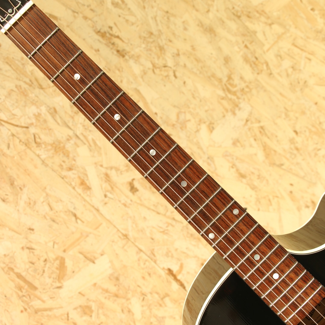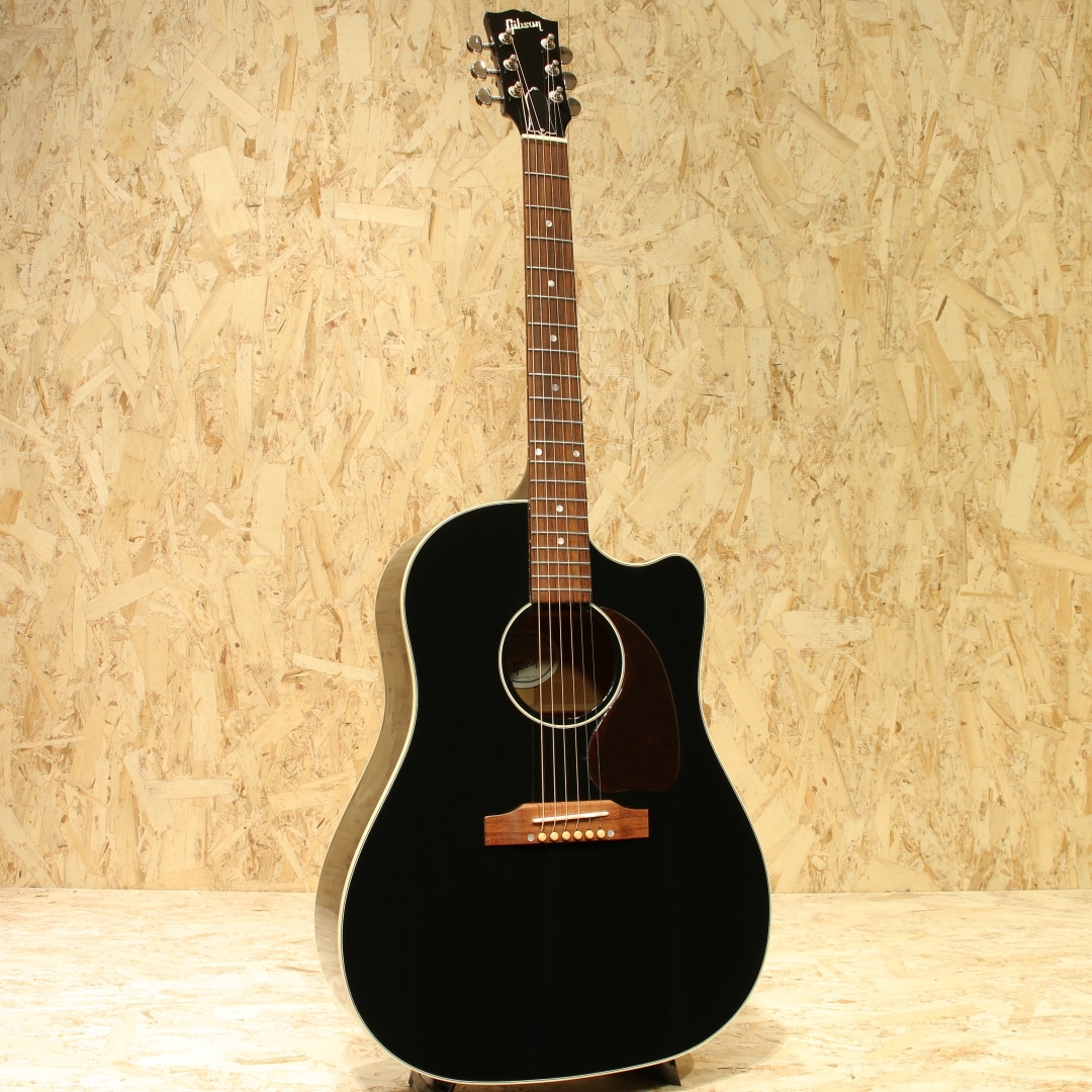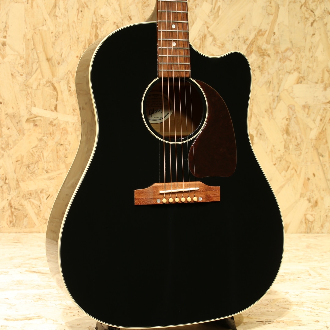 "The Workhorse(頼りになる馬車馬)" の愛称で信頼されるベストセラー・モデル。ウォームな低域とエッジの効いた中高域が織りなす優れた表現力でプレイヤーを支え、どんなときにも信頼できるパートナーとして1942年の登場以来、ギブソン・ラウンド・ショルダー・ラインナップの中心的役割を担い続ける”J-45”。基本的なスタイルは継承されつつもマイナーチェンジを繰り返し、年々進化し続けております。本器はカッタウェイが搭載されたレアなモデル”J-45 Standard EC”、ラウンドショルダーモデルの中でも人気の高いエボニーブラックにて仕上げられた2017年製の1本。シトカスプルーストップ、マホガニーサイド&バック、マホガニーネック、ローズウッド指板&ブリッジ、グローバーペグ、MOP指板ドット、べっ甲柄スモールガード、スキャロップド・Xブレイシング、L.R.Baggs Element VTCピックアップ搭載。カッタウェイ仕様を除けば、J-45 Standardモデルと同様、ダイナミックなストロークからフィンガープレイまで幅広く応えてくれるオールラウンドな1本。カッタウェイを施しハイポジションでの演奏性は飛躍的に向上しています。ローコードからギターソロプレイまでガンガンご使用いただけます。サイド面に細かな打痕、バック面に広めの擦り傷が見られますが、割れ等の大きなダメージは無く、パーツのくすみなど外観上の使用感のみと綺麗な状態が保たれています。演奏面に関わるネックコンディション等は問題なし、憧れのギブソンサウンドとハイポジションの演奏性も両立させた1本。是非ご検討くださいませ。オリジナルハードケースが付属します。