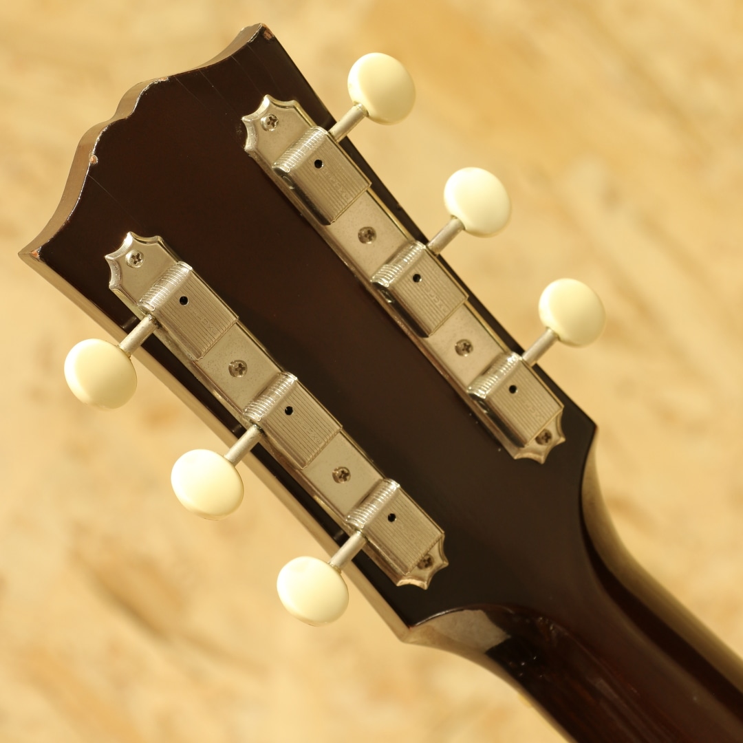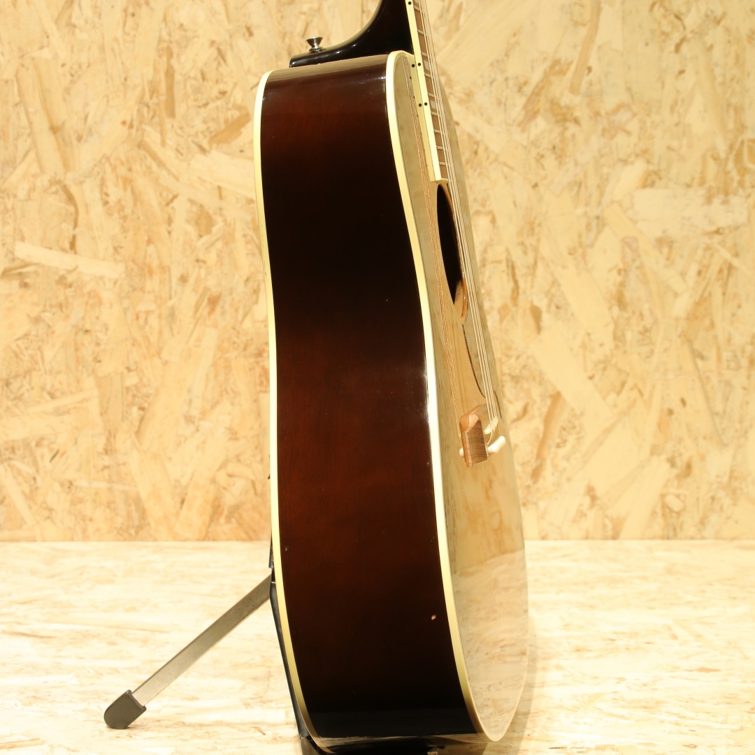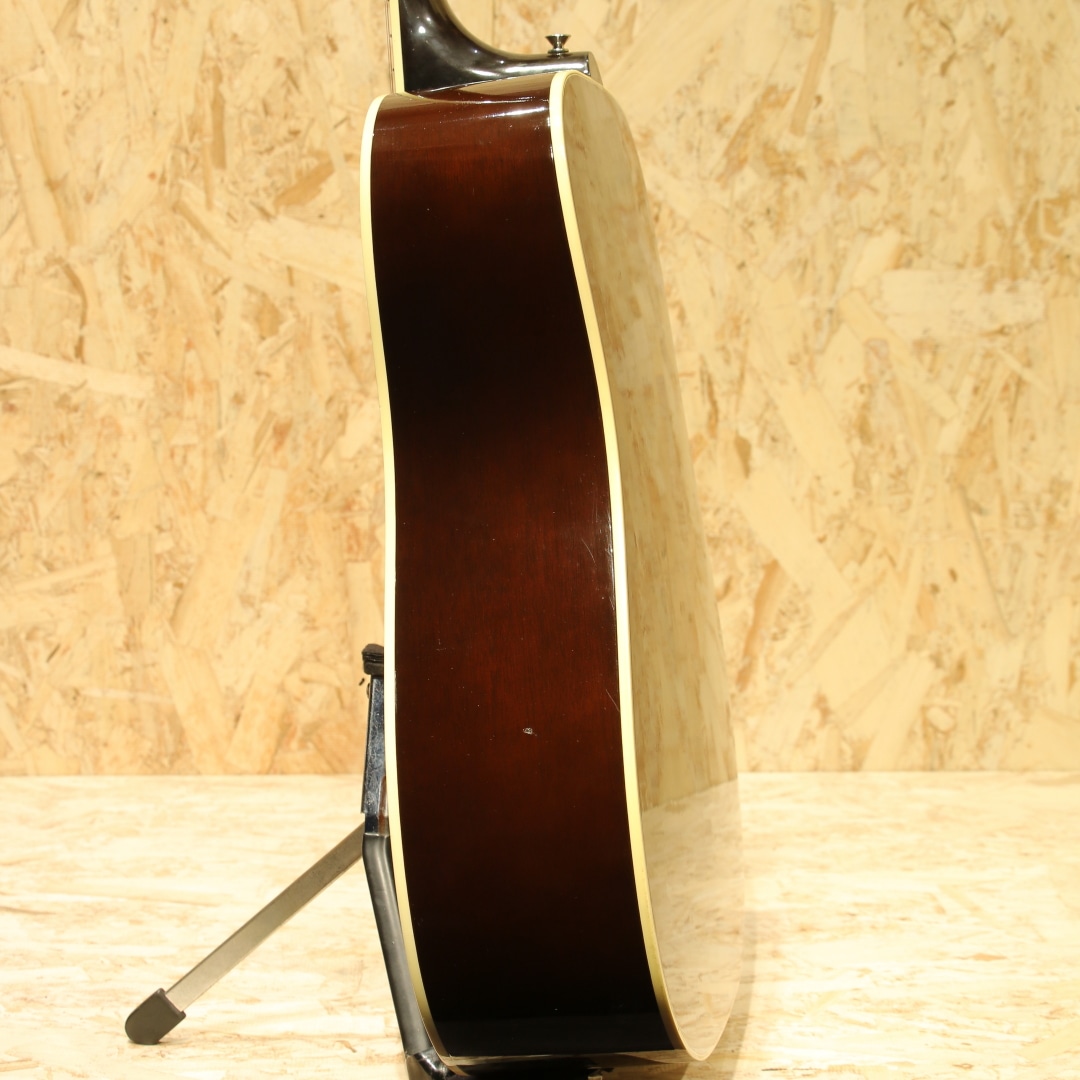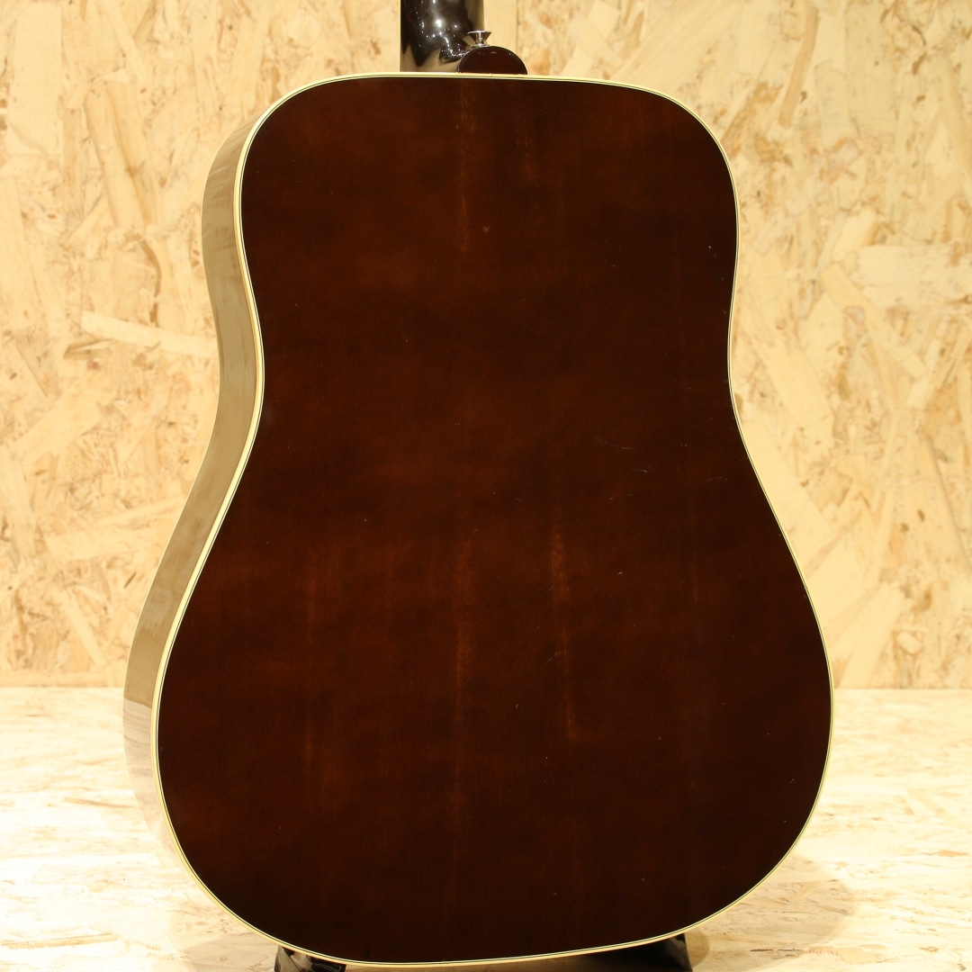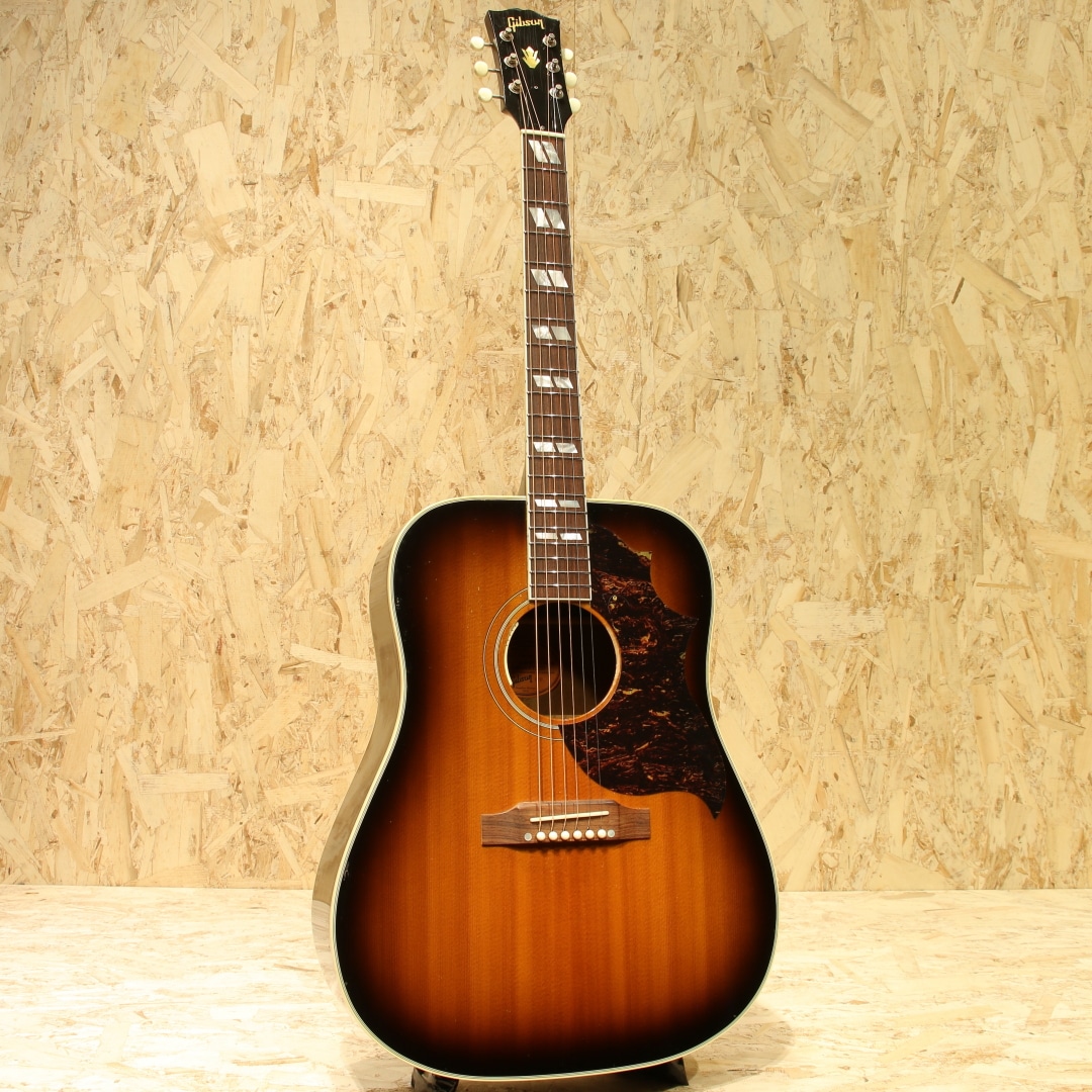 1960年の発売以来、ギブソンスクエアショルダーボディの定番モデルとして人気を博しているハミングバード。ハチドリを象ったピックガードを始め個性的なルックスを持ったモデルです。本器はショップオーダーにて実現させた三木楽器オリジナルモデルの1つ"Hummingbird M"。スプルーストップ、マホガニーサイド&バックと王道スペックにクルーソン白ボタン3連ペグ、カスタムピックガード、ヴィンテージサンバーストカラーを採用した珍しい仕様です。そのピックガードにはハミングバードの存在は無く、べっ甲柄にゴールドのギブソンロゴが入ったシンプルかつ個性的なデザインが採用されております。あいにく20年以上の経年使用によりロゴがほとんど消えかかっておりますが、うっすらとその存在は確認できます。ピックでかき鳴らし続けたくなる歯切れ良くひろがるふくよかなサウンド。ダイナミックなストロークからかすかに甘く哀愁のあるフィンガープレイまで幅広く対応、どんなスタイルにも表情を合わす無二の個性を発揮します。L.R Baggs Anthemピックアップシステムが搭載。クッキリとした音像を拾えるピエゾ、そこにボディの空気感を拾えるマイクを足して出力できるシステムです。任意でマイクのミックス具合を調整でき、ソリッドなピエゾサウンドから空気感のある自然なサウンドまでその場に応じて可変出来る優秀なシステムです。サウンドホール周りにはピッキングウェアによる塗装剥がれが確認できます。その他、20年強を経た打痕や擦り傷、へこみや塗装欠け等、数多のステージをかいくぐってきた貫禄のある個体。ネックコンディションは良好、演奏性は整えられておりすぐにでもステージの相棒として活躍します。弊店でも久しぶりの入荷です。当時お買い逃がしされた方、新たに知っていただいた方、是非お試しください。オリジナルハードケースが付属します。
